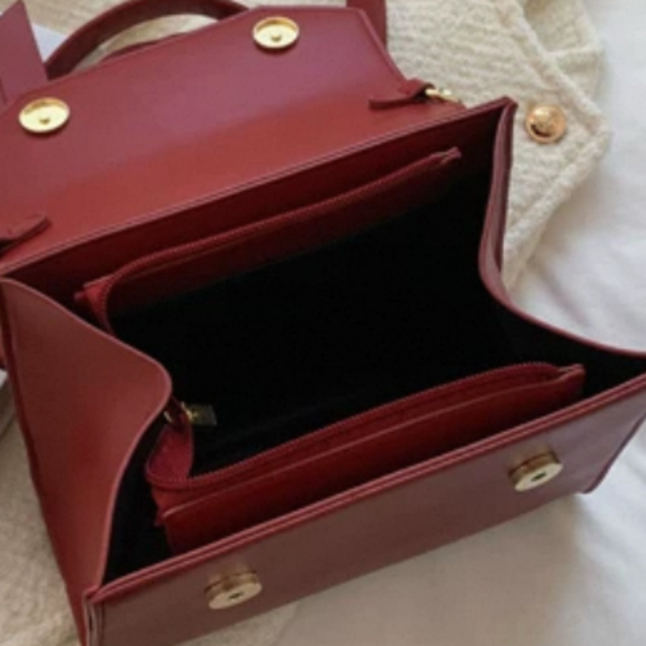こっくりとしたボルドーカラーのショルダーバッグです
