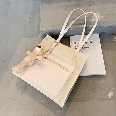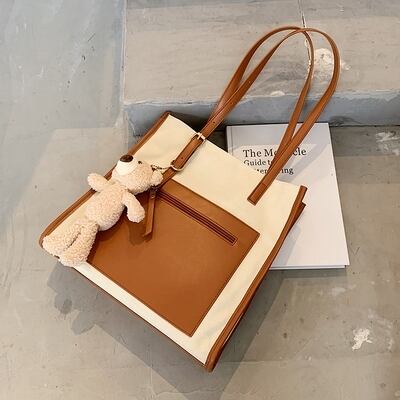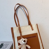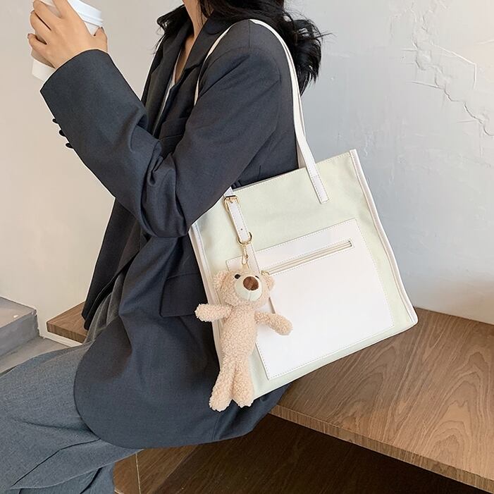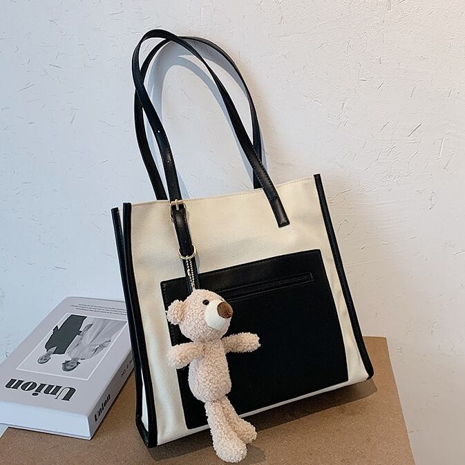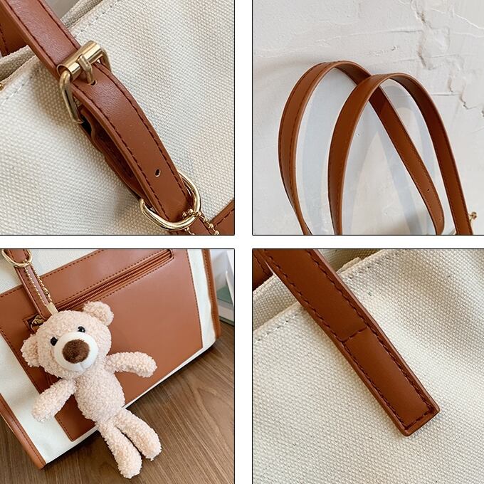 【送料無料】 トートバッグ バイカラー ストラップ アニマル クマ 大容量 通勤 通学 休日 お出かけ カジュアル フェミニン かわいい おしゃれ