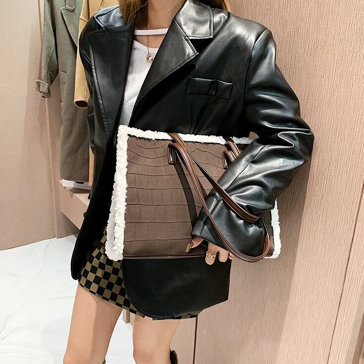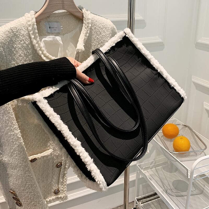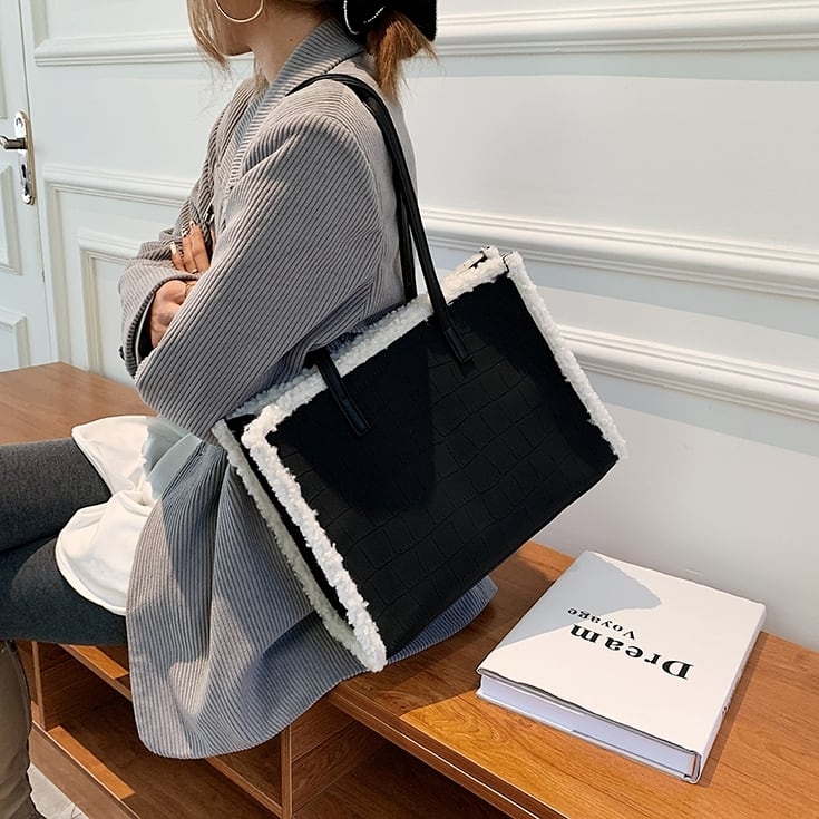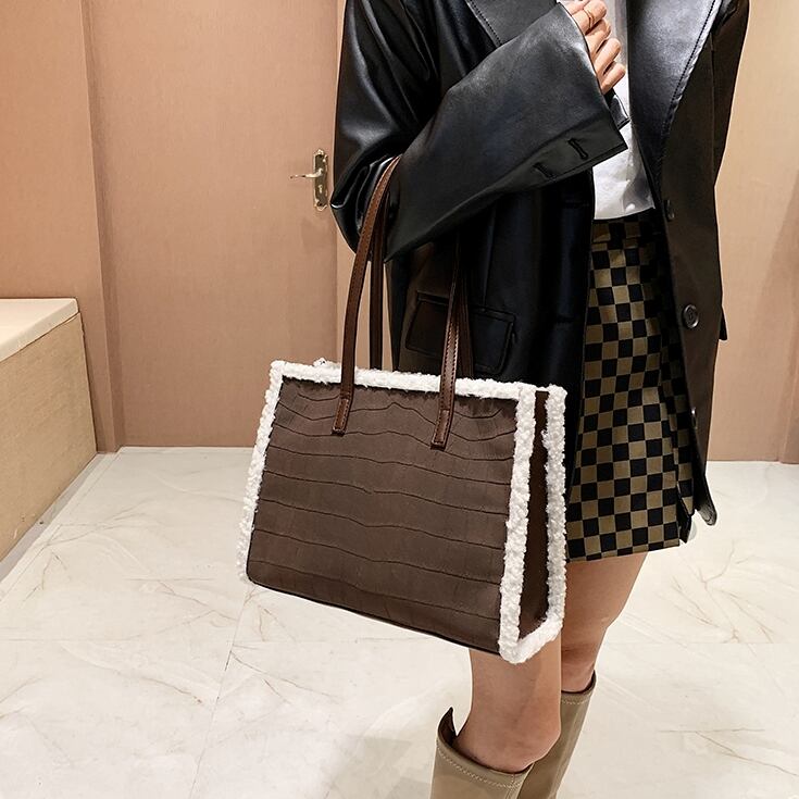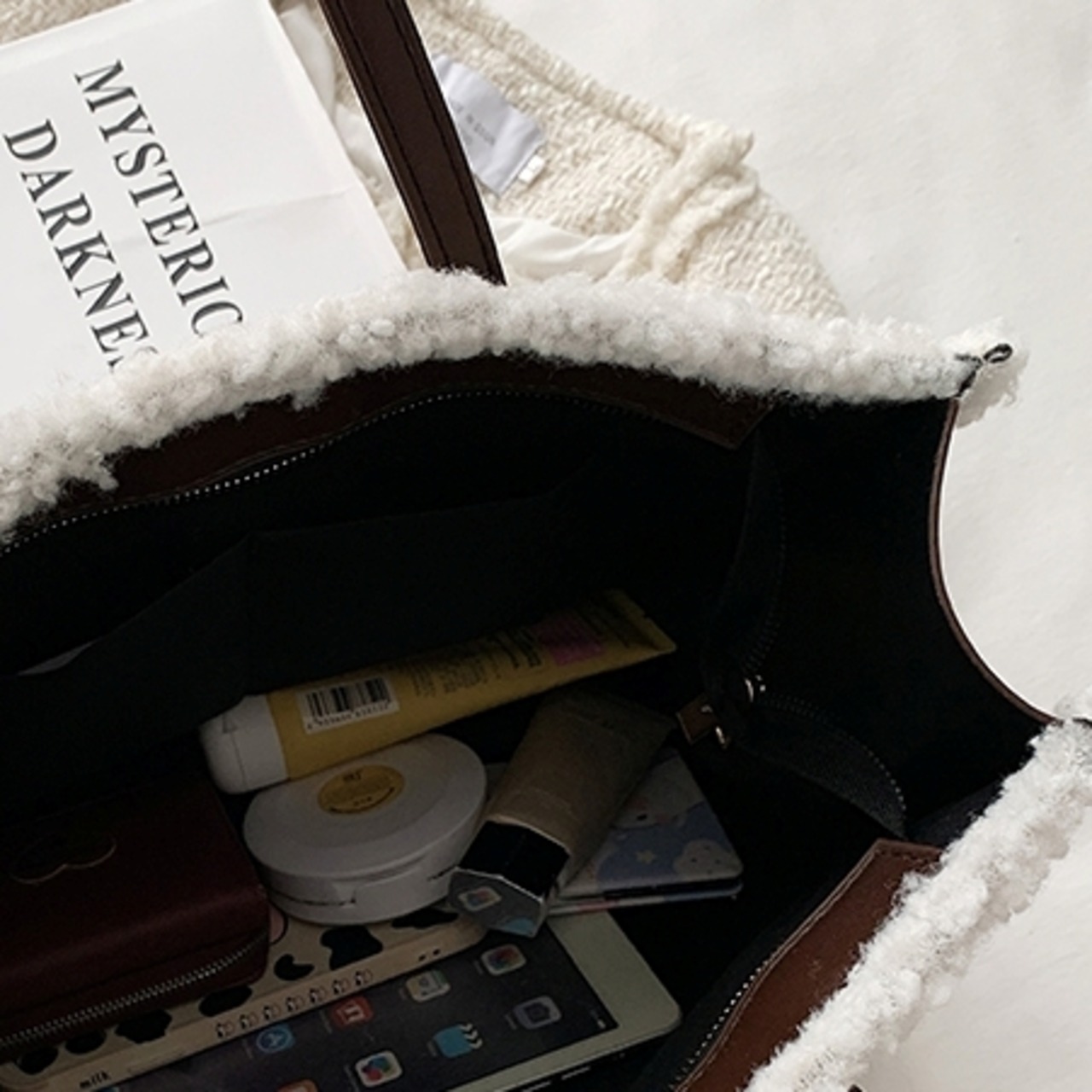 【送料無料】 トートバッグ ボア バイカラー スクエア 通勤 通学 休日 学生 お出かけ デート 女子会 フェミニン シンプル きれいめ かわいい ガーリー おしゃれ 秋冬