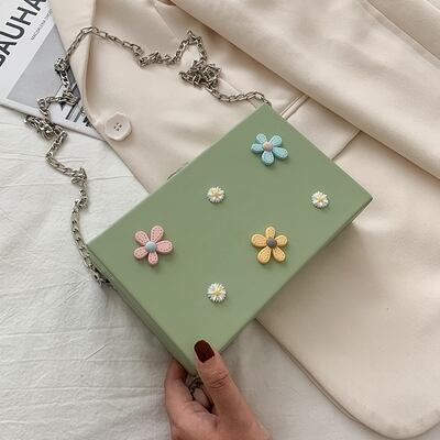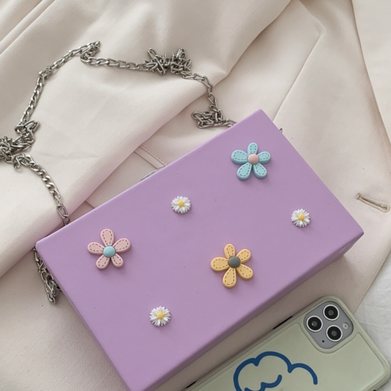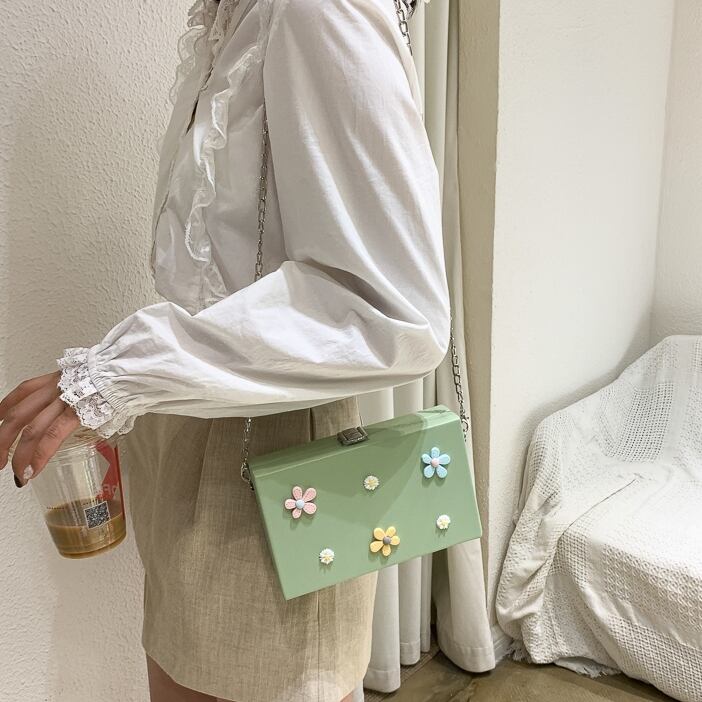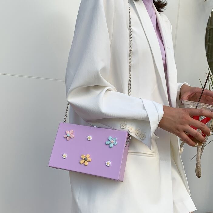 【送料無料】 ショルダーバッグ ポシェット レディース 休日 デート フェミニン ガーリー カジュアル 春 夏 秋 冬 10代 20代 ホワイト ブラック ピンク パープル ブルー グリーン 白 黒 紫 青 緑 バック かばん 鞄 おしゃれ 可愛い 斜め掛け 肩がけ 立体 フラワー 花