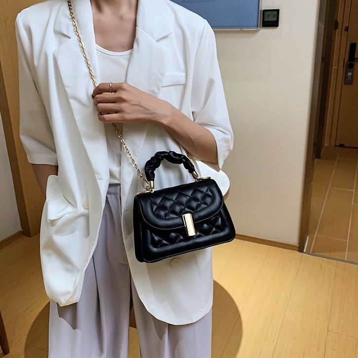 上品なキルティングが女性らしいハンドバッグ。