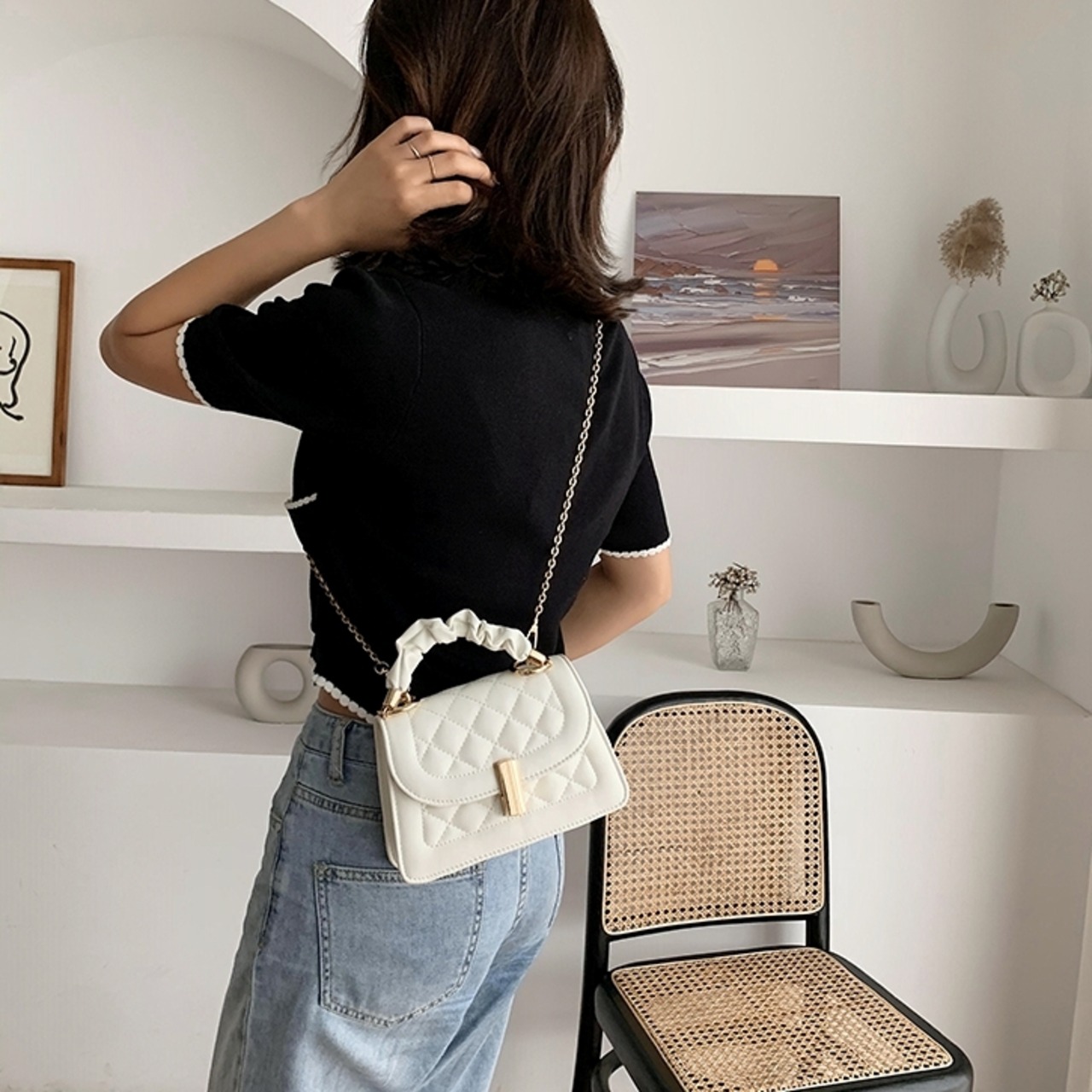 【送料無料】 ハンドバッグ ショルダーバッグ レディース 2wayコンパクト 休日 フェミニン シンプル 春 夏 秋 冬 20代 30代 40代 カーキ オフホワイト ブラック 白 黒 きれいめ 上品 バック ミニ キルティング チェーン かばん 鞄 おしゃれ 斜め掛け 肩がけ 手提げ