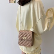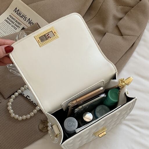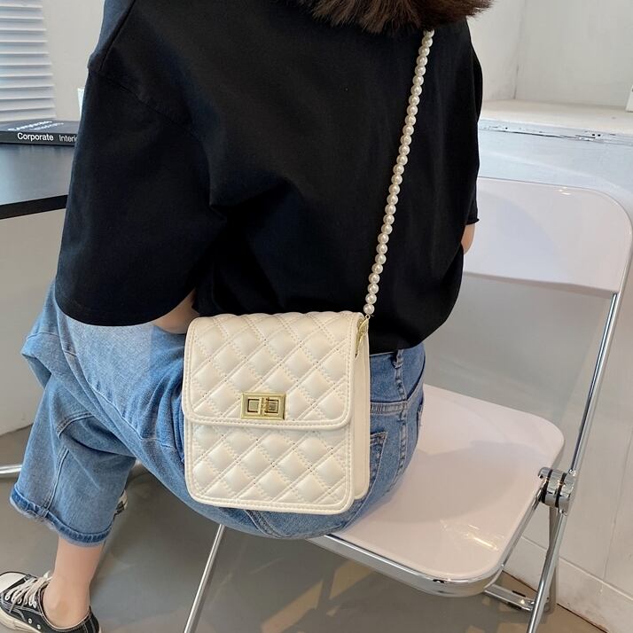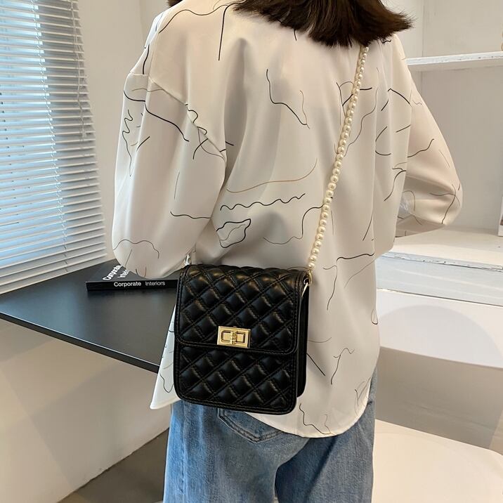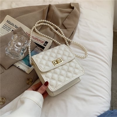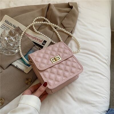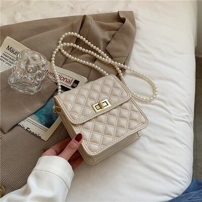 【送料無料】 ショルダーバッグ レディース コンパクト スクエア 休日 フェミニン ガーリー 春 夏 秋 冬 10代 20代 30代 ブルー ピンク カーキ ブラック ベージュ ホワイト 青 黒 白 きれいめ 上品 バック ミニ キルティング フェイクパール かばん 鞄 おしゃれ 斜め掛け 肩がけ