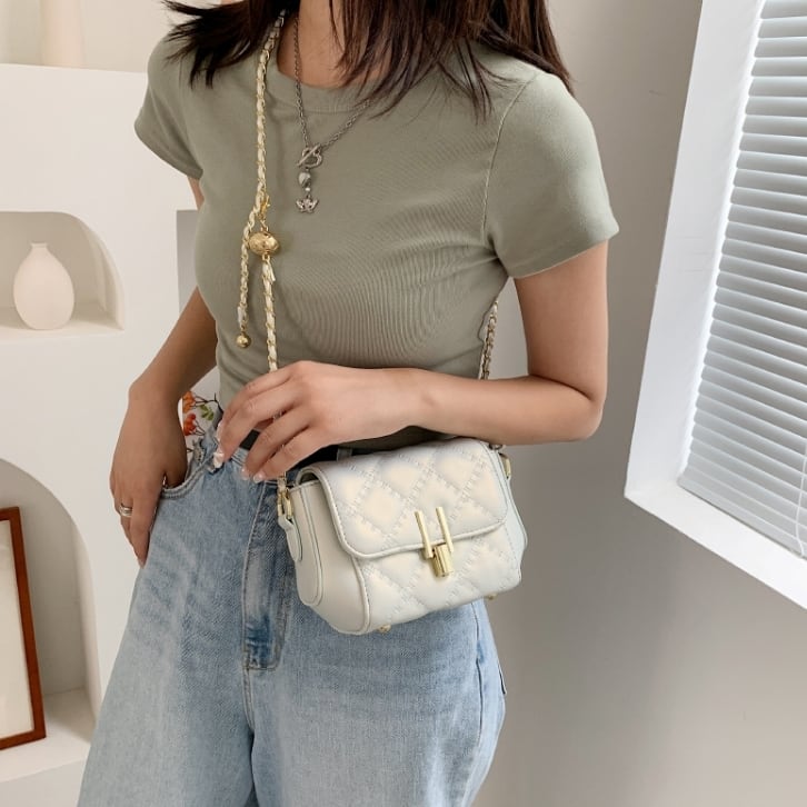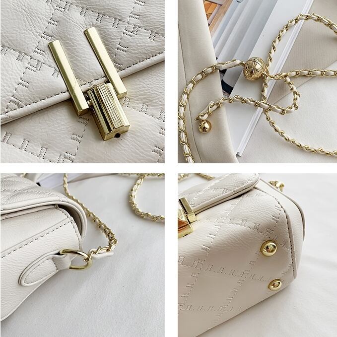 【送料無料】 ショルダーバッグ ポシェット レディース コンパクト 休日 お出かけ デート フェミニン ガーリー きれいめ 大人かわいい 春 秋 冬 20代 30代 40代 ホワイト ブラック 白 黒 チェーン バック ミニ ゴールド 軽量 かばん 鞄 おしゃれ 斜め掛け 肩がけ