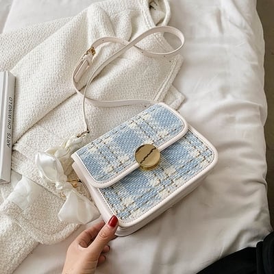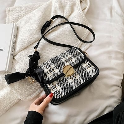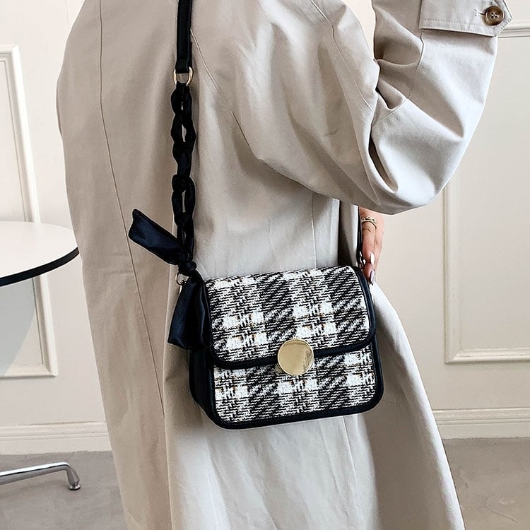 チェック柄が女性らしいバッグ。