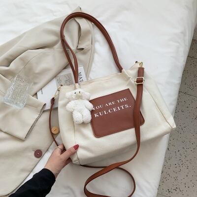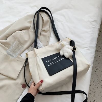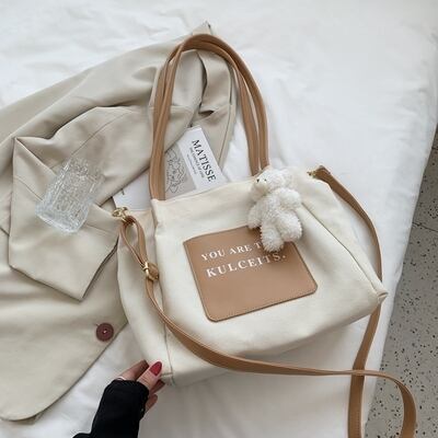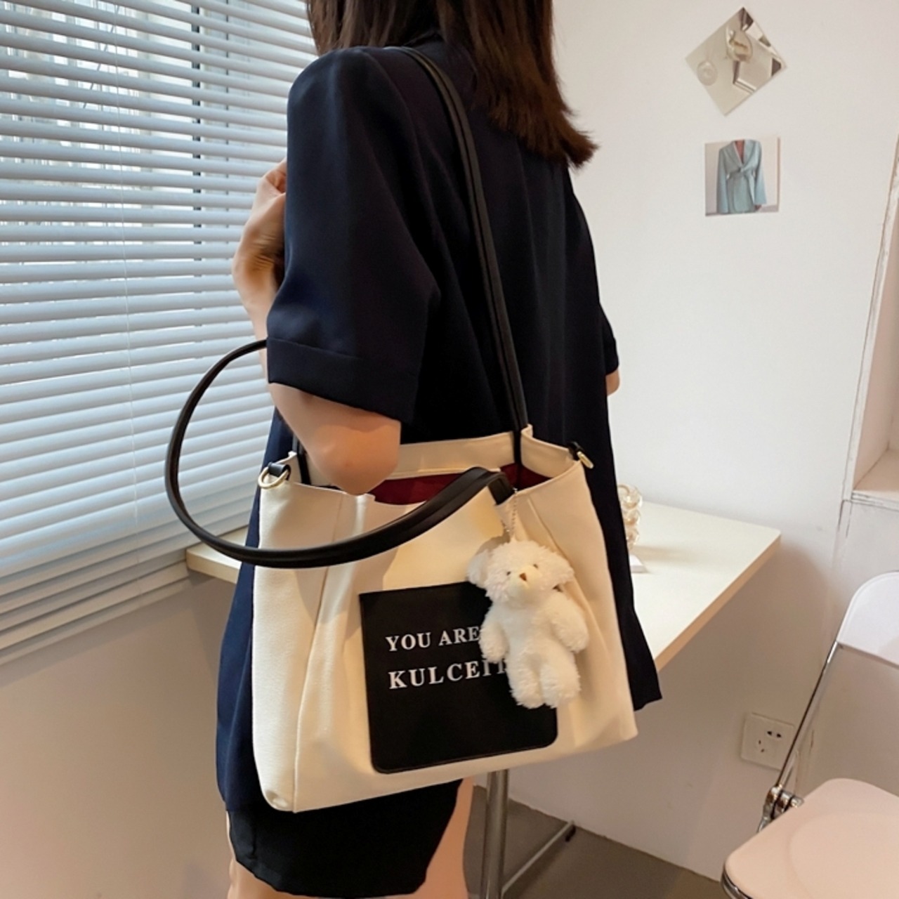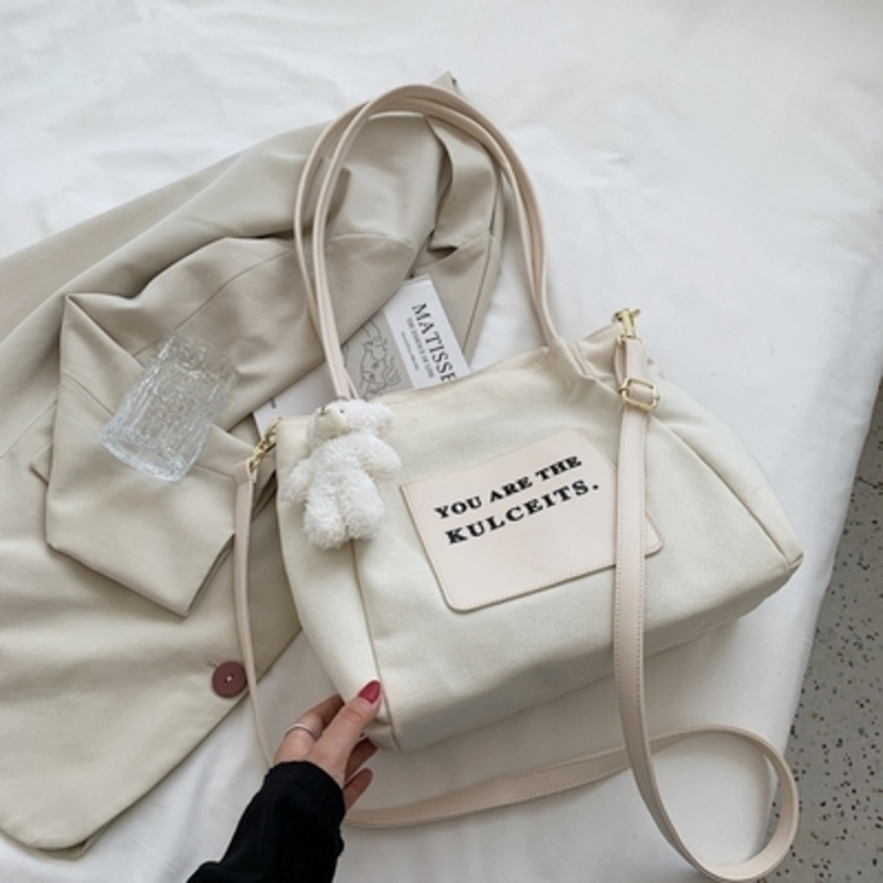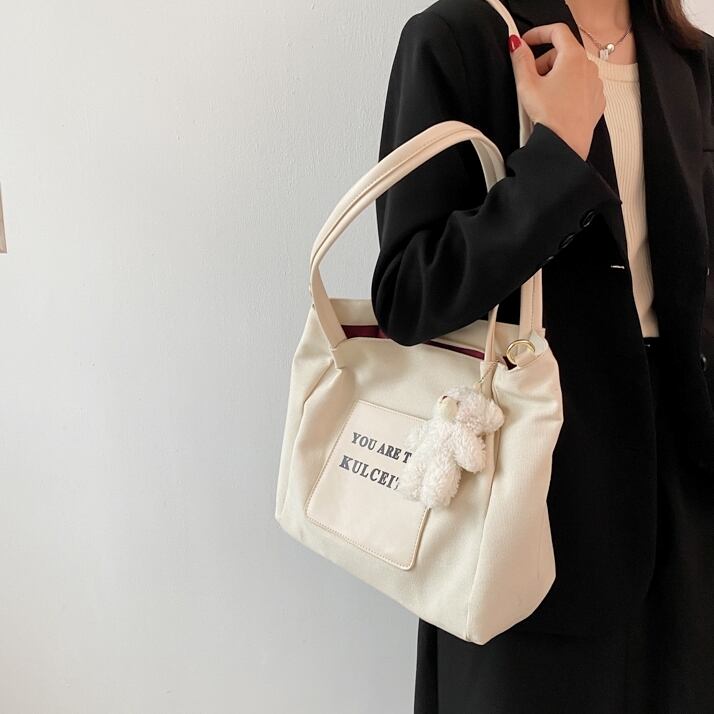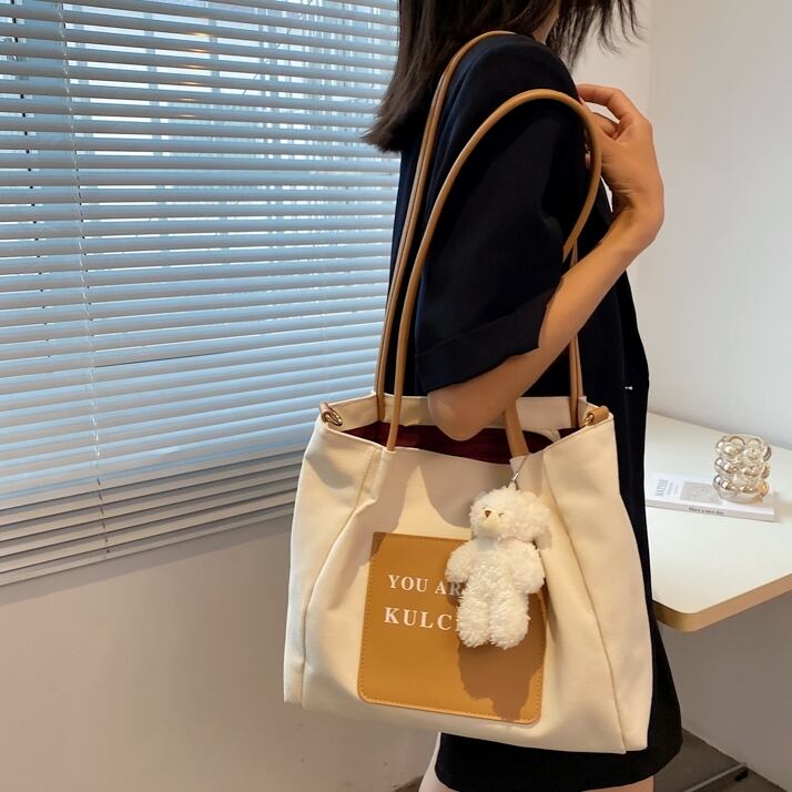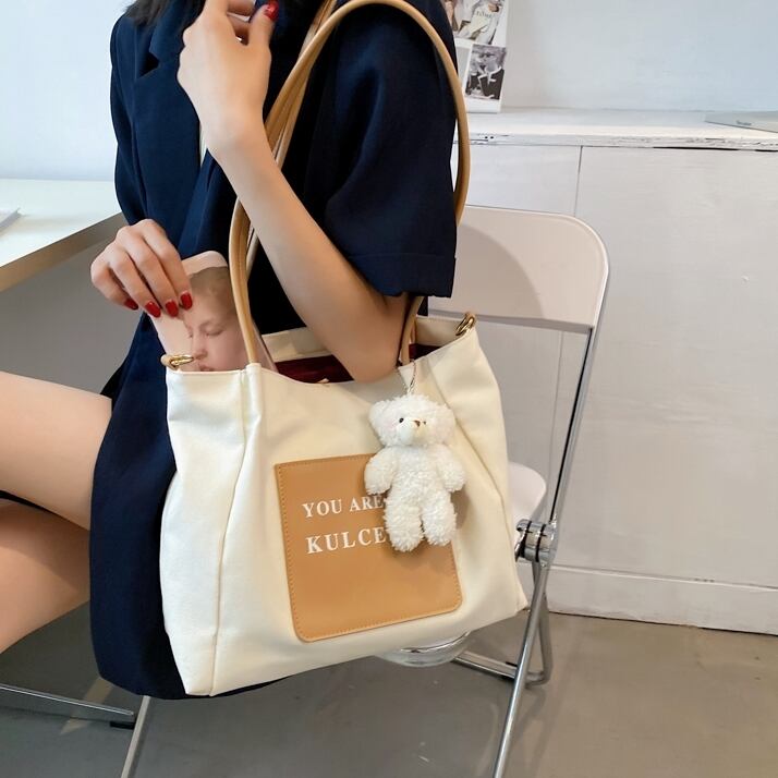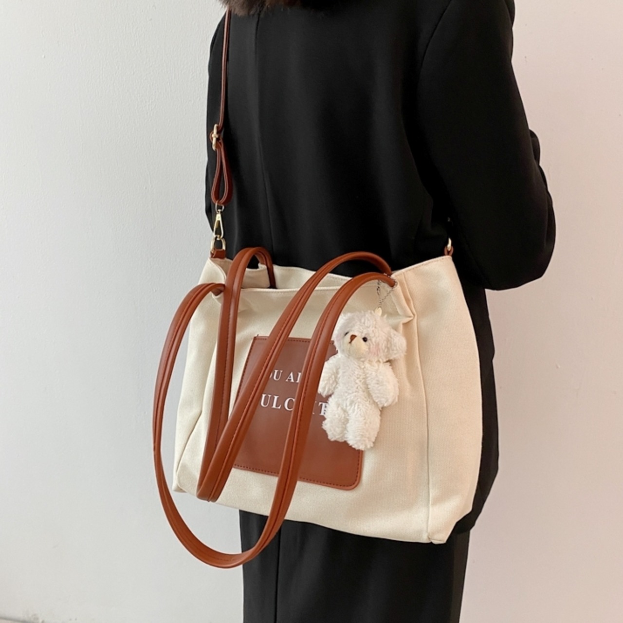 【送料無料】 トートバッグ ショルダーバッグ 2way 大容量 レディース 通勤 通学 休日 お出かけ シンプル フェミニン カジュアル 春 夏 秋 冬 10代 20代 ブラック カーキ ブラウン ベージュ 黒 茶 バック ビッグサイズ かばん 鞄 おしゃれ 斜め掛け 肩がけ 手提げ マスコット くま