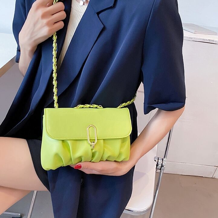 【送料無料】 ショルダーバッグ ハンドバッグ レディース 休日 お出かけ デート シンプル フェミニン ガーリー 春 夏 秋 冬 10代 20代 30代 ブラック ホワイト グリーン イエロー 黒 白 緑 黄 ミニ バック かばん 鞄 おしゃれ 斜め掛け 肩がけ 手提げ PU チェーンおしゃれ かわいい
