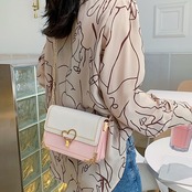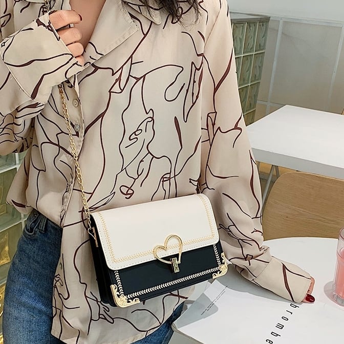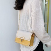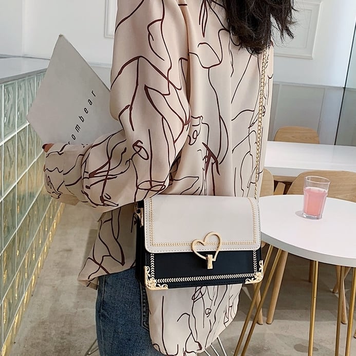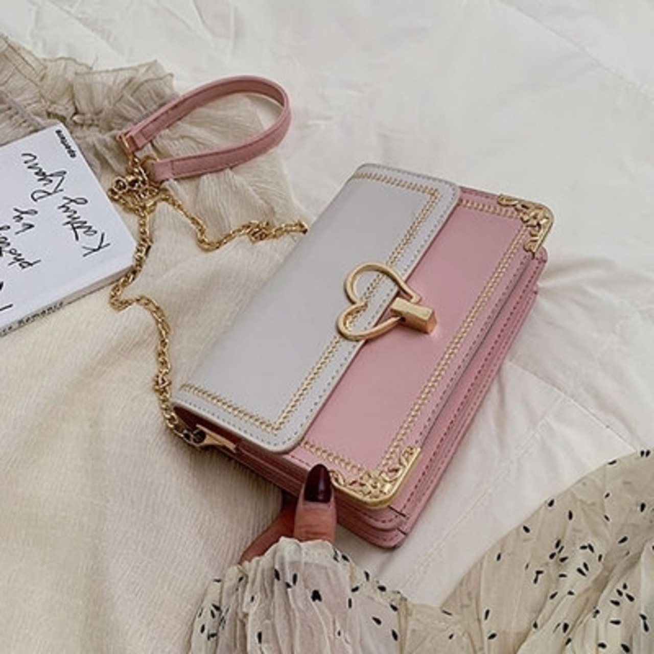 【送料無料】 ショルダーバッグ レディース スクエア 休日 お出かけ デート フェミニン シック ガーリー 春 夏 秋 冬 10代 20代 ピンク ブラック イエロー グリーン 黒 黄 緑 ミニ バック かばん 鞄 おしゃれ 斜め掛け 肩がけ ワンショルダー PU おしゃれ 大人かわいい バイカラー ゴールド ハート