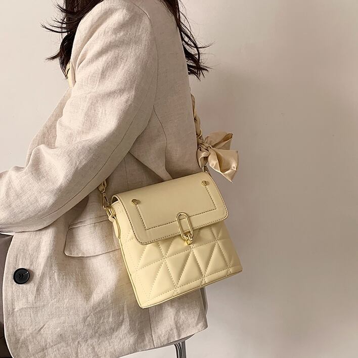 【送料無料】 ショルダーバッグ バケットバッグ レディース コンパクト 休日 お出かけ ワンマイル フェミニン ガーリー 旅行 大人 きれいめ キルティング リボン 春 夏 秋 冬 10代 20代 30代 ホワイト ブラック イエロー 白 黒 黄 バック ミニ PU ワンショルダー かばん 鞄 おしゃれ 斜め掛け 肩がけ