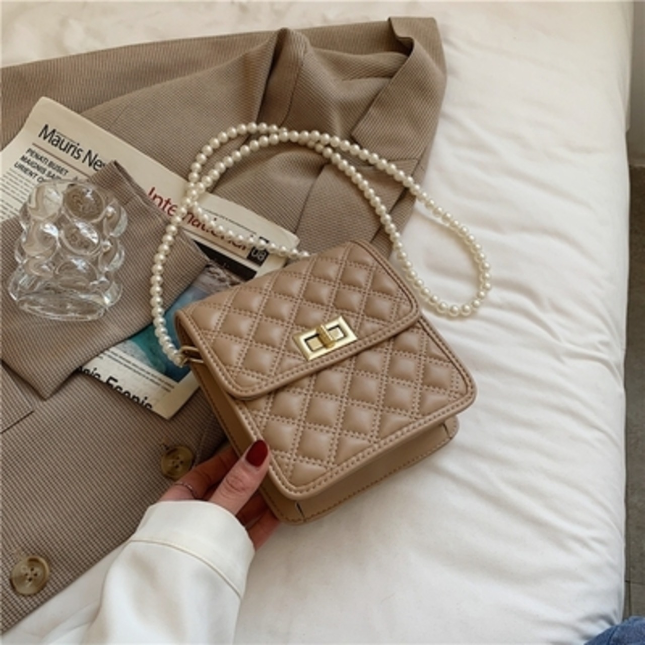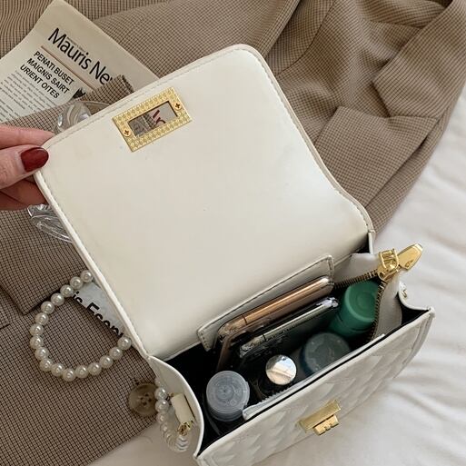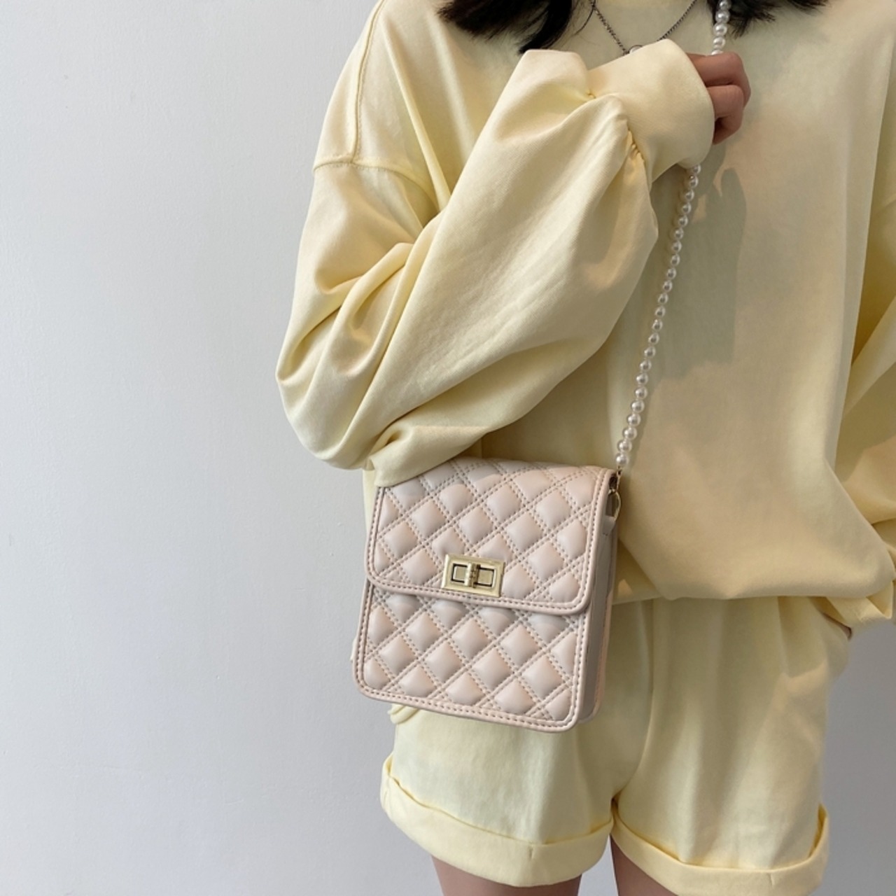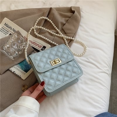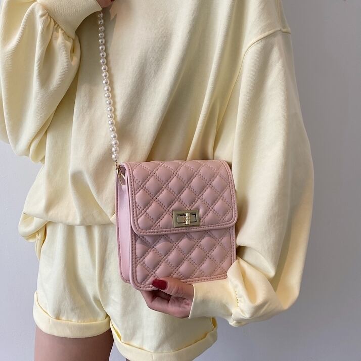 【送料無料】 ショルダーバッグ スクエア キルティング レディース 休日 お出かけ デート フェミニン ガーリー きれいめ 大人 かわいい 上品 春 秋 冬 10代 20代 ブルー ピンク カーキ ブラック ベージュ ホワイト 青 黒 白 バック PU ワンショルダー かばん 鞄 おしゃれ 斜め掛け 肩がけ ミニ フェイクパール