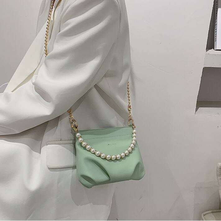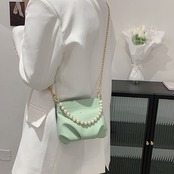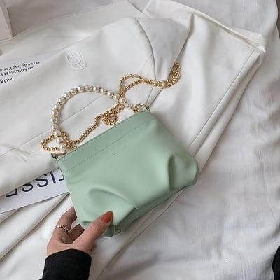 【送料無料】 ショルダーバッグ ハンドバッグ ポーチ レディース コンパクト 休日 お出かけ デート フェミニン きれいめ ガーリー 大人 かわいい 上品 春 夏 秋 冬 10代 20代 30代 ブラック ホワイト ピンク グリーン 黒 白 緑 バック PU ワンショルダー かばん 鞄 おしゃれ 斜め掛け 肩がけ 手提げ チェーン フェイクパール