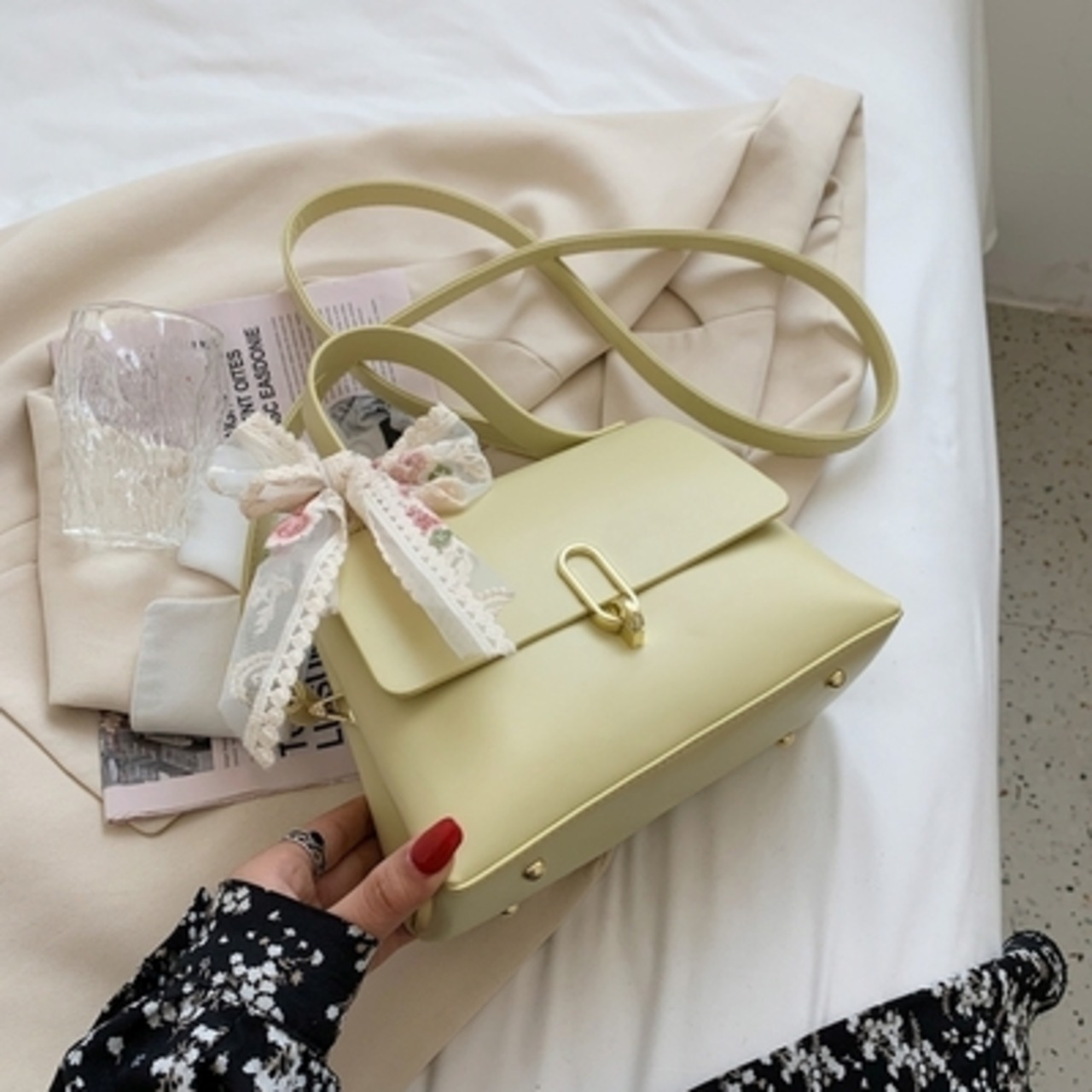 【送料無料】 ショルダーバッグ ハンドバッグ 2way レディース 休日 お出かけ デート 女子会 きれいめ フェミニン かわいい 大人 ガーリー 春 夏 秋 冬 10代 20代 イエロー ブラック グリーン ホワイト 黄 黒 緑 白 バック シンプル ワンショルダー かばん 鞄 おしゃれ 肩がけ 手提げ リボン