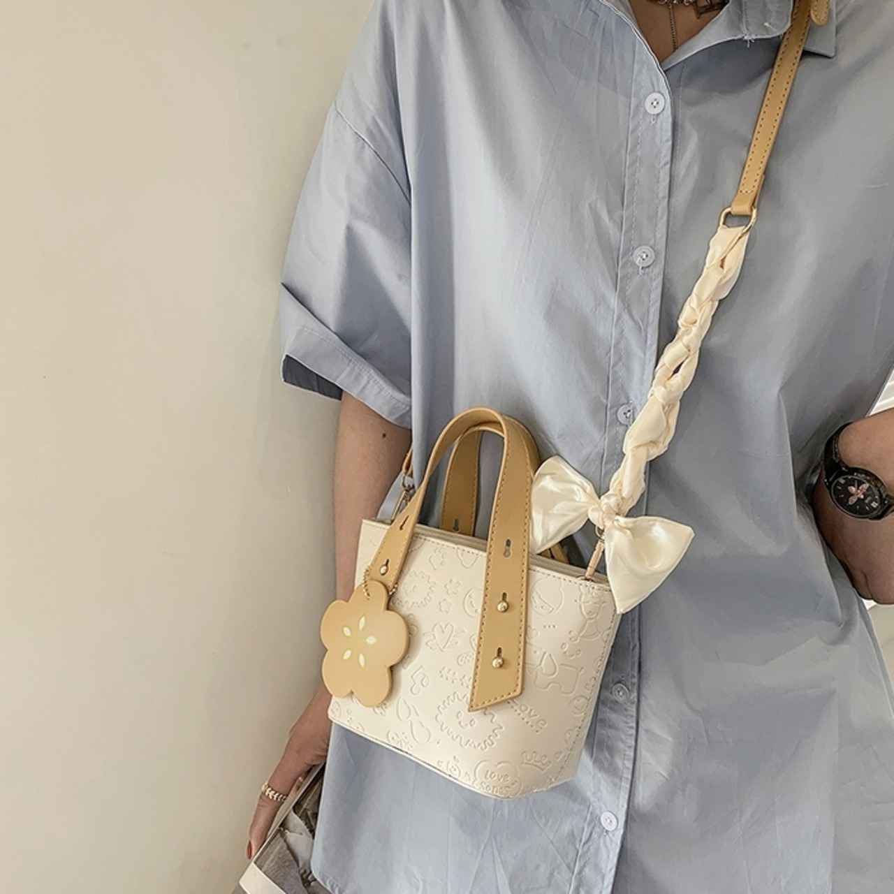 【送料無料】 ショルダーバッグ ハンドバッグ 2way レディース 休日 お出かけ デート 女子会 きれいめ フェミニン かわいい 大人 ガーリー カジュアル 春 夏 秋 冬 10代 20代 ホワイト ブラック イエロー グリーン 白 黒 黄 緑 バック シンプル ワンショルダー かばん 鞄 おしゃれ 斜めかけ 肩がけ 手提げ リボン 花