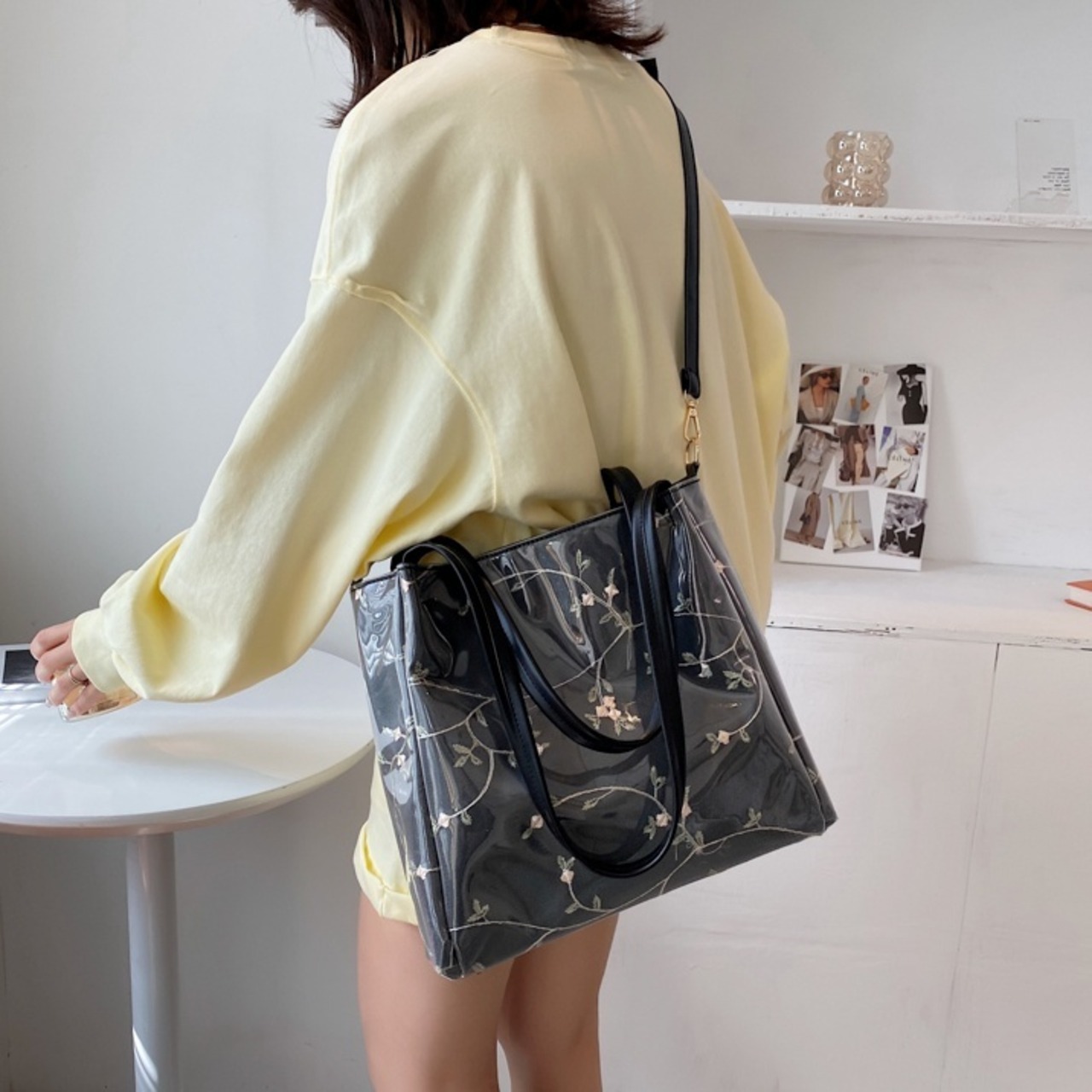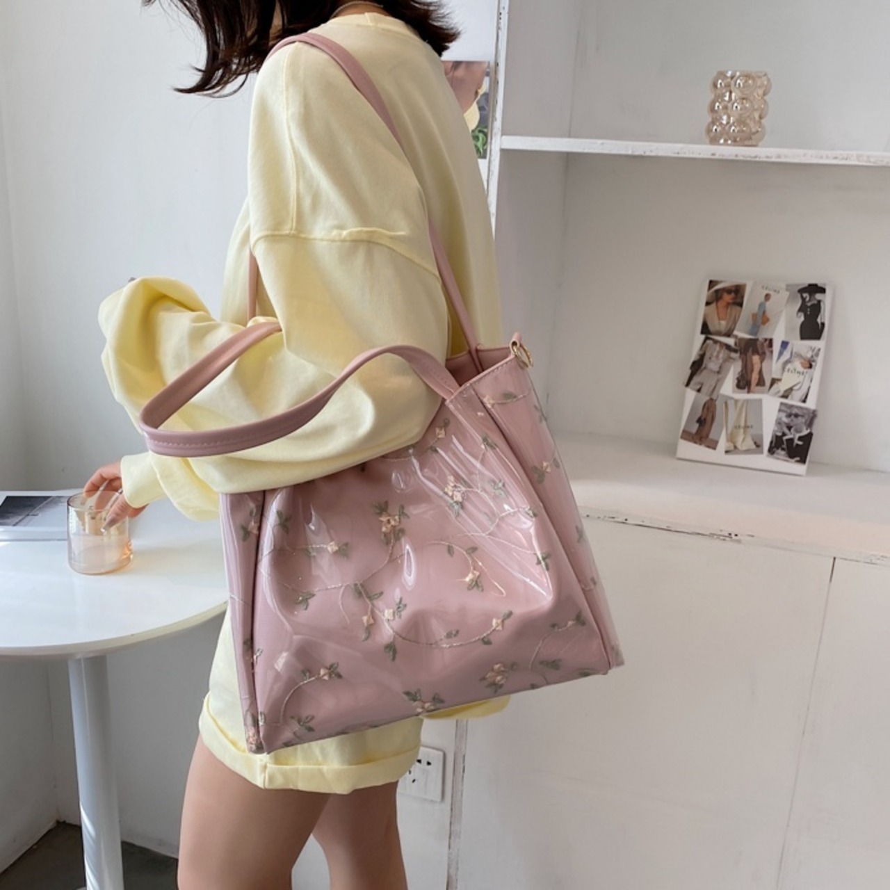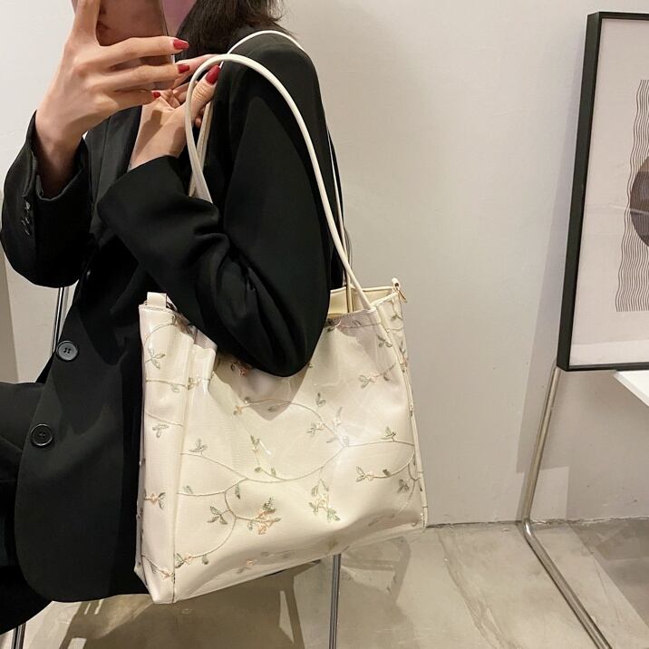 【送料無料】 トートバッグ ショルダーバッグ レディース 2way PVC ビッグサイズ 通勤 通学 春 夏 秋 冬 10代 20代 30代 ブラック グリーン ピンク ベージュ 黒 大容量 バック スクエア 大人 かわいい フェミニン ガーリー かばん 鞄 おしゃれ 斜め掛け 肩がけ 手提げ 花柄 フラワー
