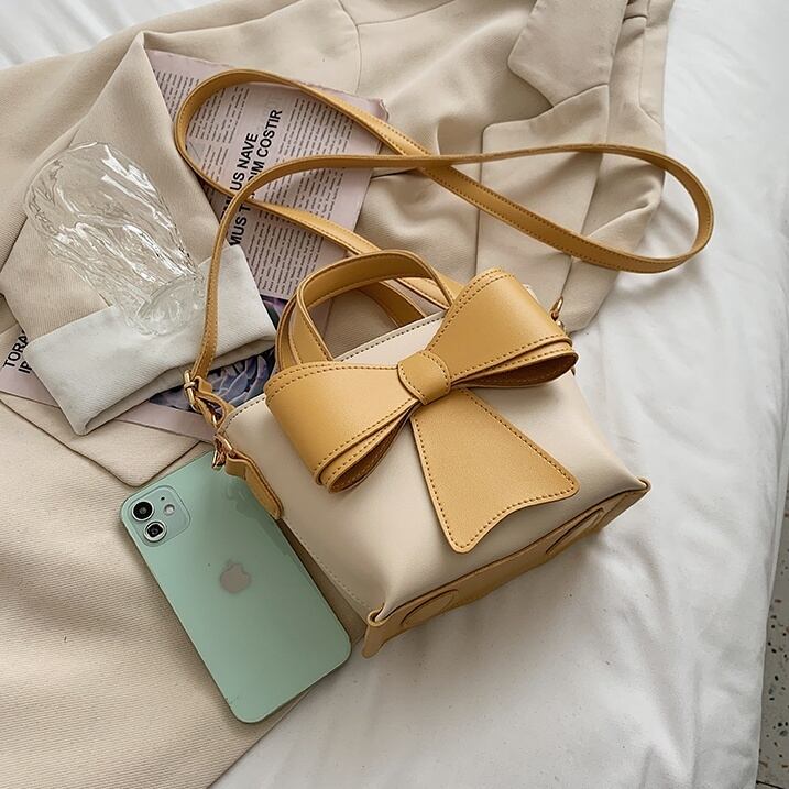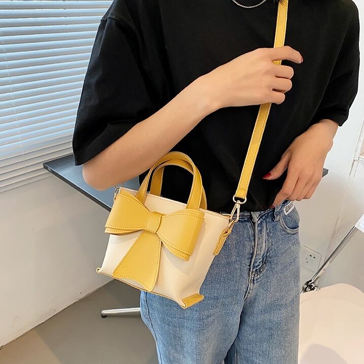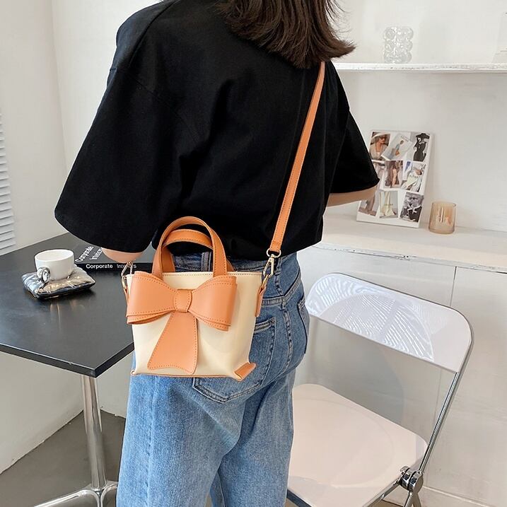 【送料無料】 ハンドバッグ ショルダーバッグ レディース 2way PU コンパクト 休日 お出かけ デート 春 夏 秋 冬 10代 20代 30代 オレンジ ブラック イエロー ベージュ グリーン 黒 黄 緑 ミニ バック 大人 かわいい フェミニン ガーリー かばん 鞄 おしゃれ 斜め掛け 肩がけ 手提げ リボン