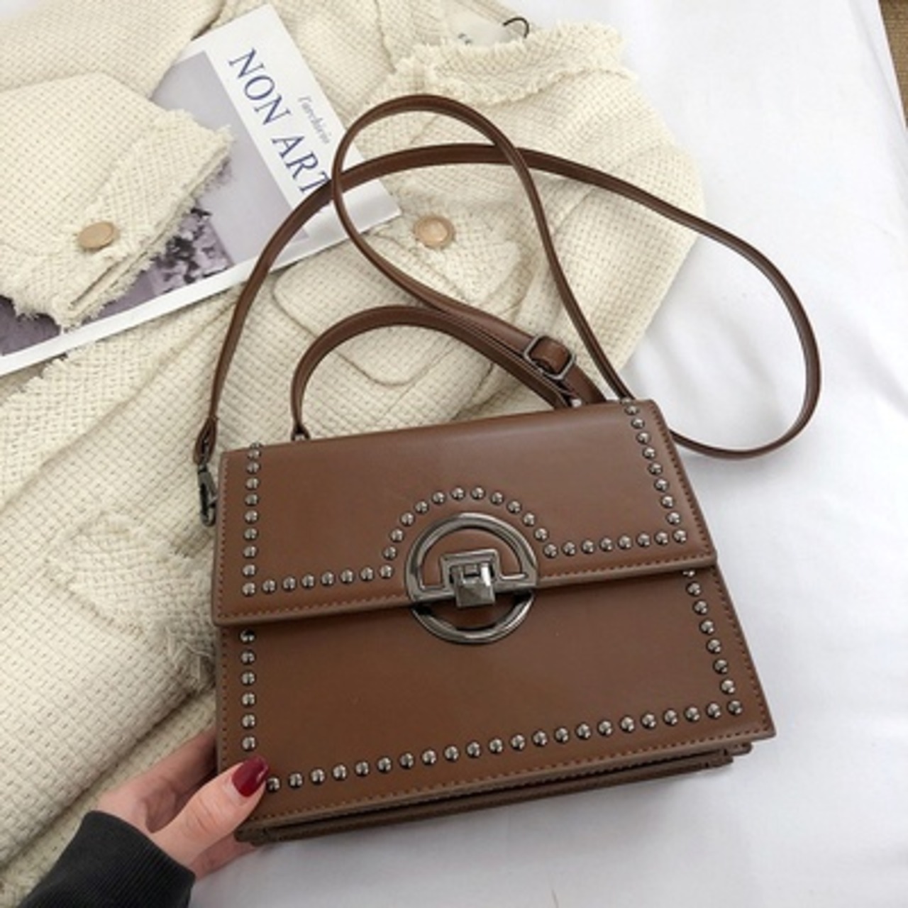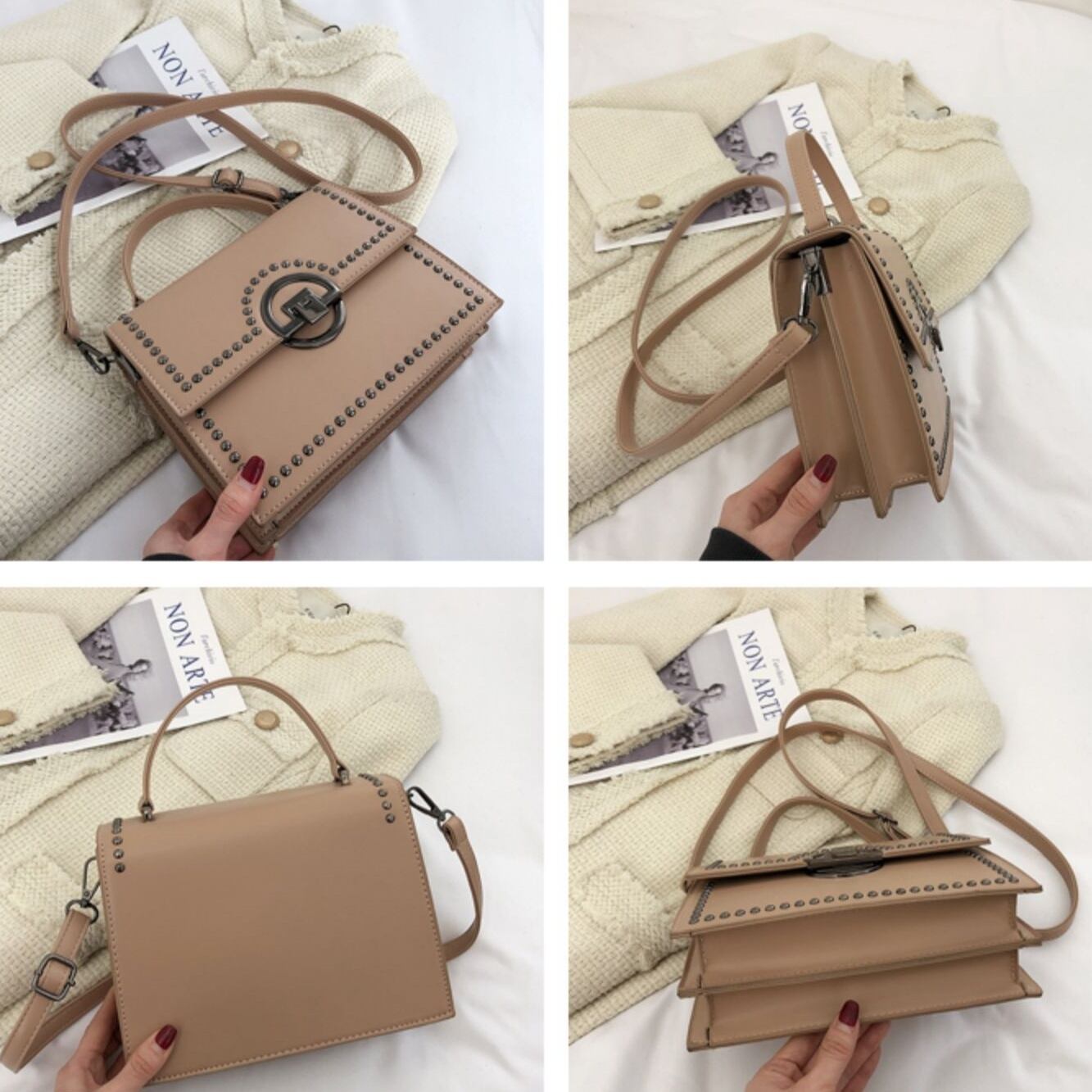 【送料無料】 ハンドバッグ ショルダーバッグ 2way レディース スクエア 休日 お出かけ デート 春 秋 冬 20代 30代 カーキ ブルー ブラウン ブラック 青 茶 黒 バック 大人 かわいい フェミニン シンプル レトロ かばん 鞄 おしゃれ 斜め掛け 肩がけ 手提げ