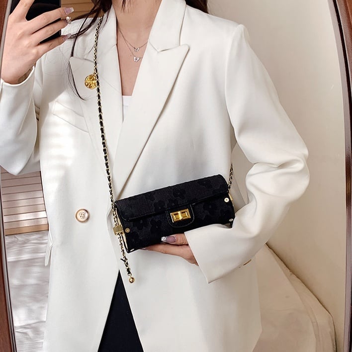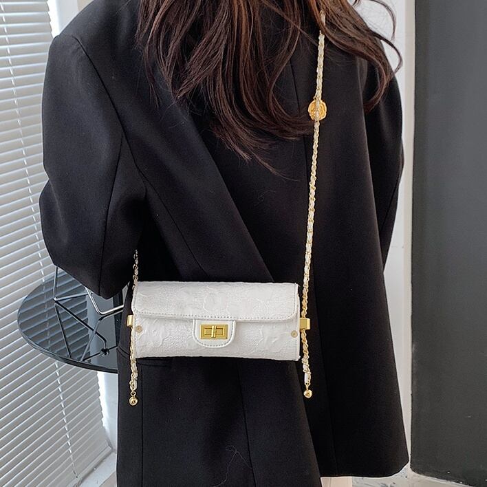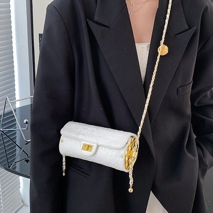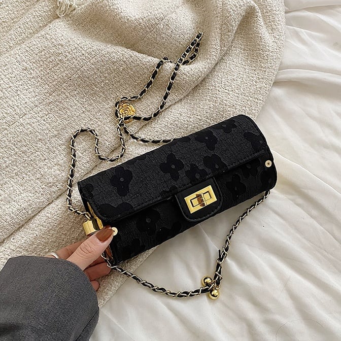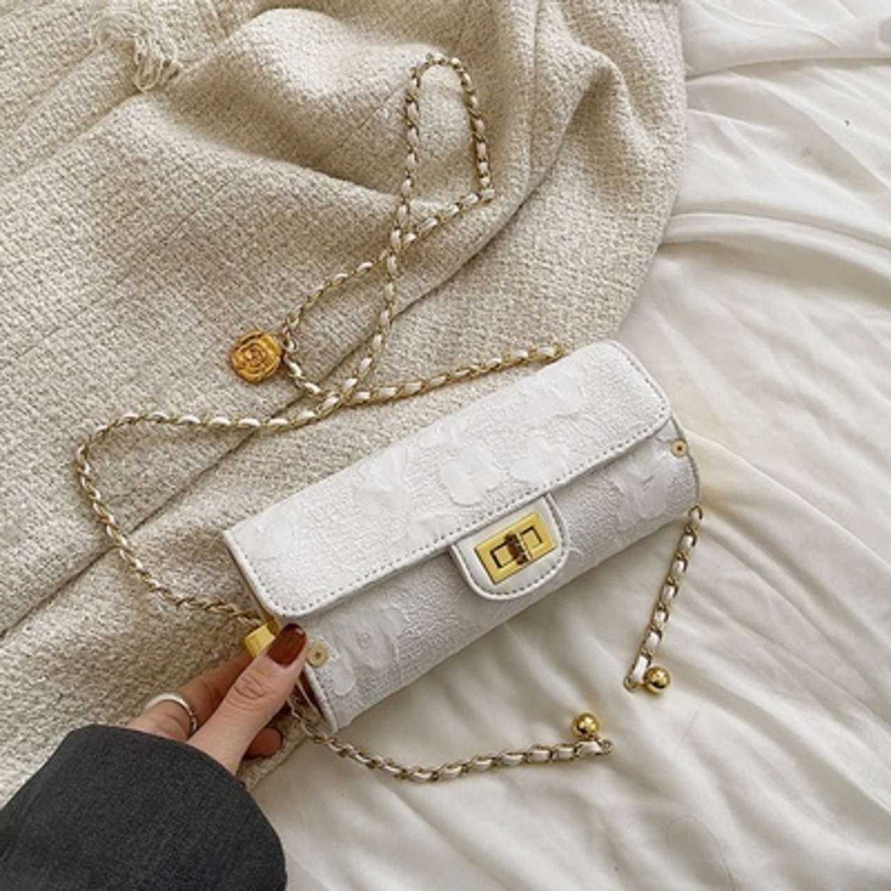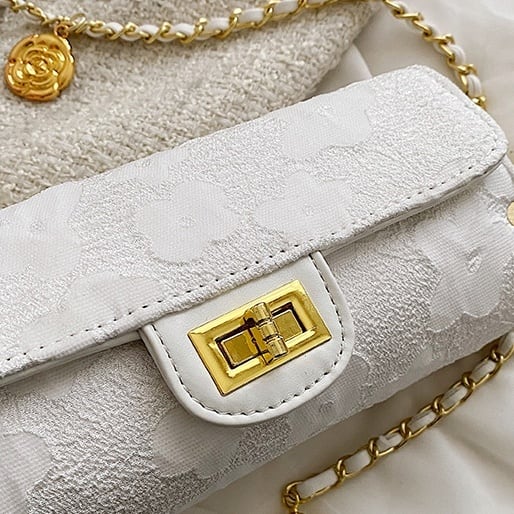 【送料無料】 ショルダーバッグ レディース 花 フラワー キャンバス チェーン 休日 お出かけ デート 女子会 春 秋 冬 20代 30代 40代 ブラック ホワイト 黒 白 コンパクト バック ミニ かばん 鞄 おしゃれ 斜め掛け 肩がけ 大人 かわいい きれいめ おしゃれ フェミニン 柄物 ポシェット