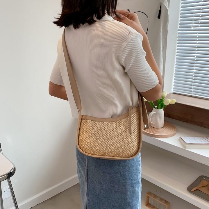【送料無料】 ショルダーバッグ かごバッグ ストローバッグ レディース コンパクト 休日 お出かけ デート 女子会 シンプル 春 夏 10代 20代 30代 40代 ベージュ カーキ 2色 バック ミニ ワンショルダー かばん 鞄 おしゃれ 斜め掛け 肩がけ 手提げ