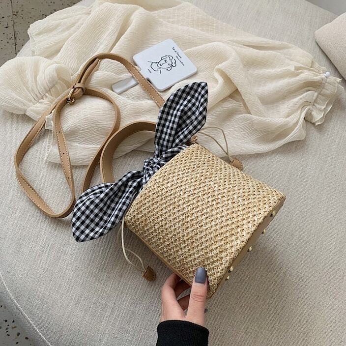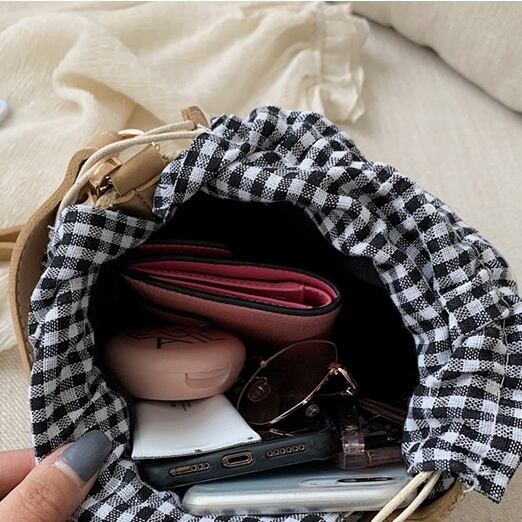 【送料無料】 ハンドバッグ ショルダーバッグ レディース 2way バケット チェック 休日 お出かけ デート 女子会 春 夏 10代 20代 30代 ベージュ ブラウン 茶 バック ミニ かばん 鞄 おしゃれ 斜め掛け 肩がけ 手提げ フェミニン ガーリー かわいい