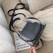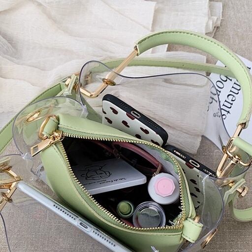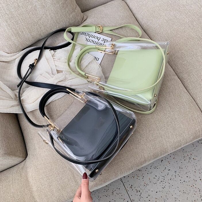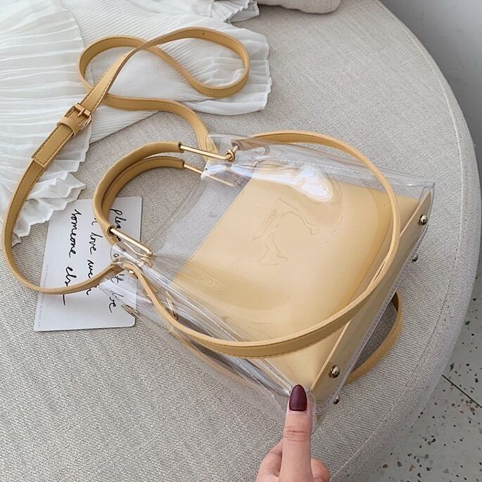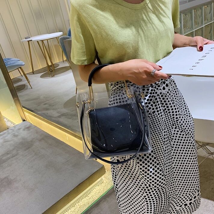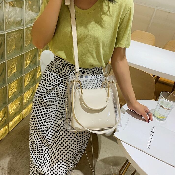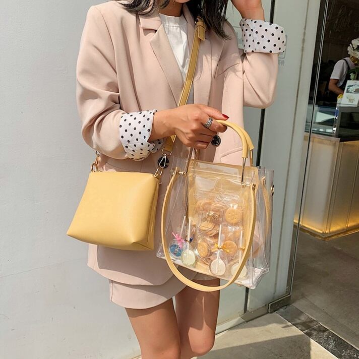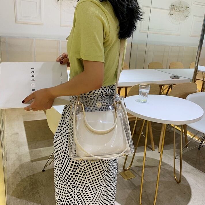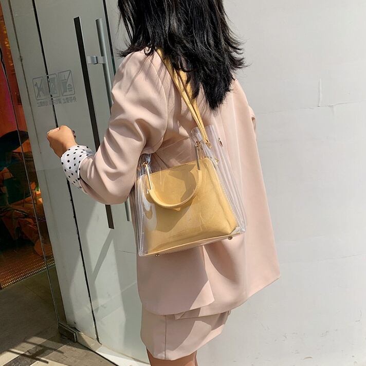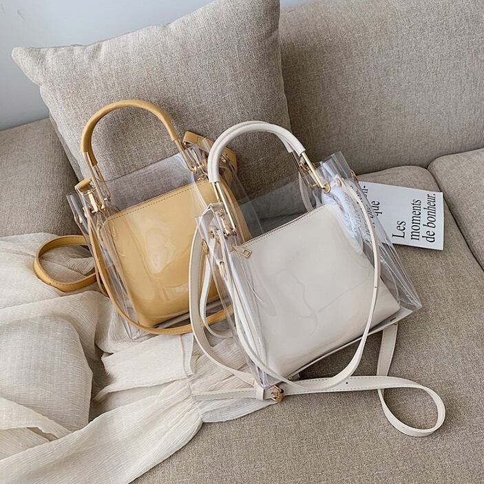 【送料無料】 トートバッグ ショルダーバッグ レディース 台形 こなれ感 コンパクト 休日 お出かけ デート 女子会 カジュアル フェミニン かわいい ガーリー 春 夏 10代 20代 30代 40代 ブラック イエロー ホワイト グリーン 黒 黄 白 緑 バック PVC クリア スケルトン 透明 透け感 かばん インバッグ 鞄 おしゃれ 肩がけ 手提げ