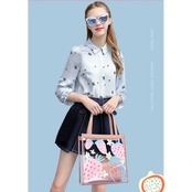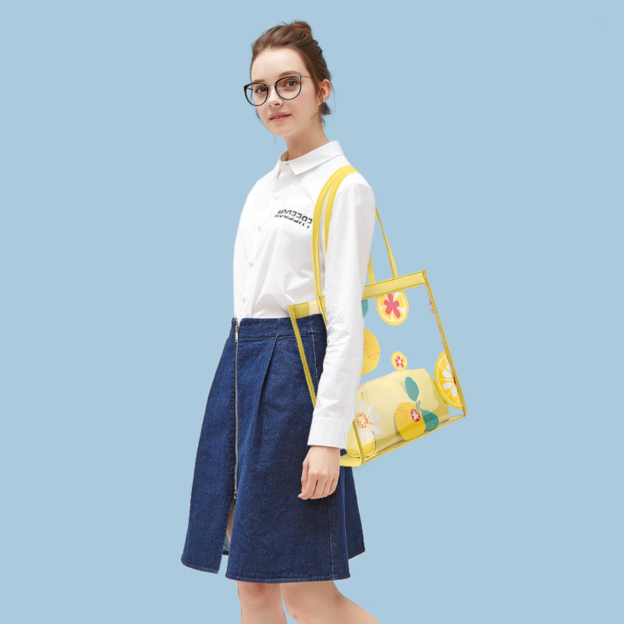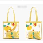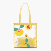 【送料無料】 トートバッグ ホワイト イエロー ブルー ピンク 10代 20代 肩掛け クリアバッグ トレンド フルーツ柄 パステルカラー バイカラー トロピカル オシャレ フェミニン ガーリー お出かけ デート ビーチ 夏