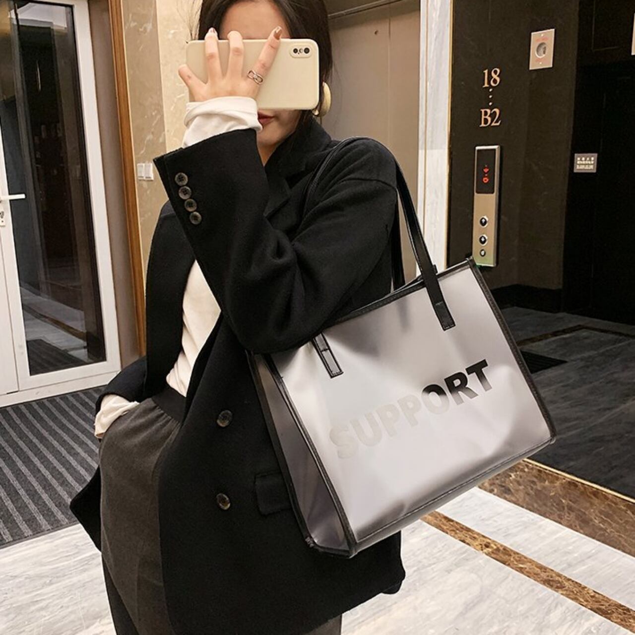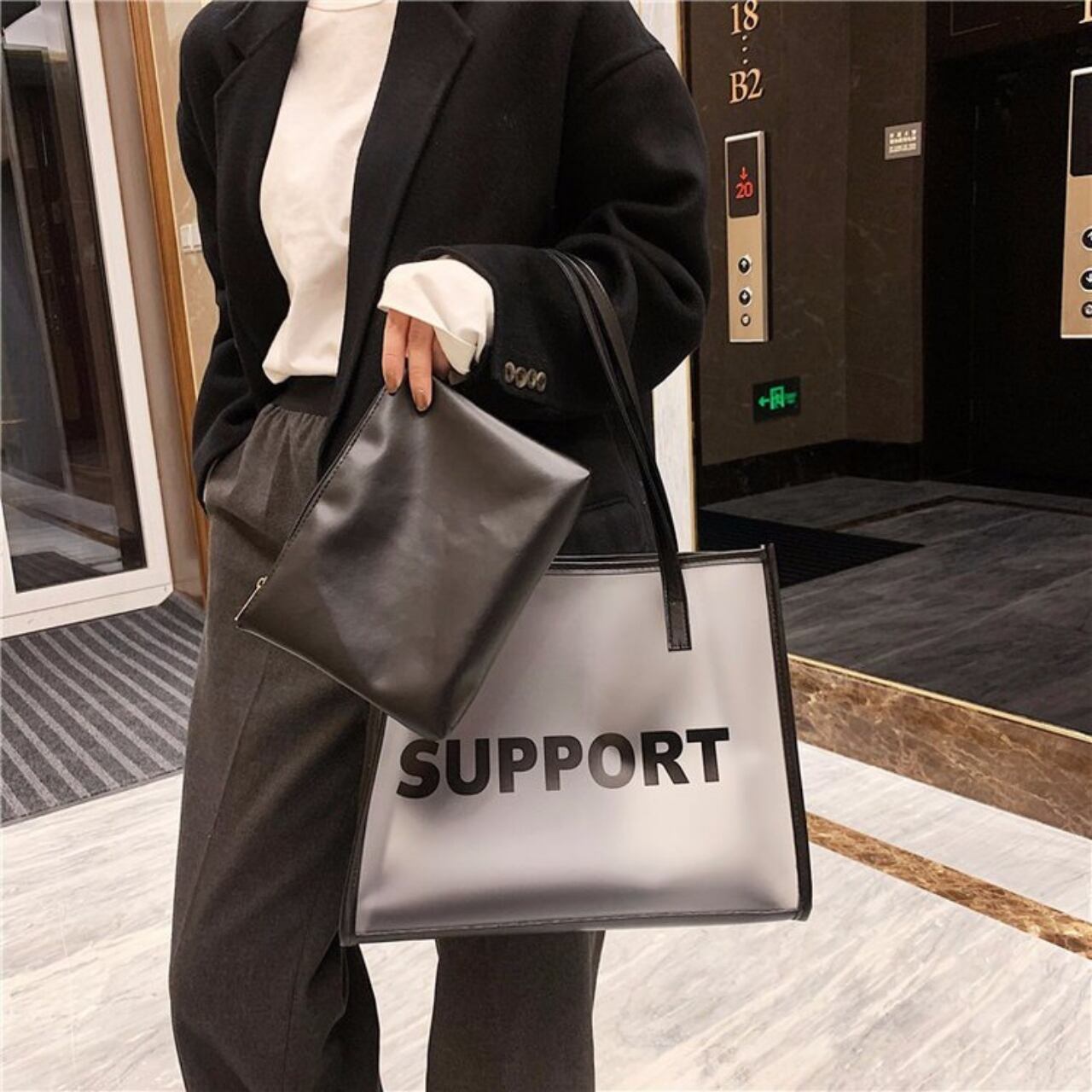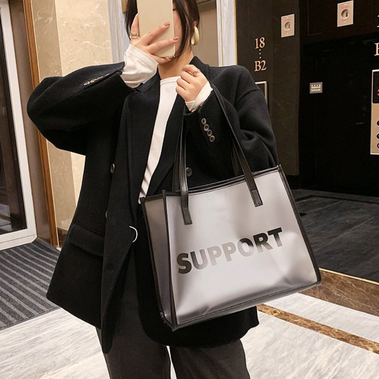 【送料無料】 トートバッグ クリアバッグ 3色展開 大容量 通勤 通学 肩掛け A4 カジュアル クリア 透け感 透明 ブラック ホワイト コーヒー 黒 白 茶 10代 20代 カレッジコーデ お出かけ デート 夏