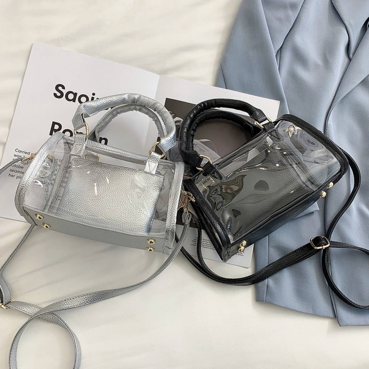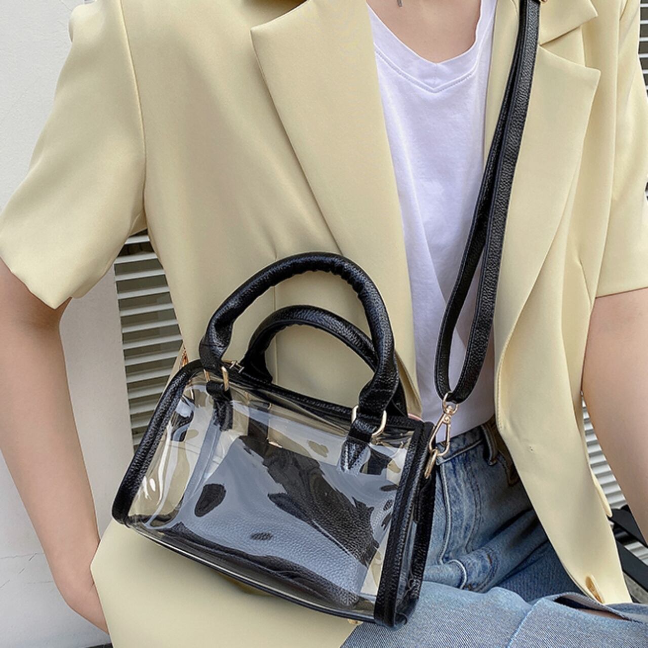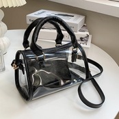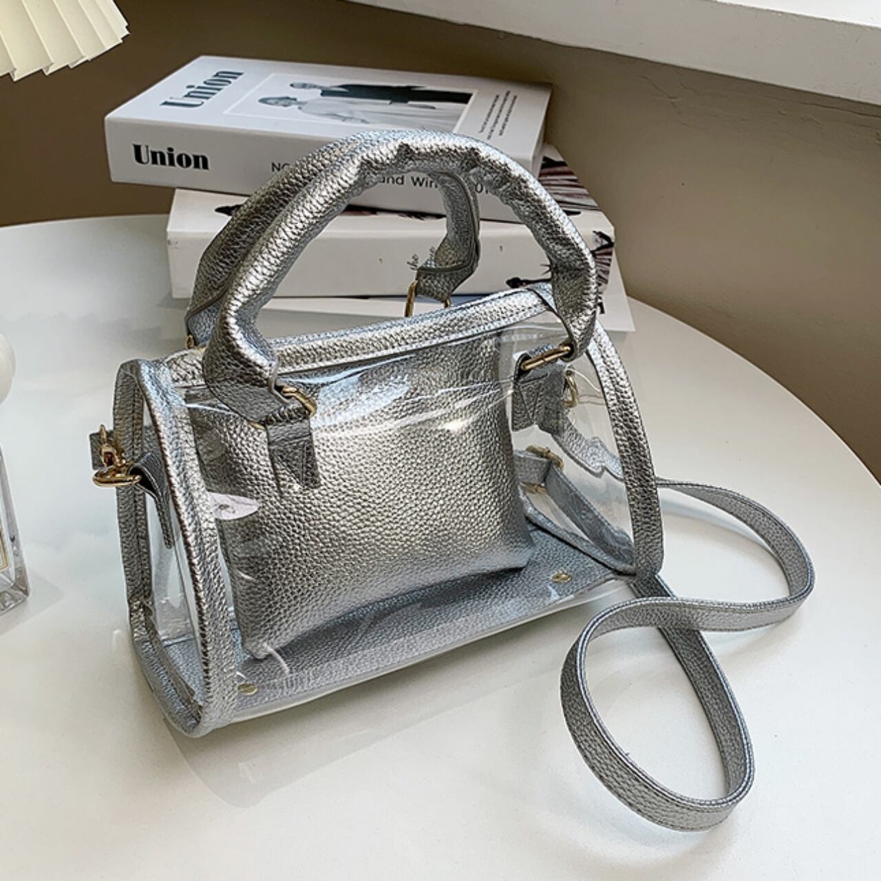 【送料無料】 ショルダーバッグ ハンドバッグ 2way ミニバッグ クリア素材 クリアバッグ コンパクト 透け感 透明 肩掛け オシャレ 大人可愛い 20代 こなれ感 デート お出かけ 夏 シルバー ブラック 2色展開 銀 黒