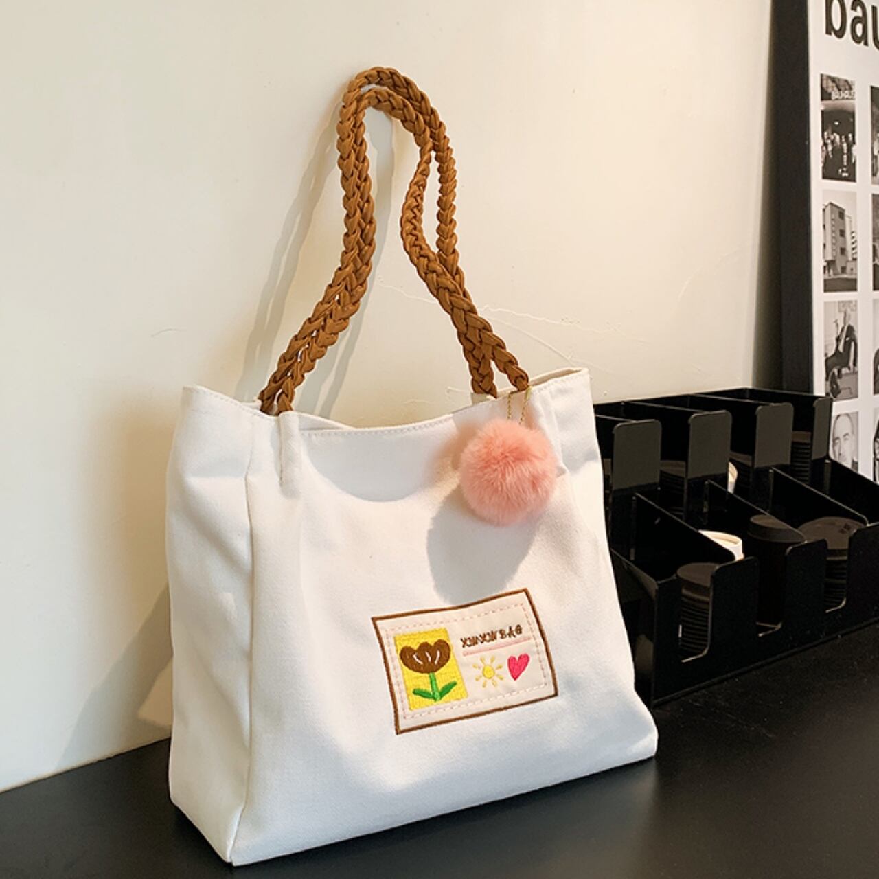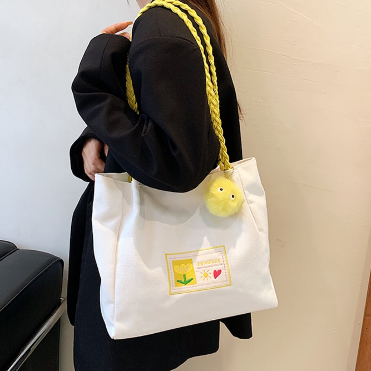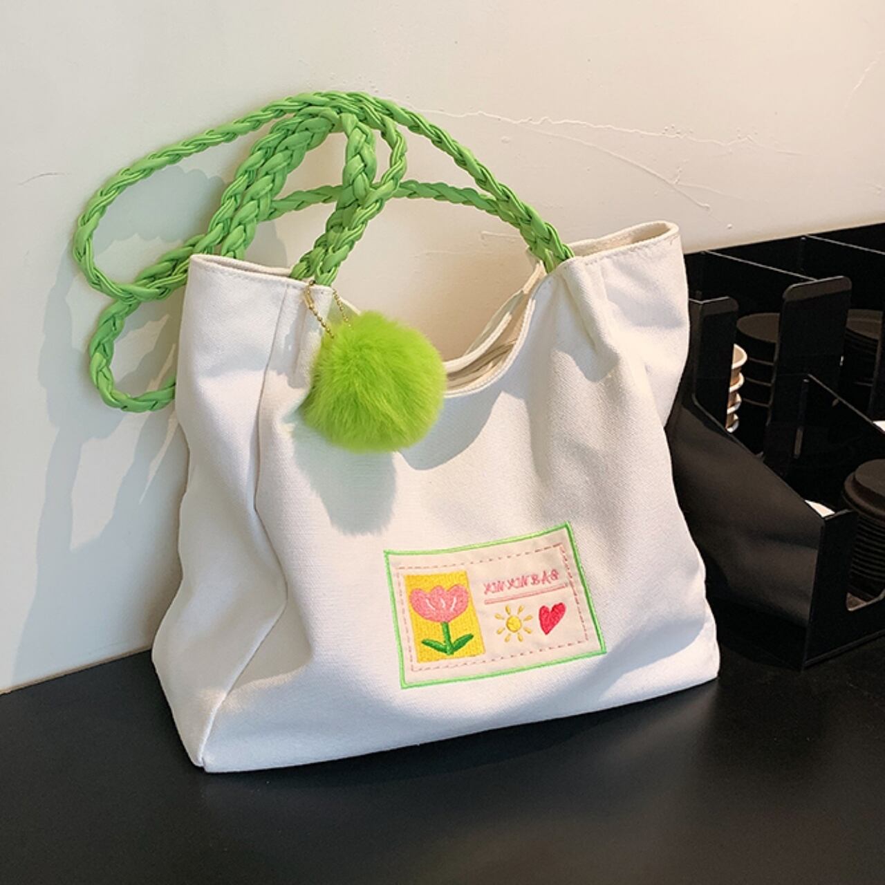 【送料無料】トートバッグ キャンバス カーキ イエロー グリーン ピンク 大容量 4色展開 10代 20代 通学 カレッジコーデ 刺繍 フラワーモチーフ 肩掛け お出かけ カジュアルコーデ フェミニン ガーリー オシャレ