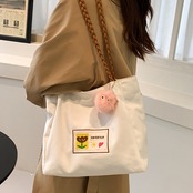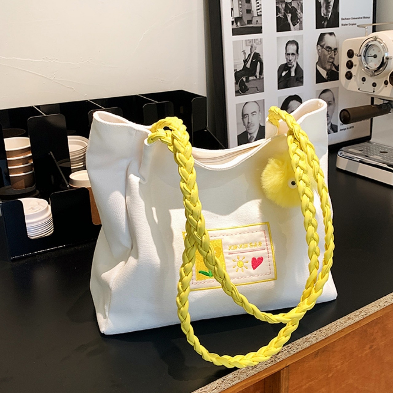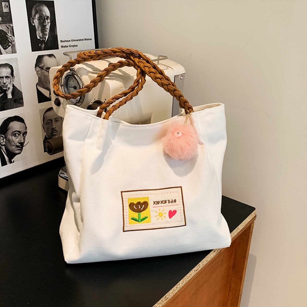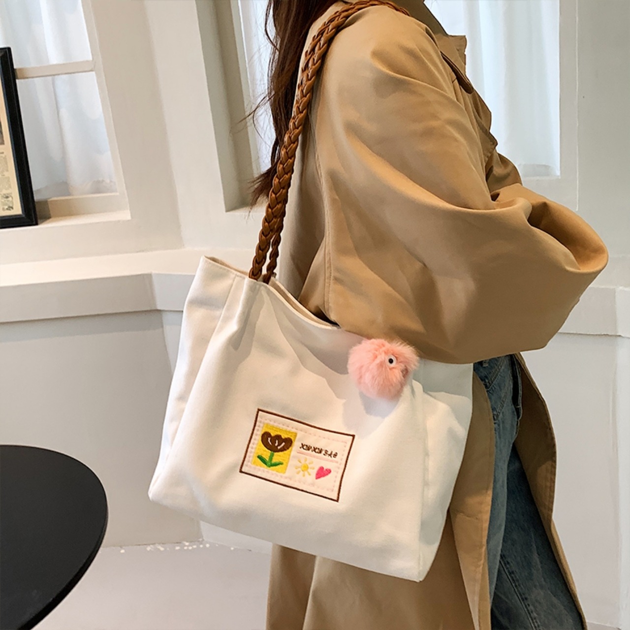 【送料無料】トートバッグ キャンバス カーキ イエロー グリーン ピンク 大容量 4色展開 10代 20代 通学 カレッジコーデ 刺繍 フラワーモチーフ 肩掛け お出かけ カジュアルコーデ フェミニン ガーリー オシャレ