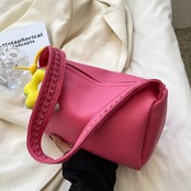【送料無料】ショルダーバッグ ハンドバッグ 5色 ブラック パープル イエロー ピンク ベージュ フェイクレザー PU 無地 シンプル ジップ 大人可愛い 20代 デート お出かけ お買い物