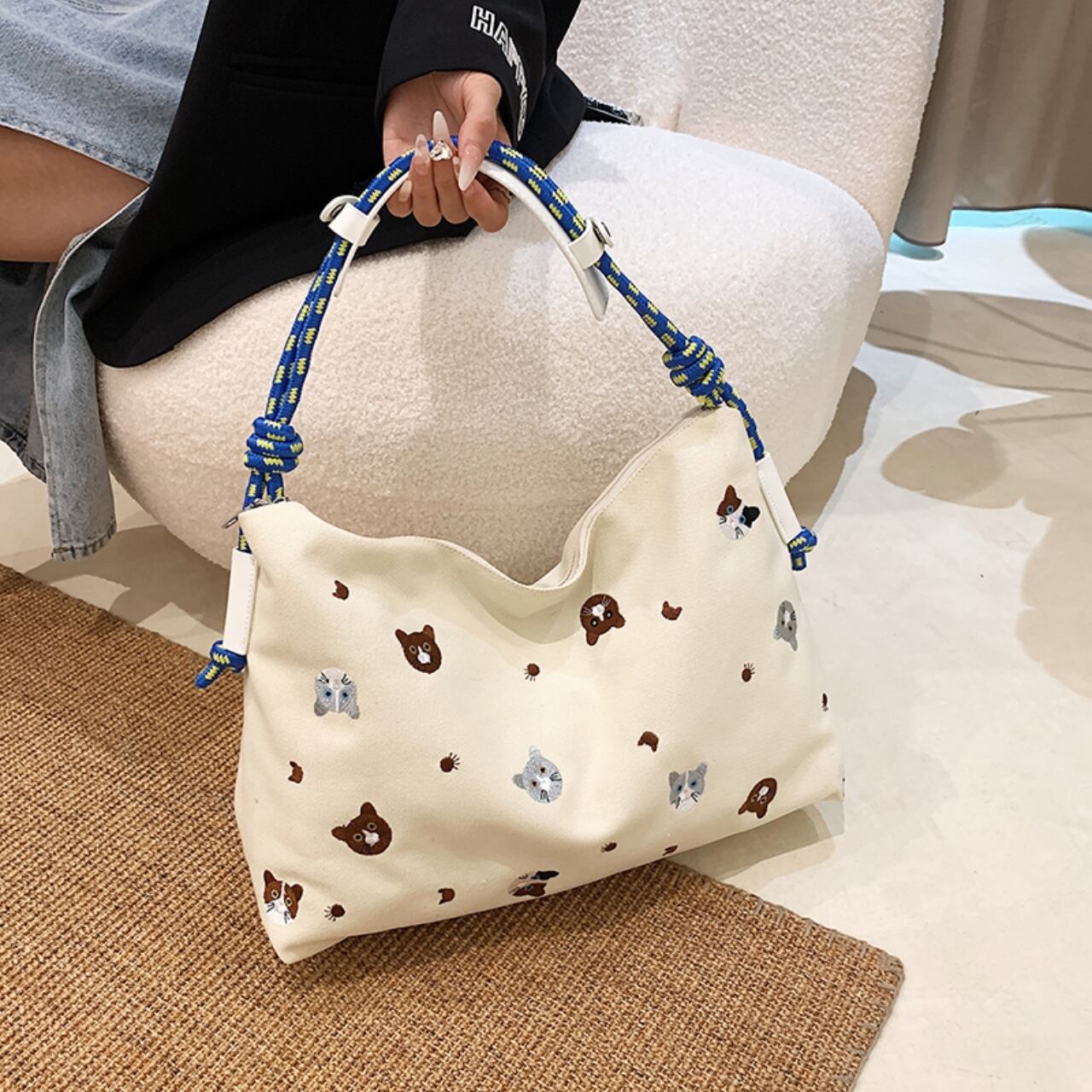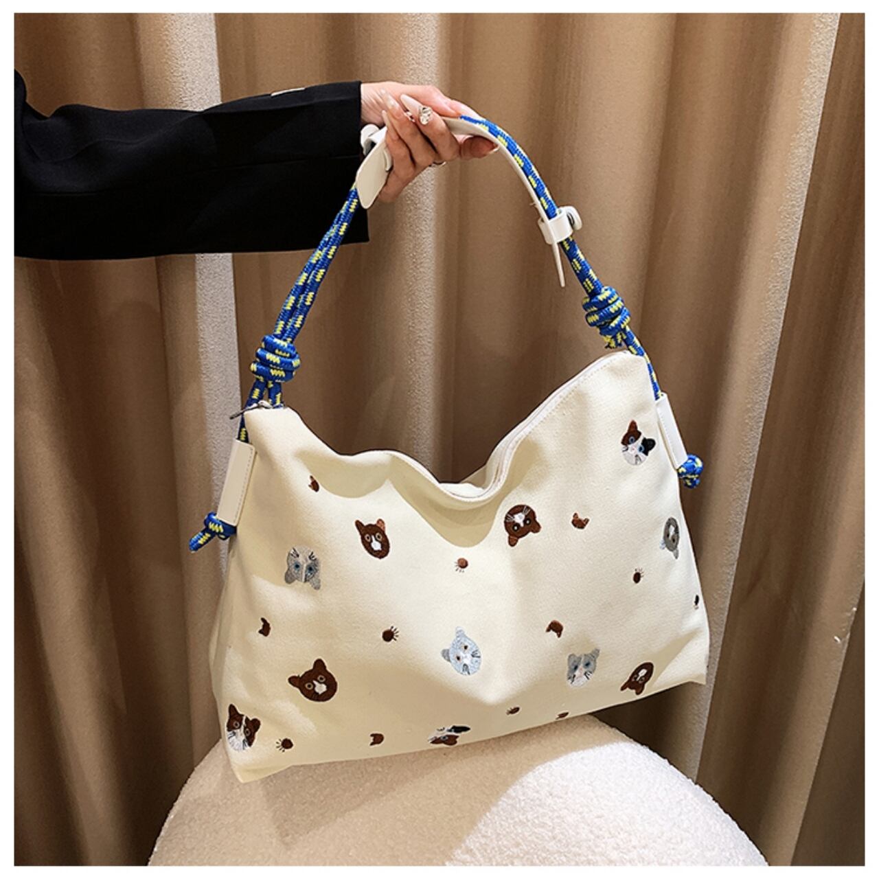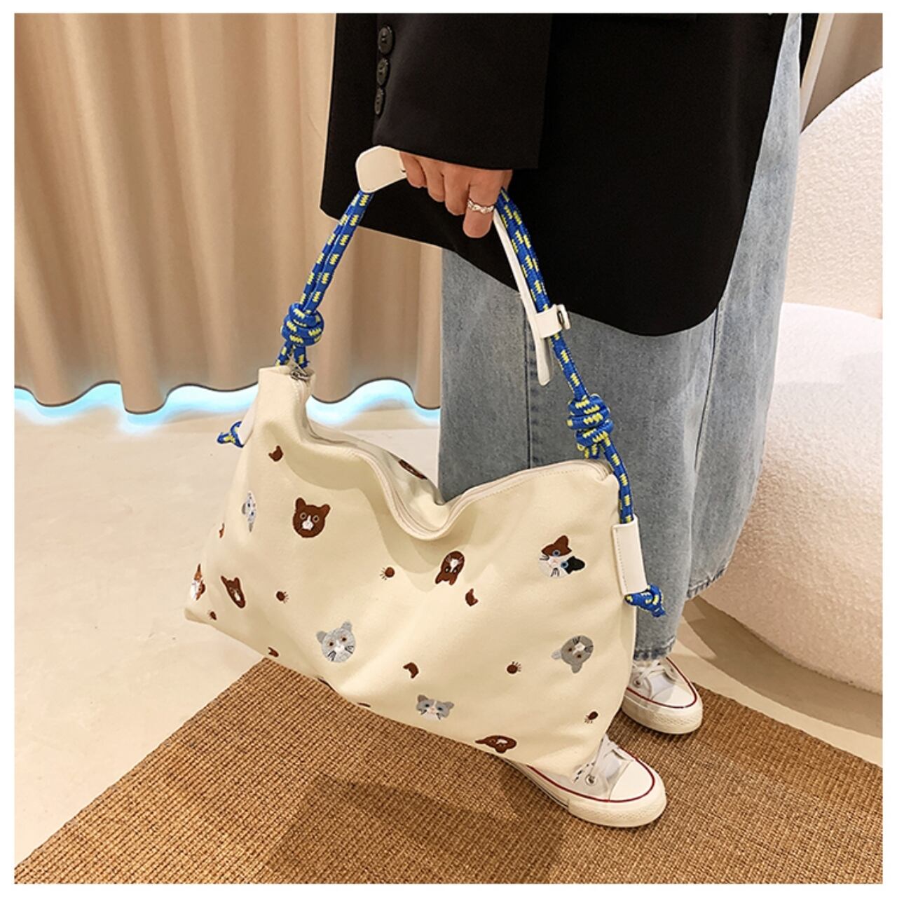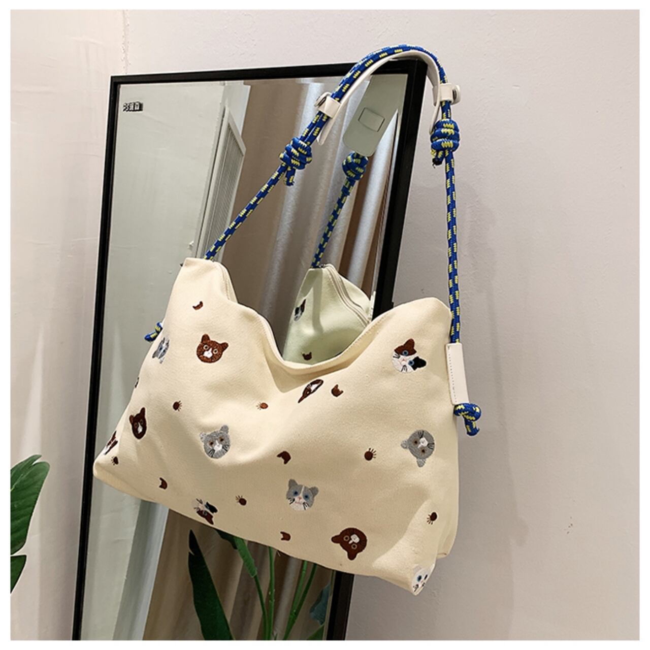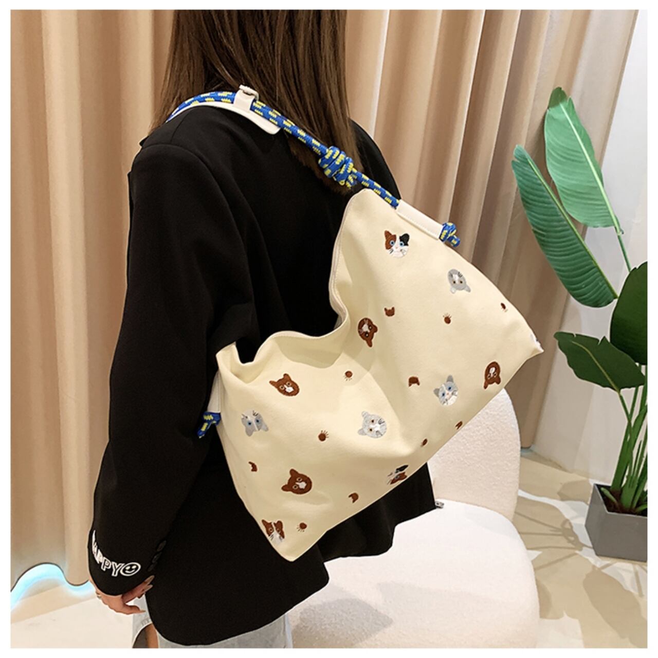 【送料無料】トートバッグ 大容量 アニマル柄 キャット 猫 肩掛け 10代 20代 クリーミーホワイト 通学 カレッジコーデ キャンバス オシャレ 可愛い 通学コーデ