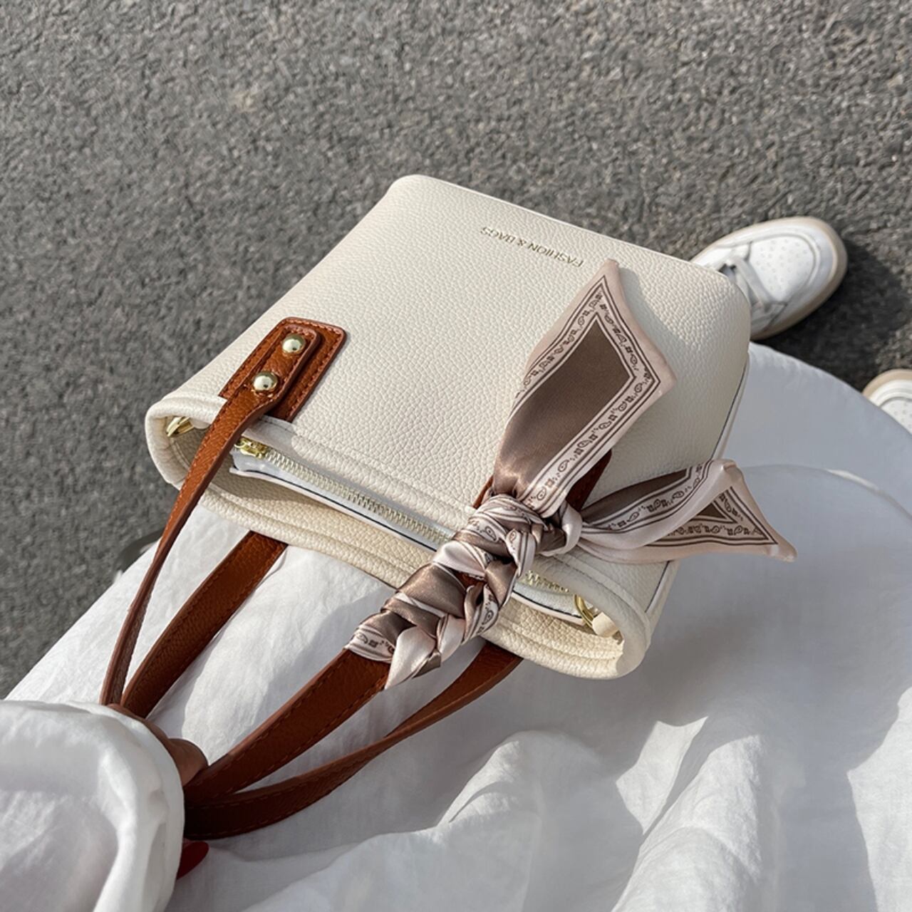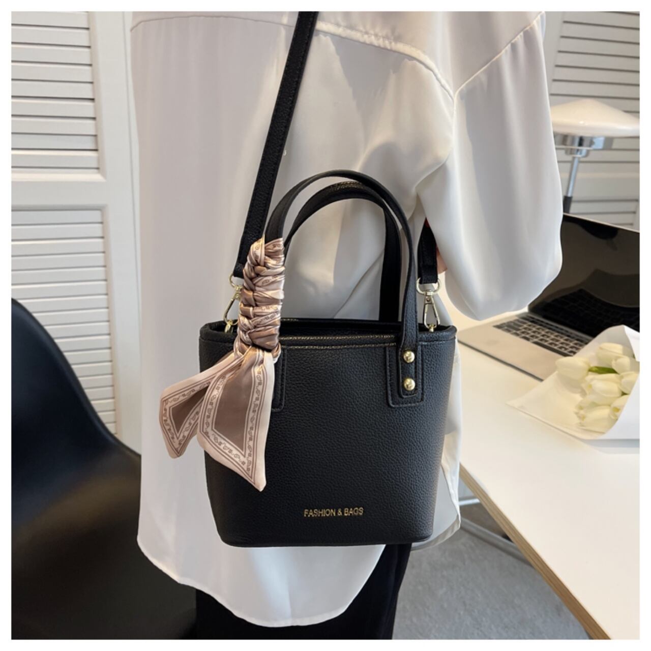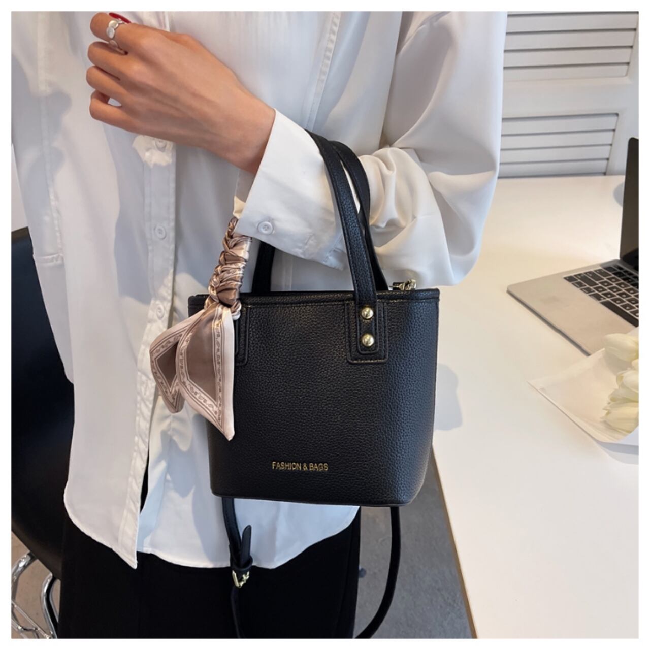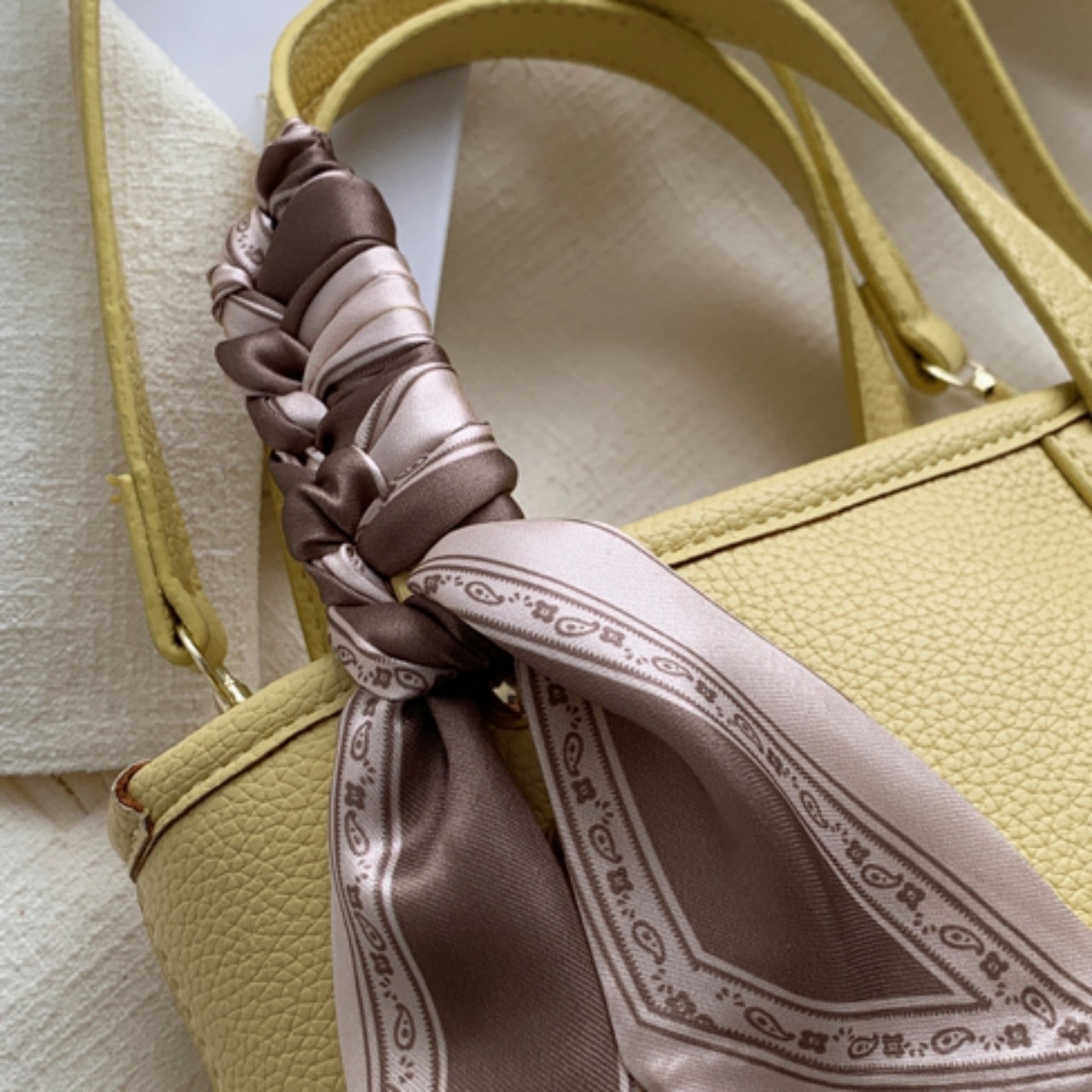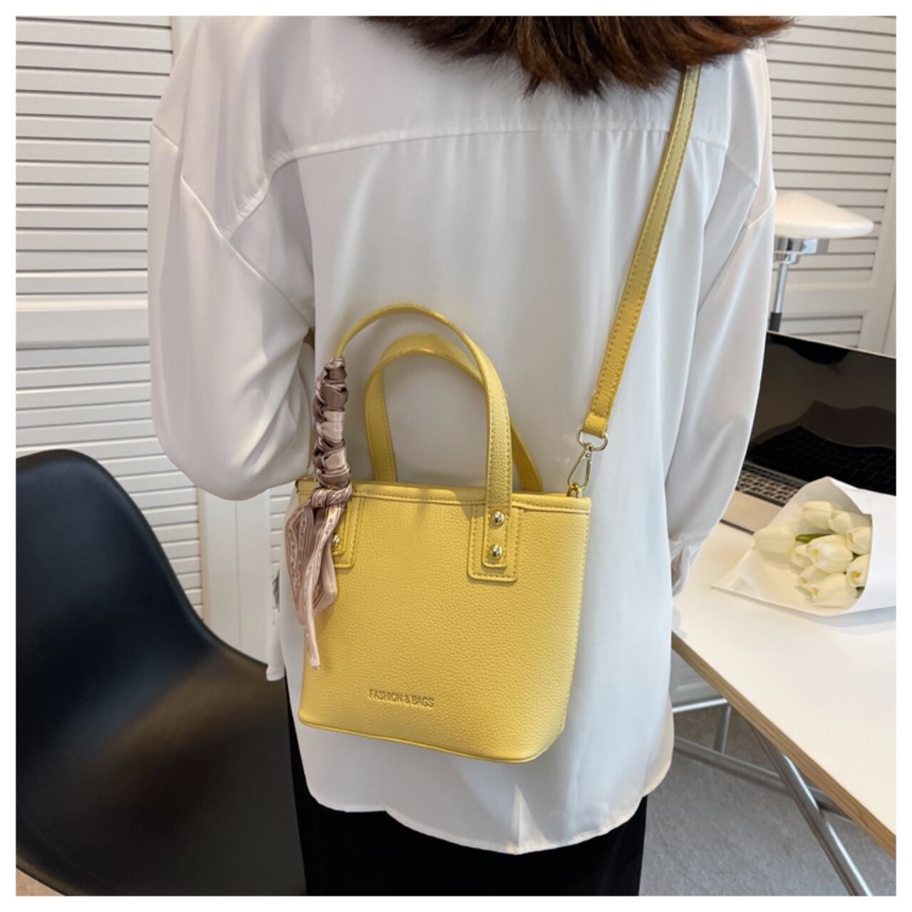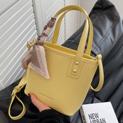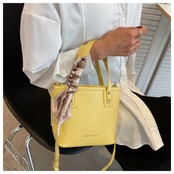 【送料無料】ハンドバッグ ショルダーバッグ 2way ブラック ホワイト イエロー スカーフ付き エレガント 大人可愛い 20代 こなれ感 無地 コンパクト デートお呼ばれ お出かけ 女子会 秋