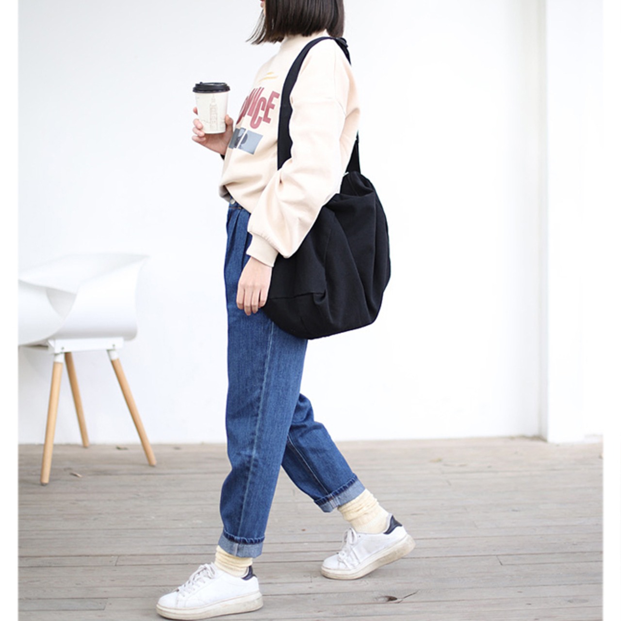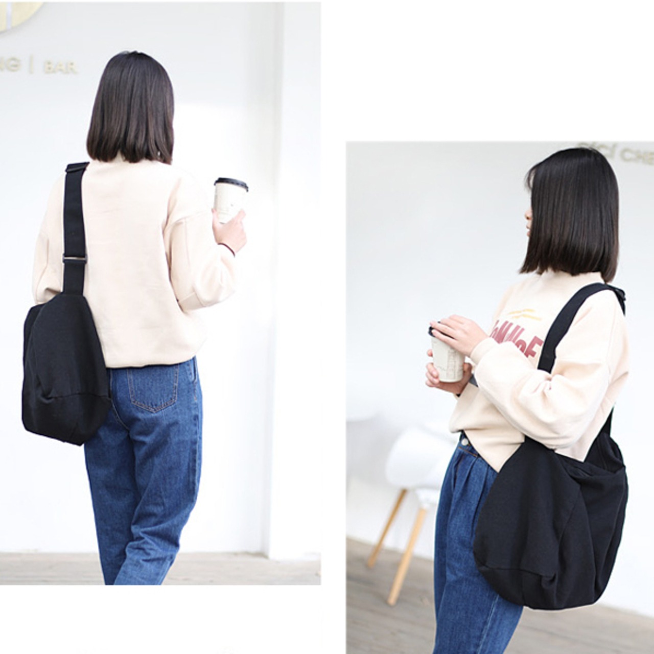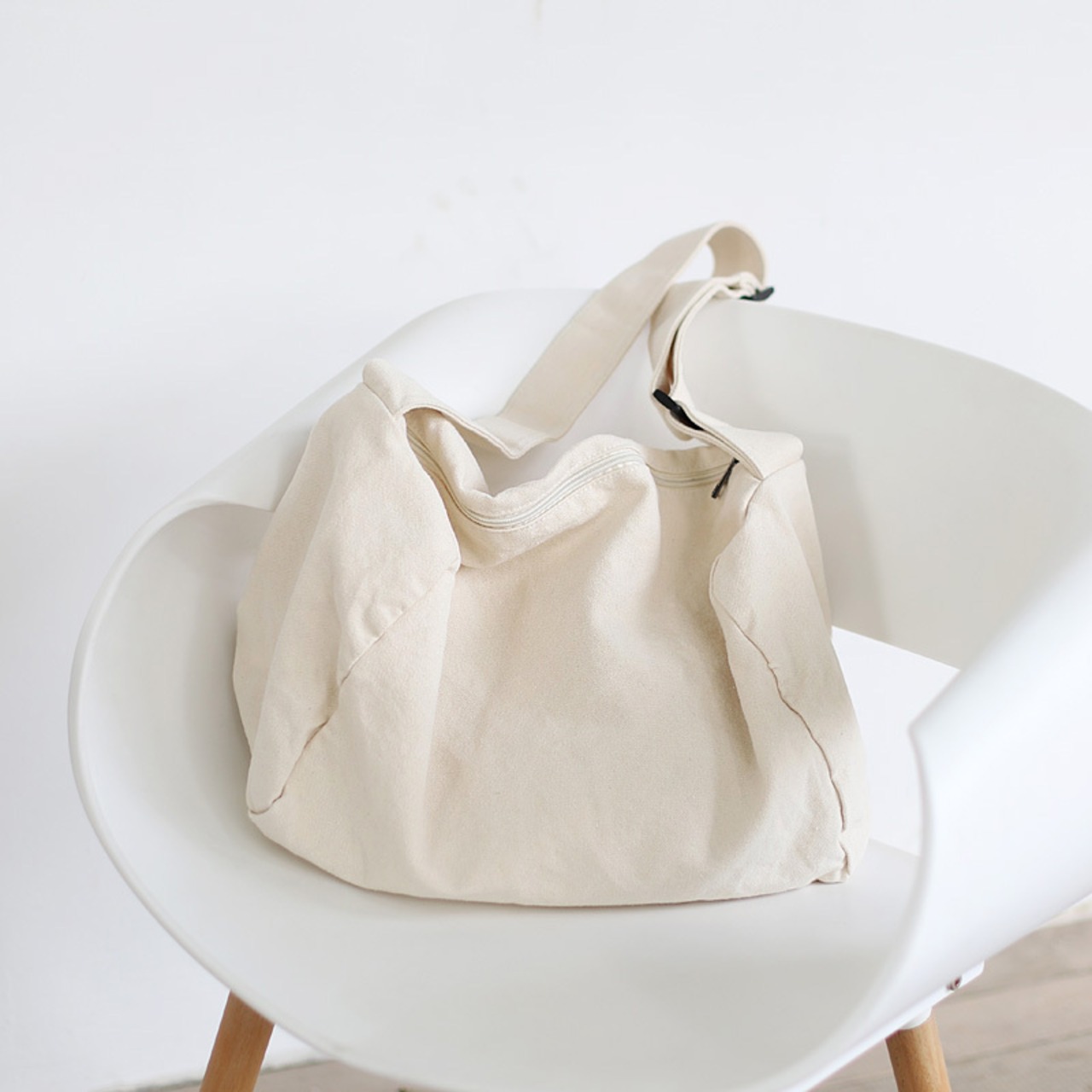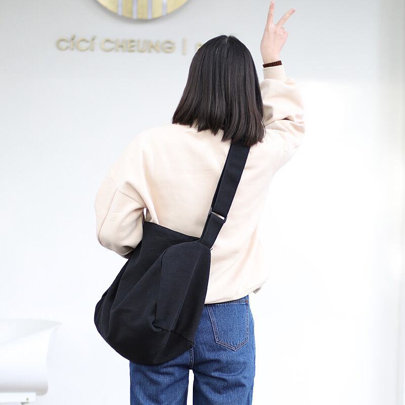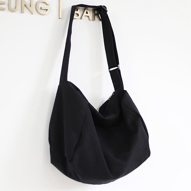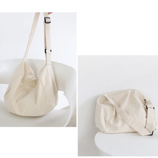【送料無料】 ショルダーバッグ 2色 白 黒 ホワイト ブラック 肩掛け 斜め掛け 無地 大容量 シンプル カジュアル 20代 30代 40代 通学 カレッジコーデ キャンバス お出かけ 春 夏 秋