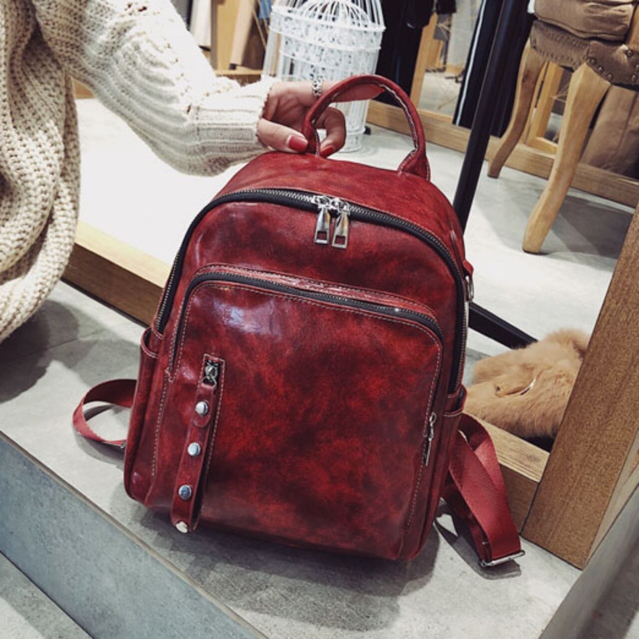 【送料無料】リュック バックパック 3色展開 ブラック レッド ブラウン 大容量 こなれ感 10代 20代 デート オシャレ かわいい PU 通学 カレッジコーデ