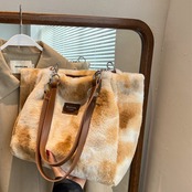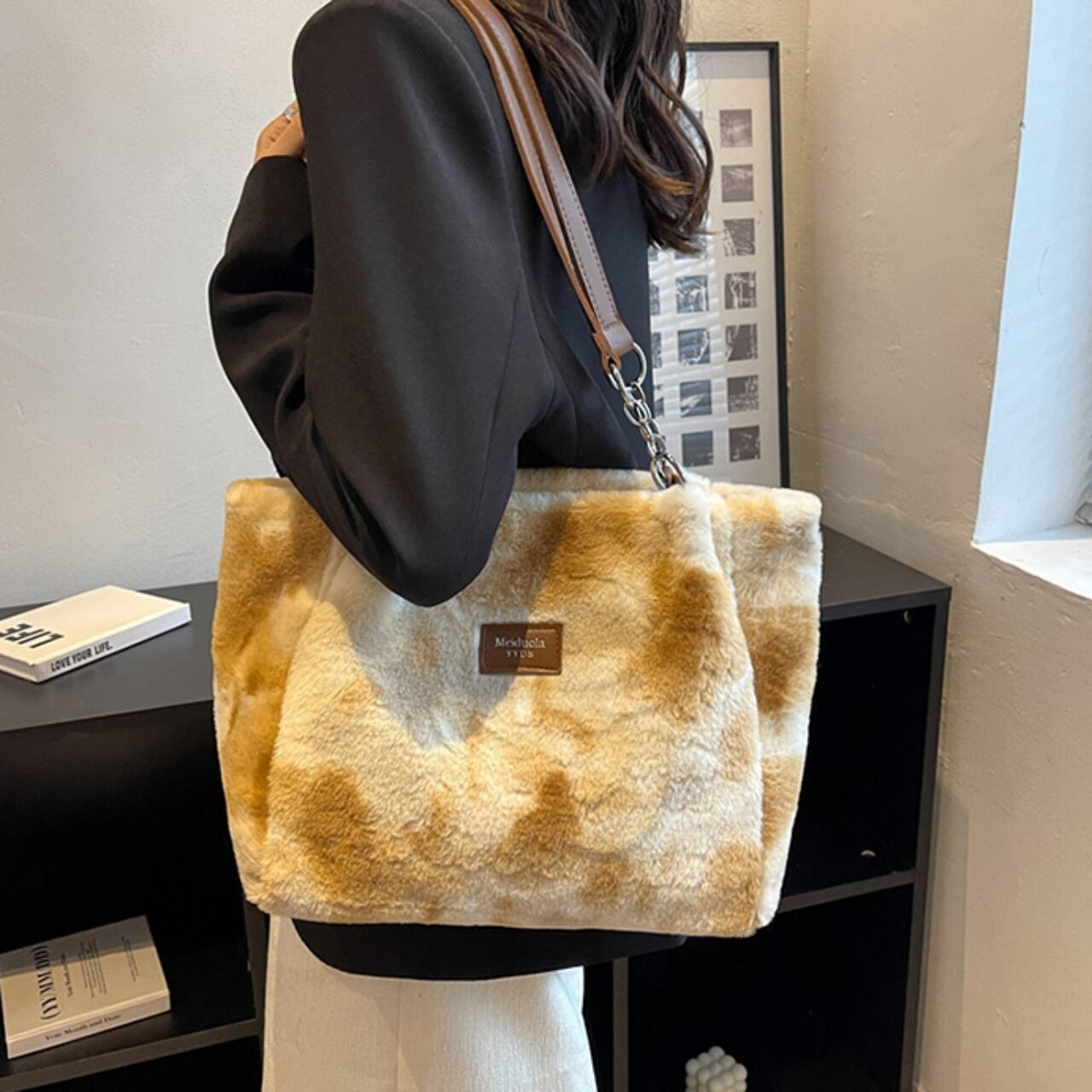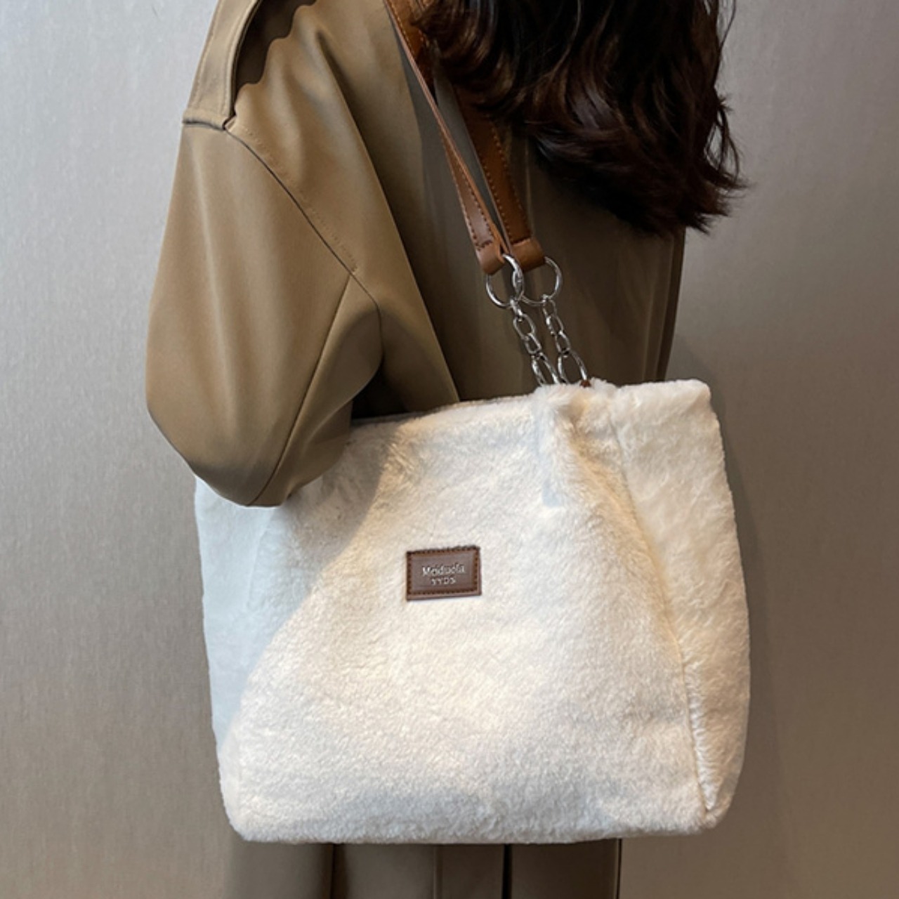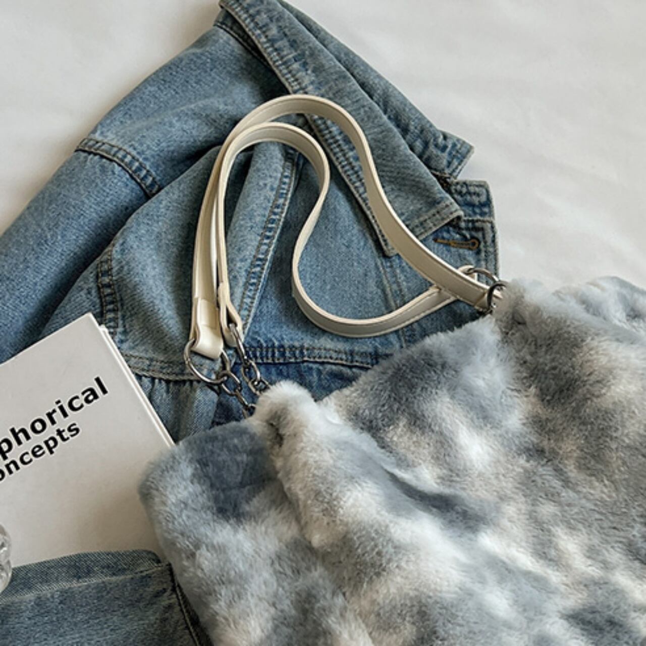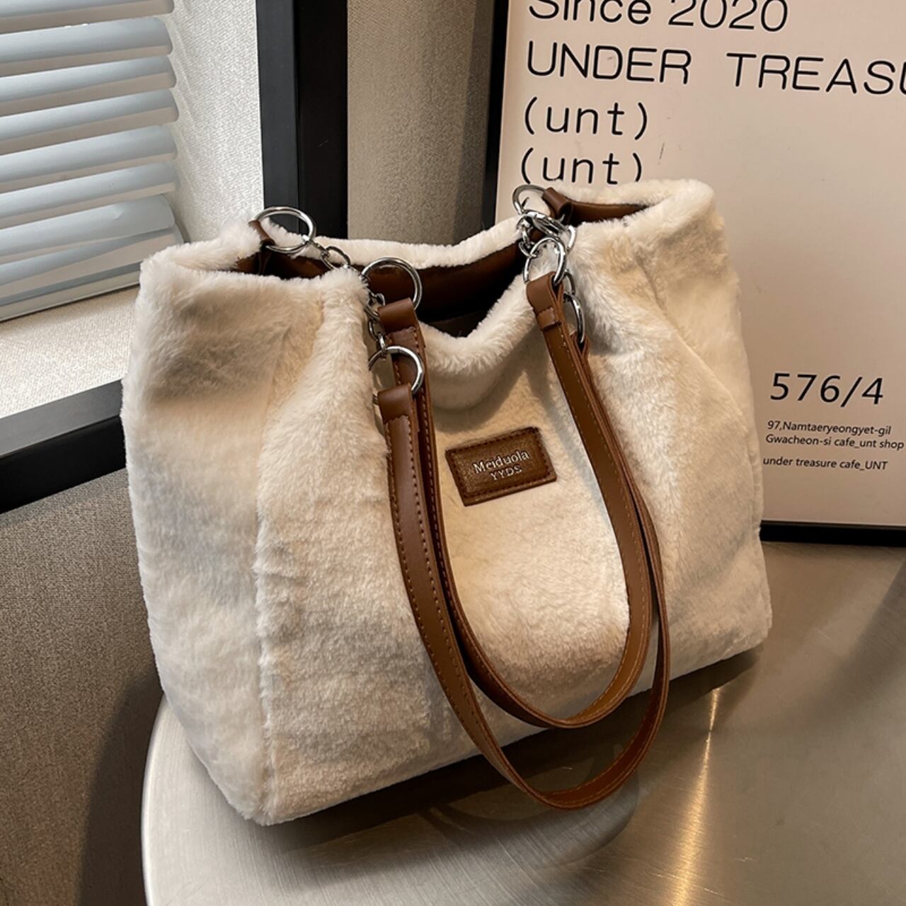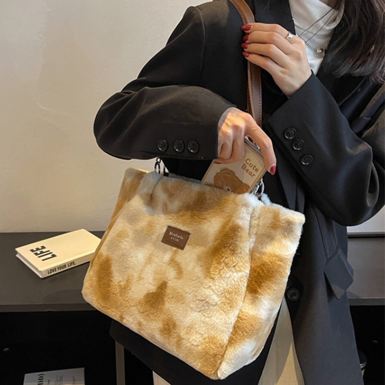 【送料無料】トートバッグ 3色展開 イエロー ブルー ホワイト 肩掛け 大容量 カレッジコーデ 通学 通勤 10代 20代 フェイクファー もふもふ 秋冬