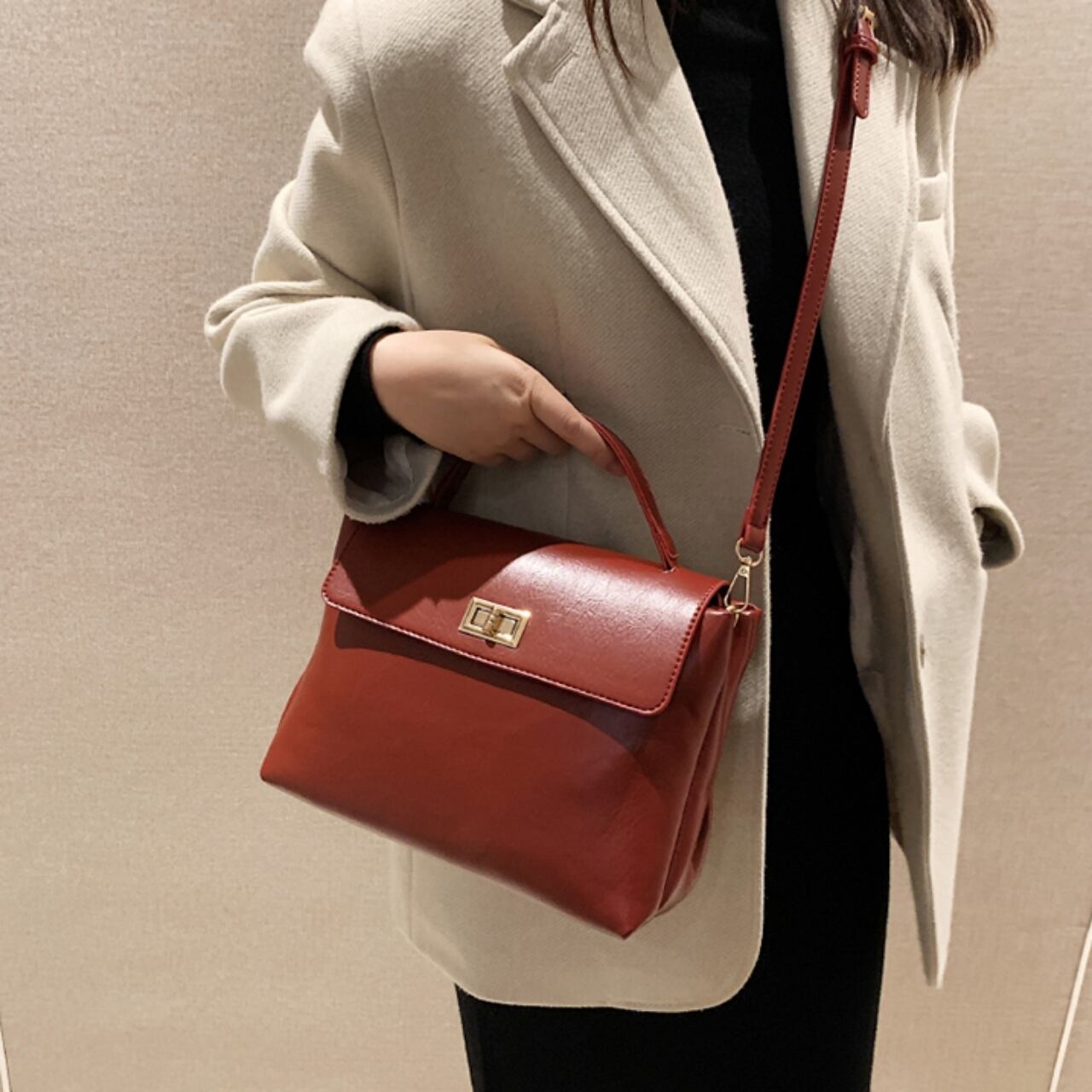 【送料無料】ハンドバッグ ショルダーバッグ 2way ブラック レッド ブラウン コーヒー 多機能 肩掛け 斜めかけ フェイクレザー PU 大人可愛い シック シンプル 大人女子 20代 30代 デート お出かけ