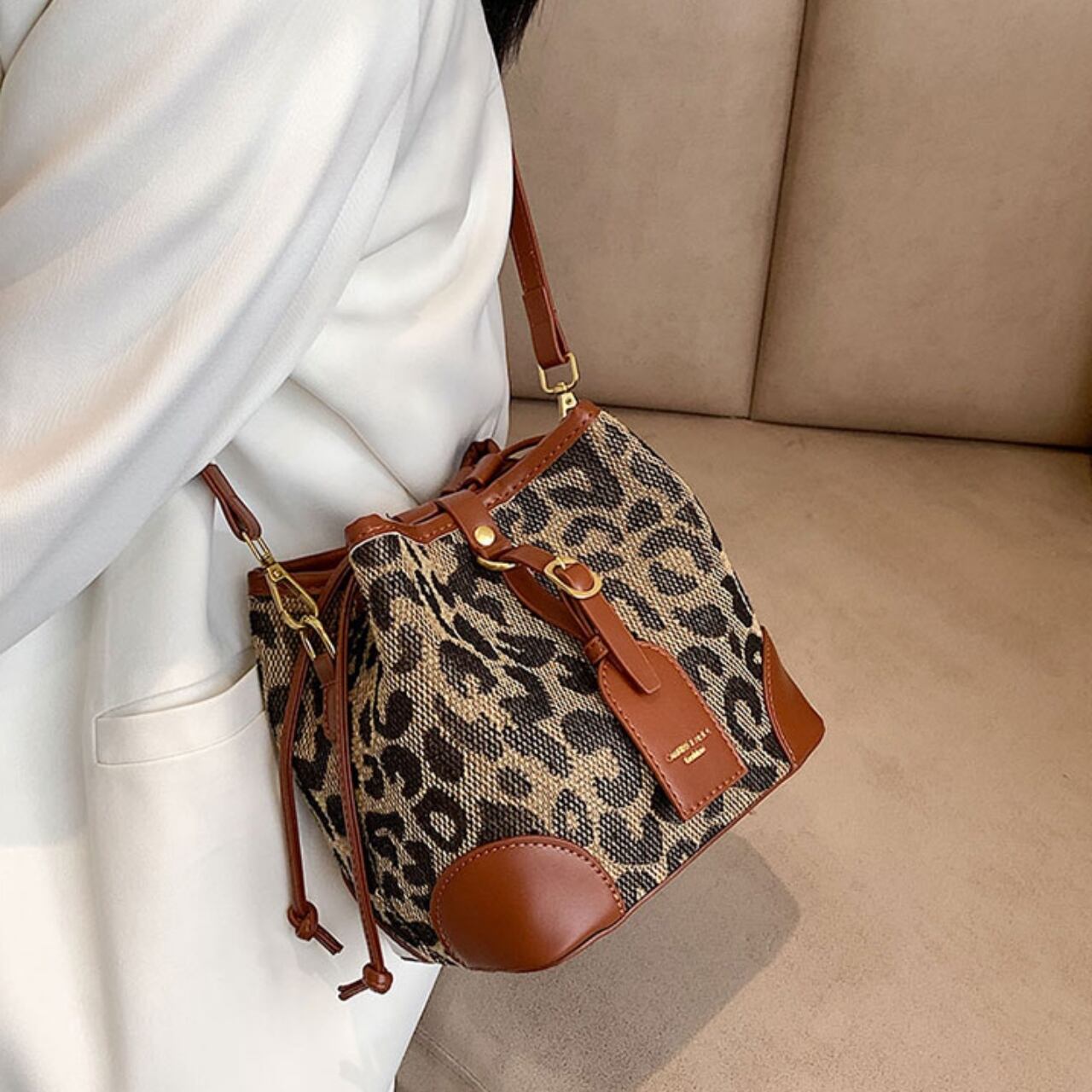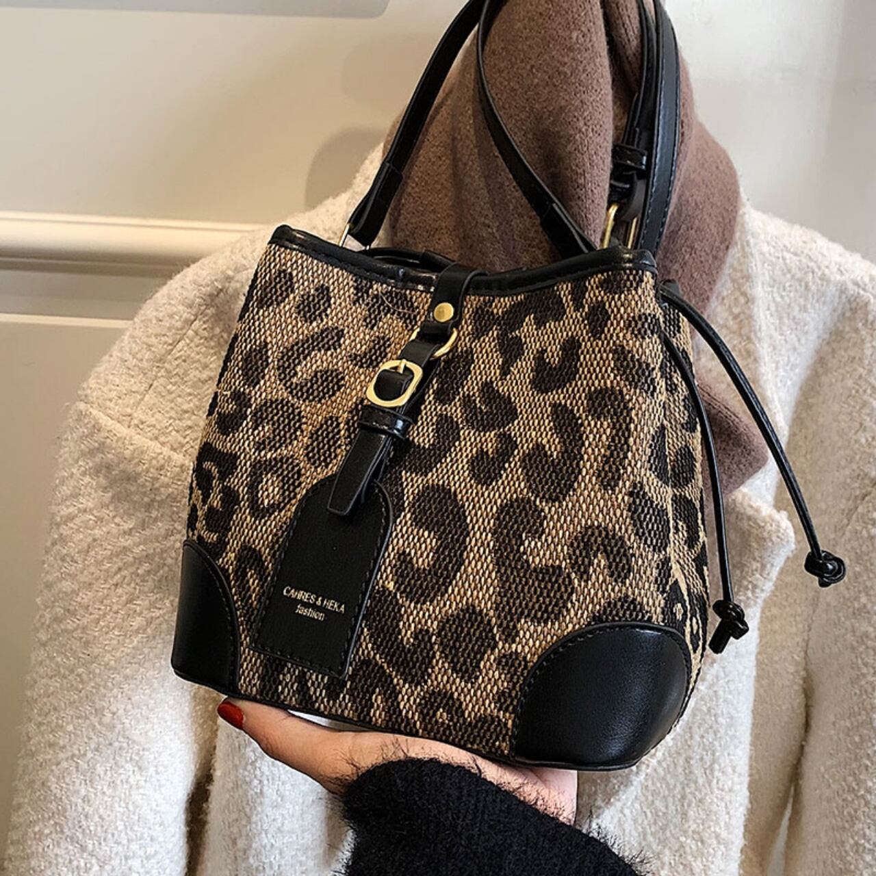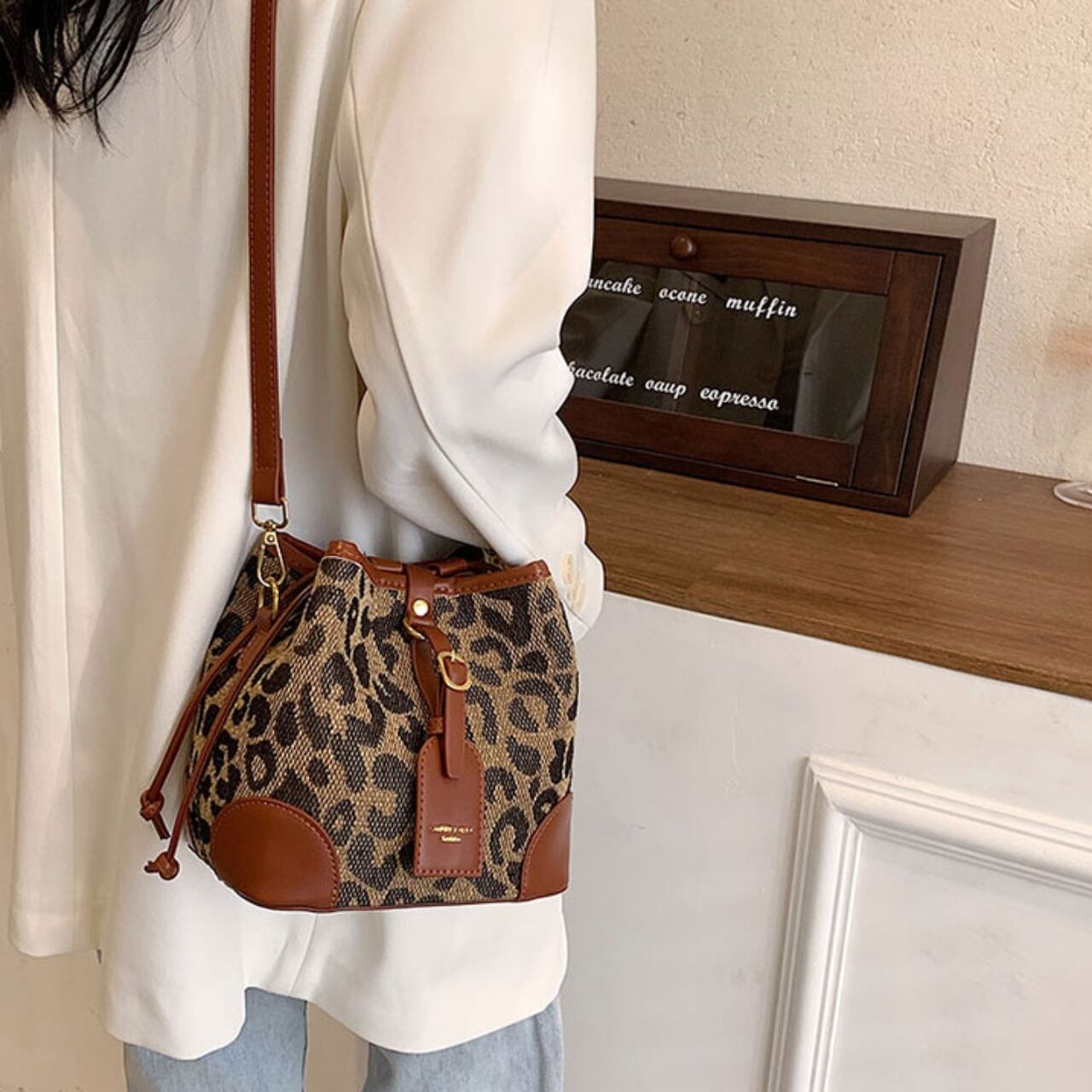 【送料無料】ショルダーバッグ レオパード柄 ヒョウ柄 アニマル柄 3色展開 ブラウン ブラック コーヒー ショルダー調節可能 大人かわいい 20代 デート お出かけ 秋冬