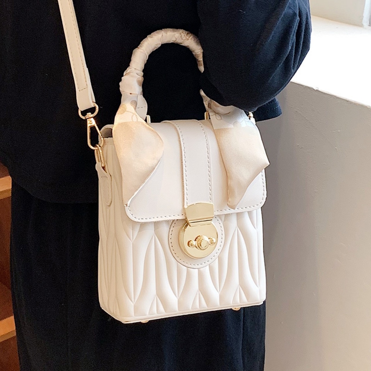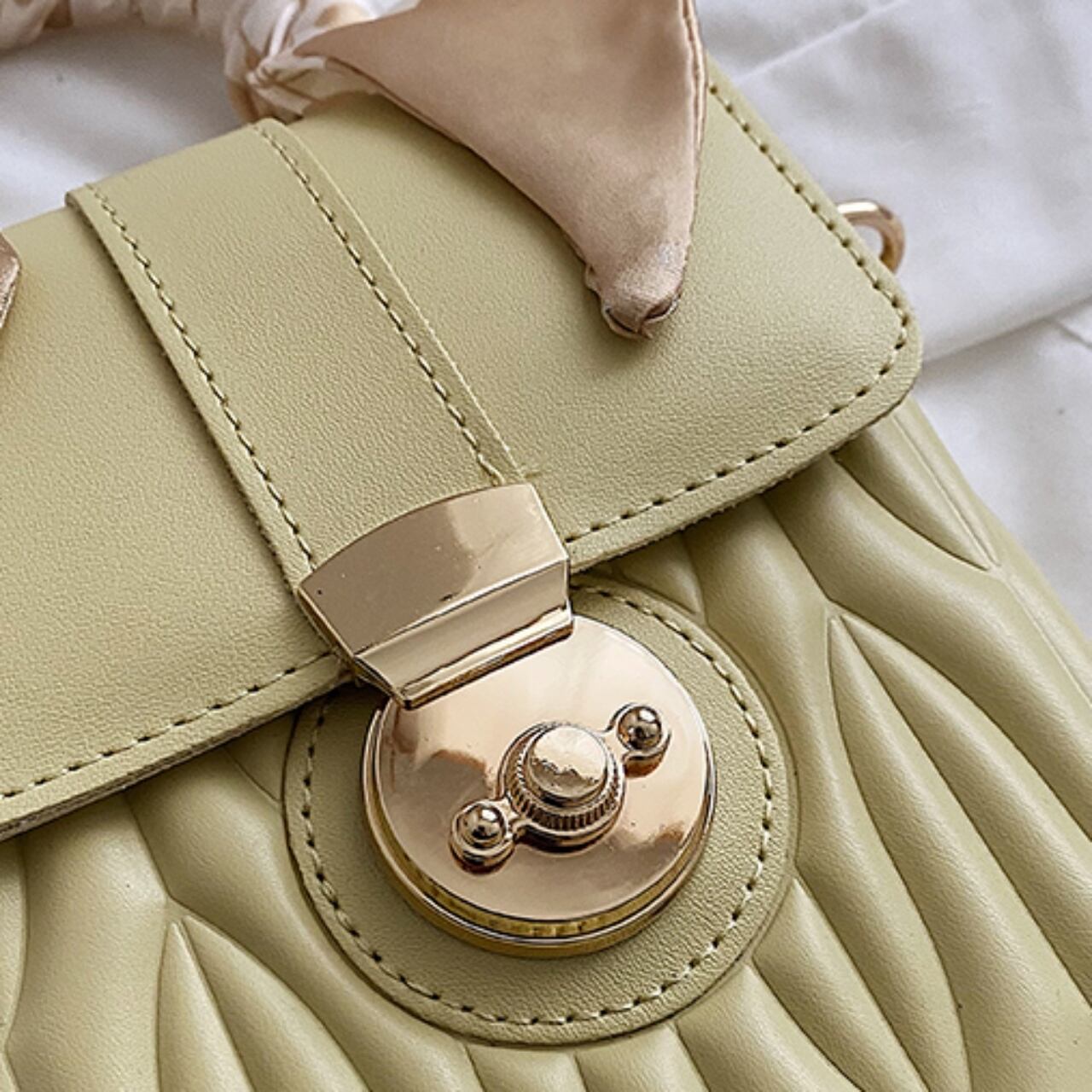 【送料無料】ハンドバッグ ショルダーバッグ 2way グリーン ホワイト イエロー ブラック フェミニン PU ガーリー スカーフ巻 大人かわいい 20代 デート お呼ばれ お出かけ 春夏