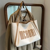 【送料無料】トートバッグ 3色展開 ブラック コーヒー カーキ PU 大容量 肩掛け カレッジコーデ 通勤 通学 ロゴ カジュアルコーデ お出かけ 春