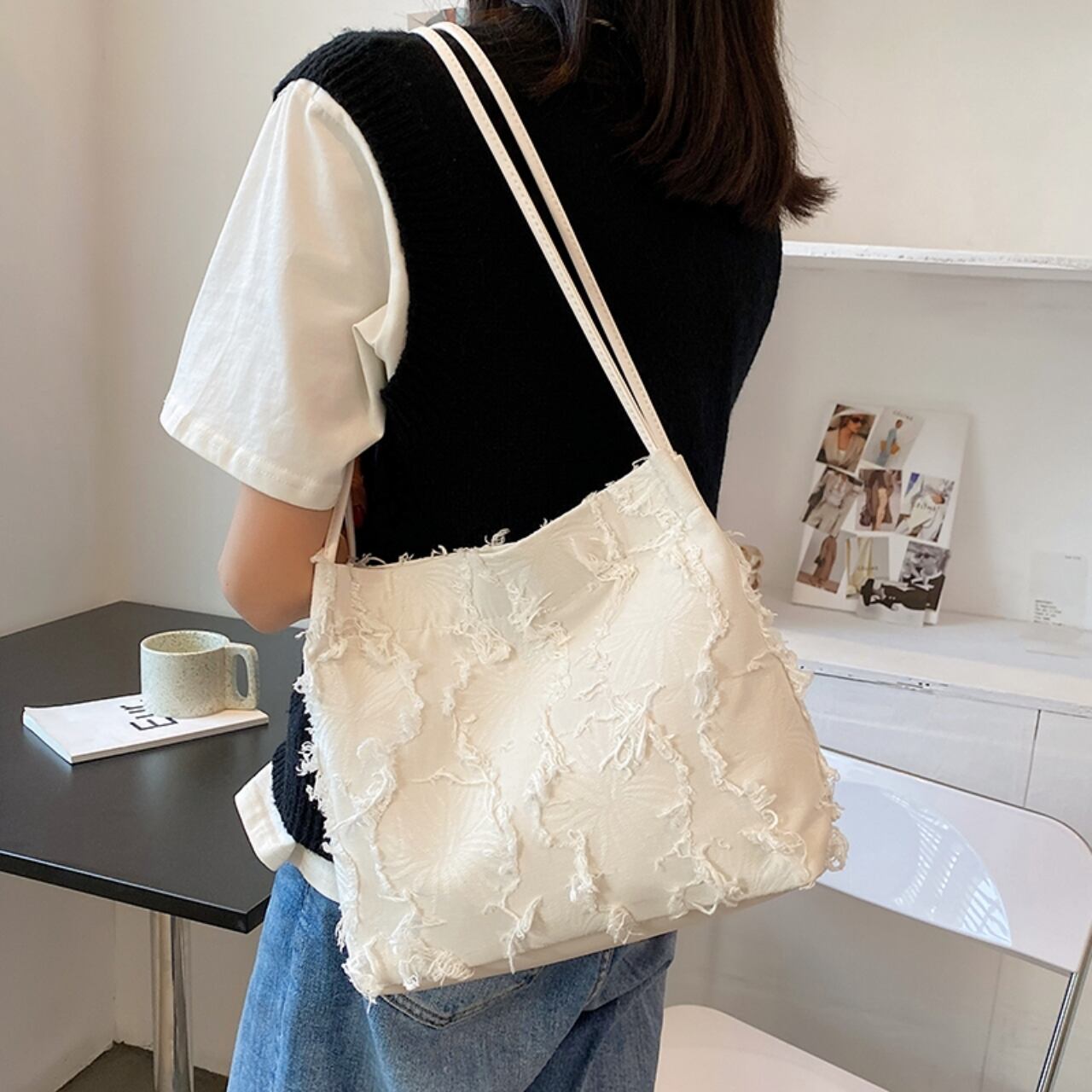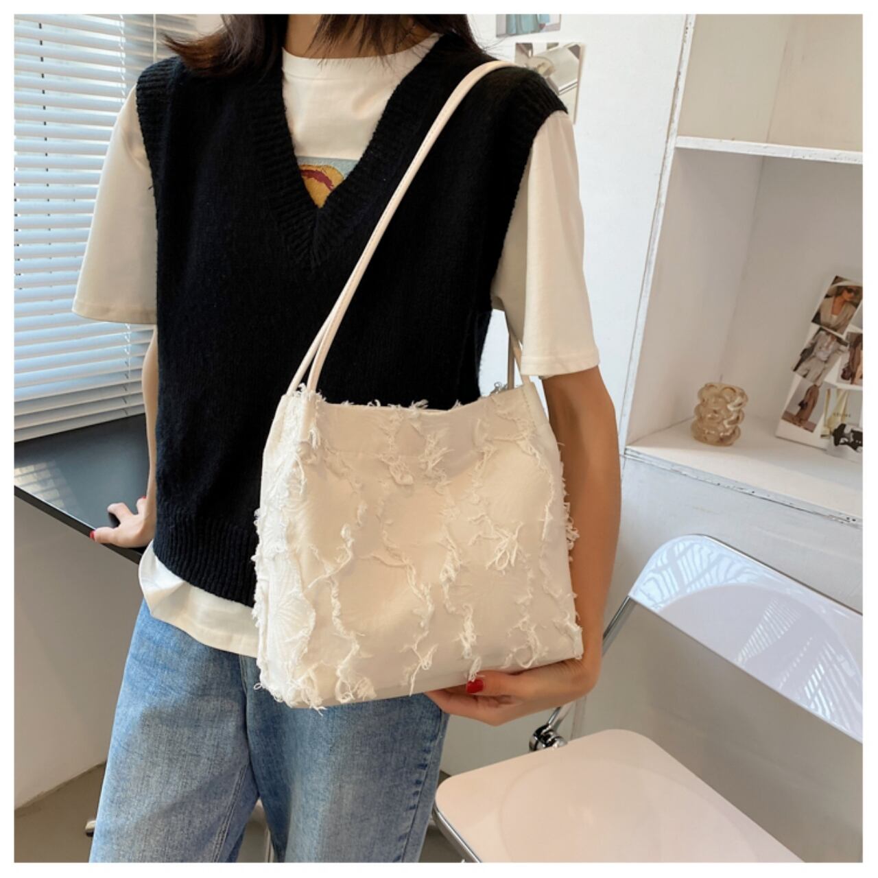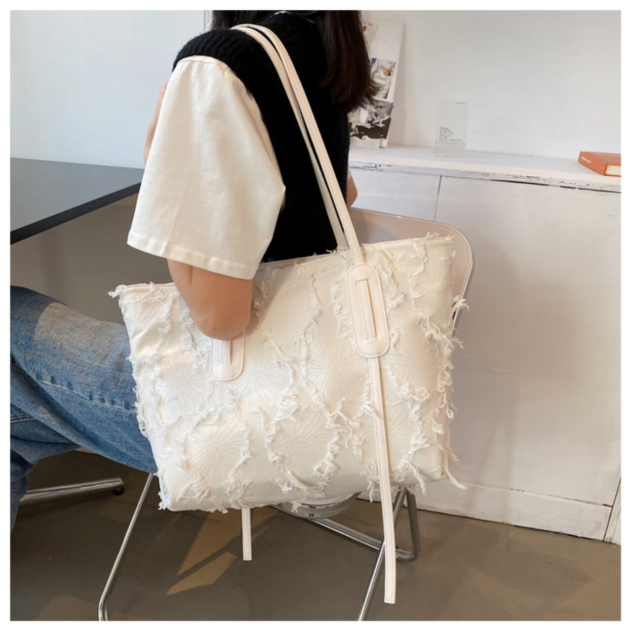 【送料無料】トートバッグ 2色展開 肩掛け 大容量 刺繍 上品 大人かわいい 大人女子 通勤 通学 オフィススタイル カレッジコーデ キャンバス 春夏