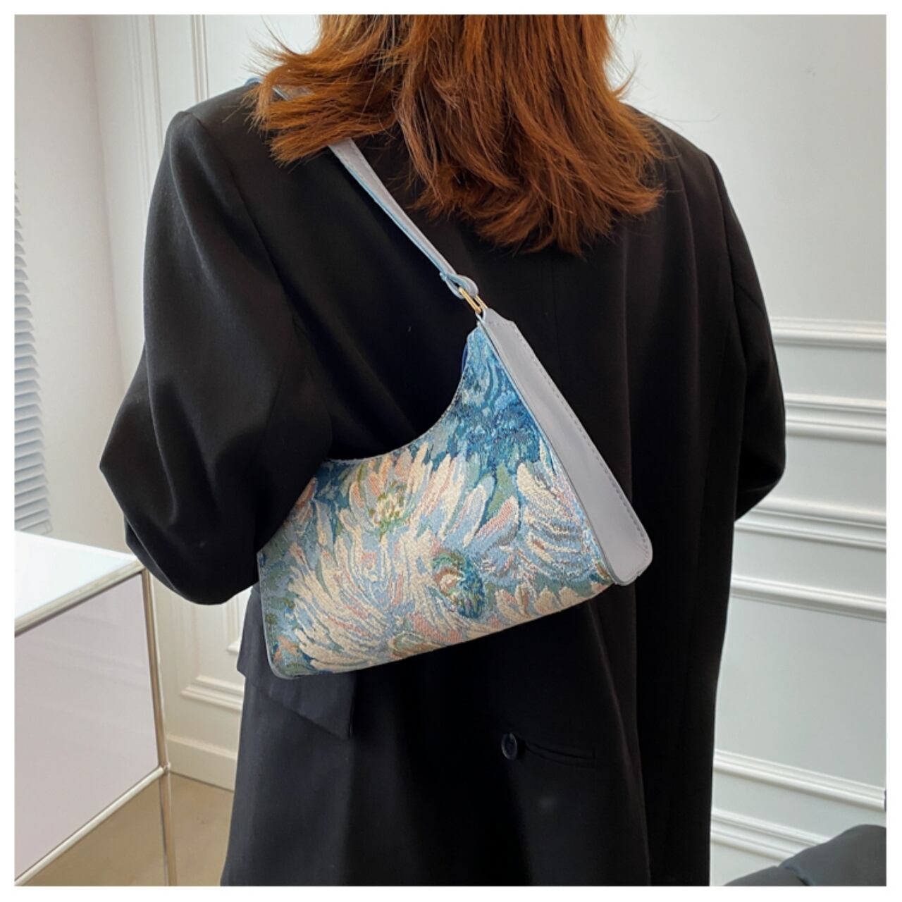【送料無料】ハンドバッグ ショルダーバッグ 2色展開 グリーン ブルー フラワー柄 花柄 フェミニン こなれ感 大人かわいい 20代 30代 大人女子 お呼ばれ デート お出かけ エレガント きれいめ 春