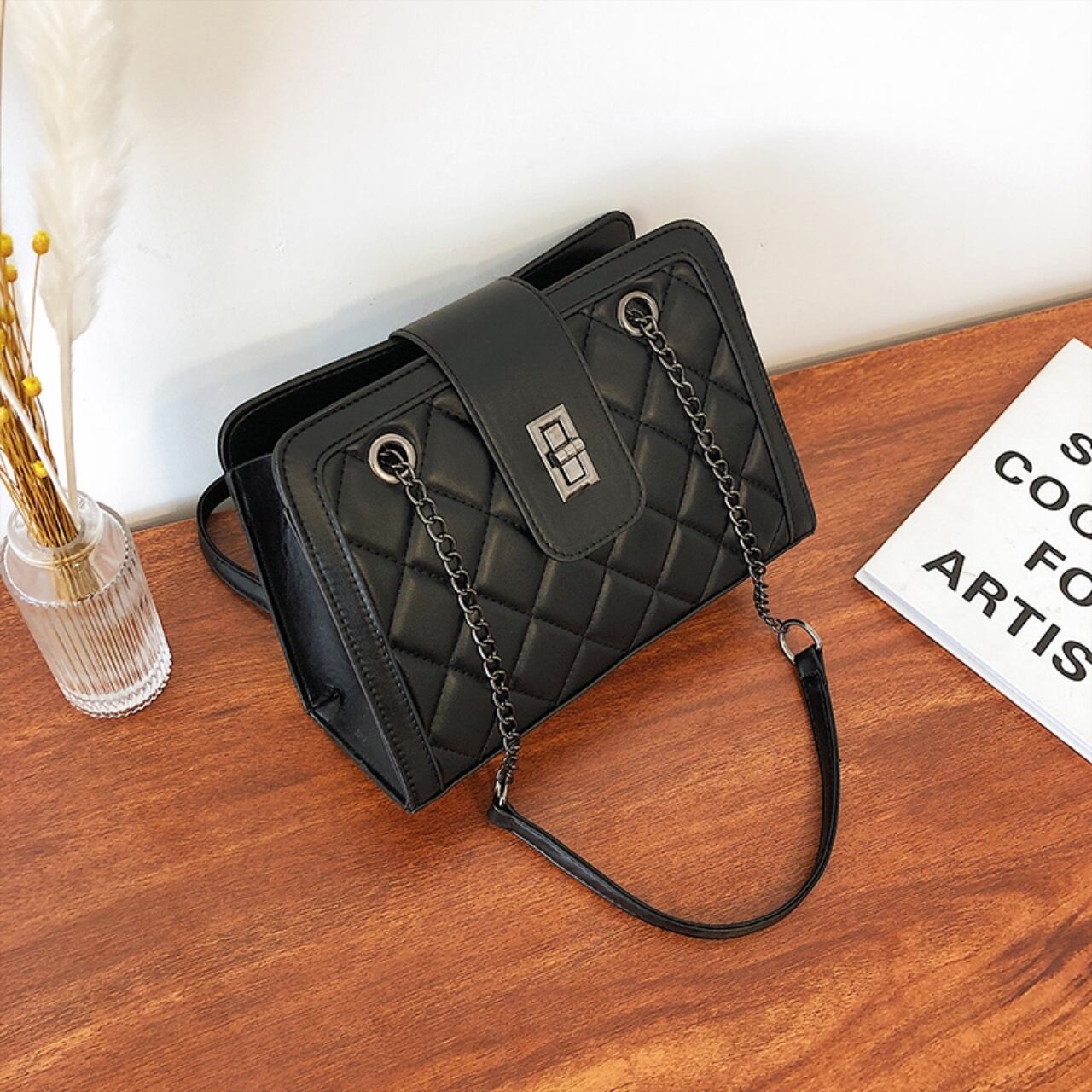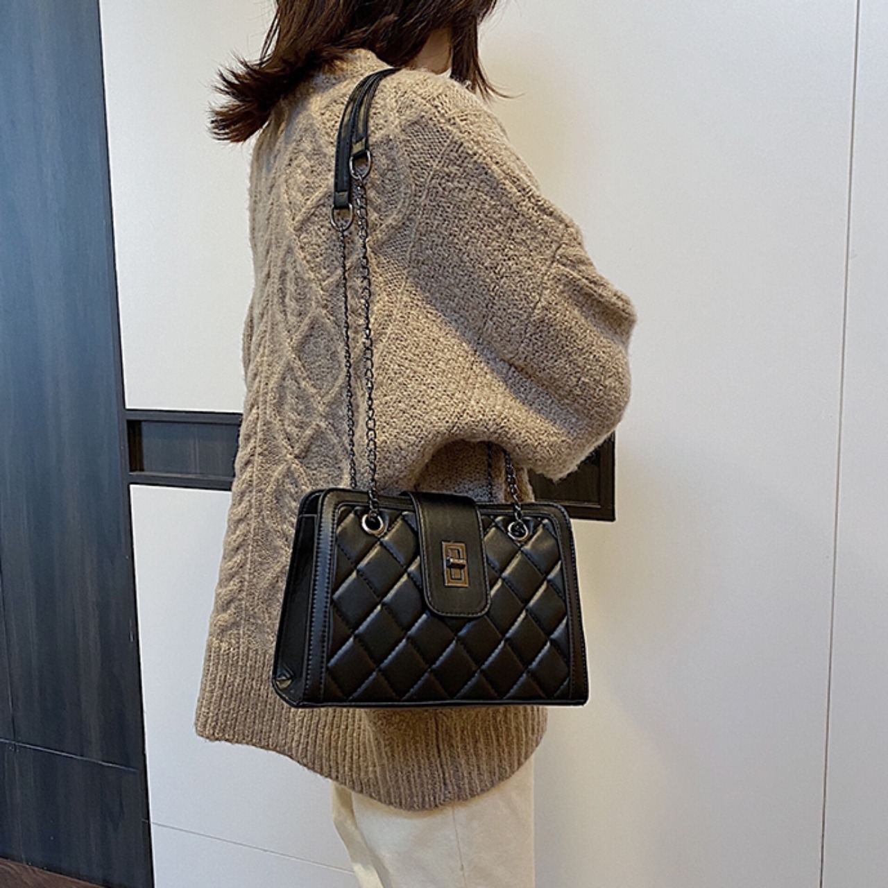 【送料無料】ハンドバッグ ショルダーバッグ 2way ブラック ホワイト 肩掛け キルティング ツートーンカラー 大人かわいい 20代 上品 デート お出かけ