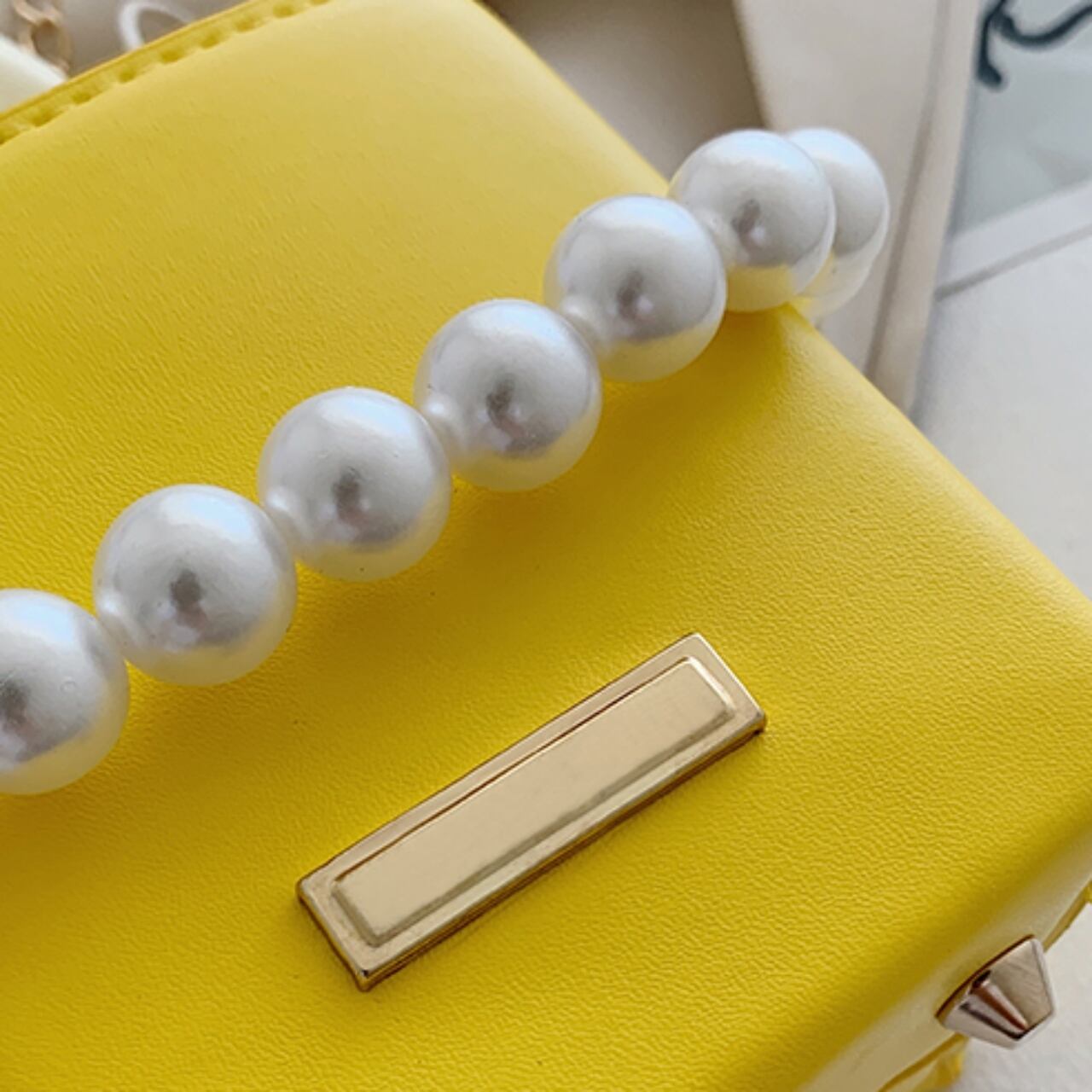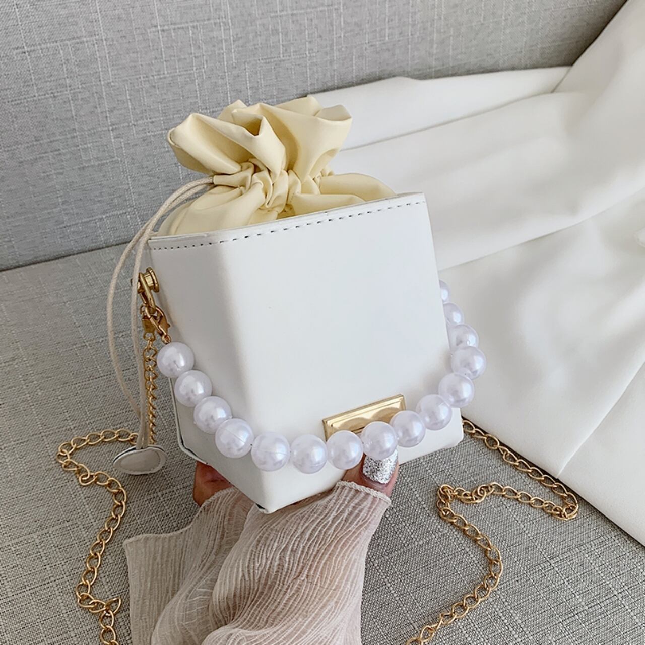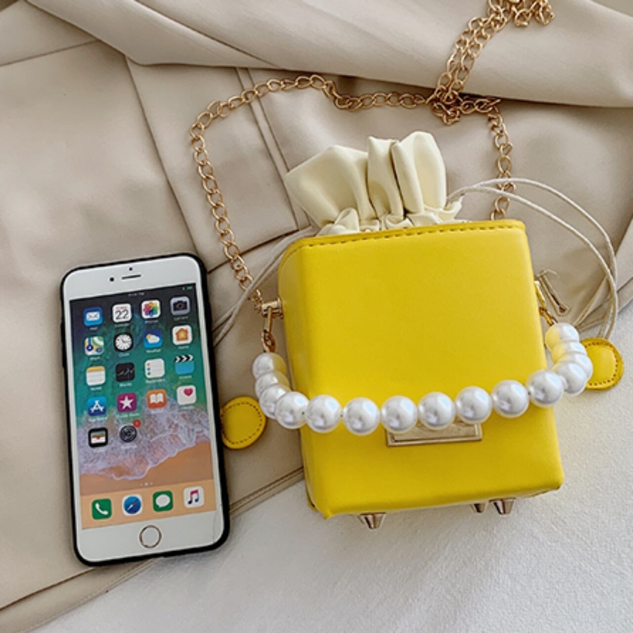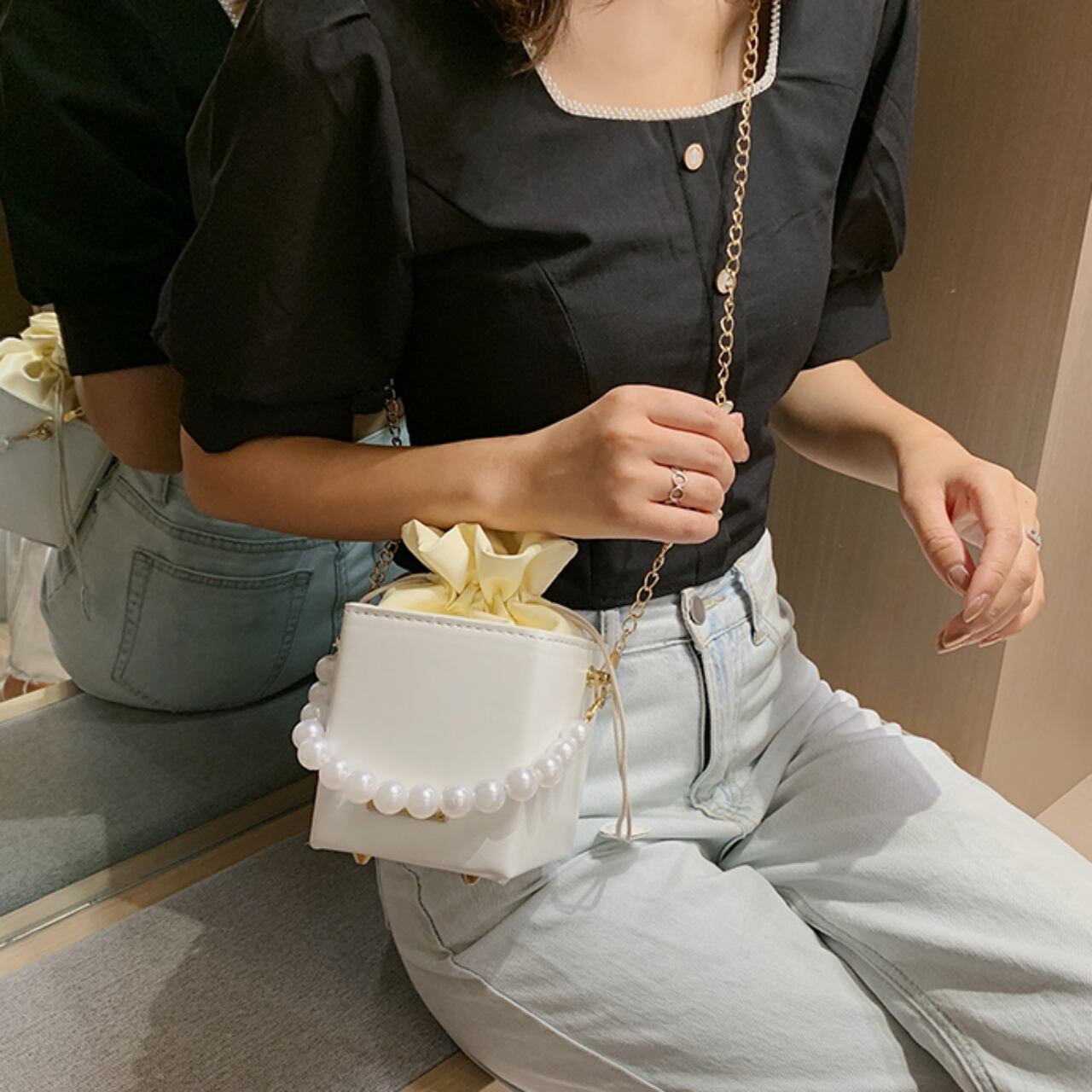【送料無料】ハンドバッグ ショルダーバッグ 2way ホワイト ブラック イエロー パープル パール装飾 ガーリー フェミニン ミニバッグ 巾着バッグ 肩掛け デート 10代 20代 お出かけ 春