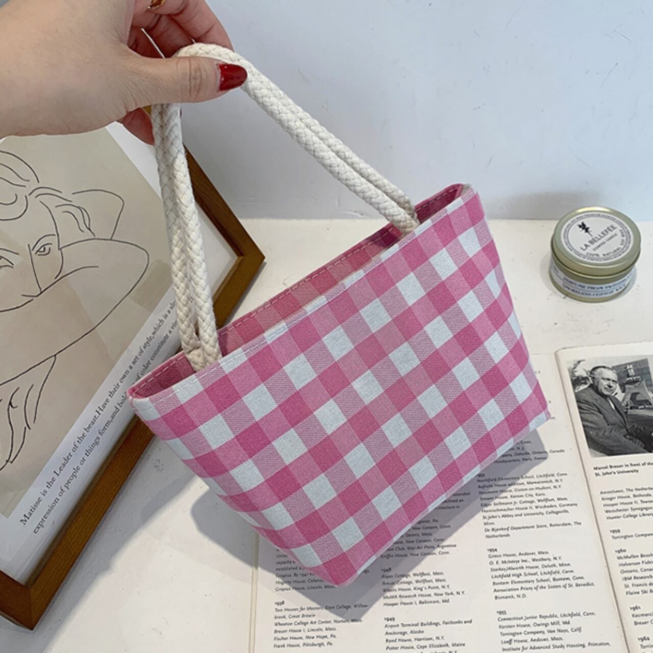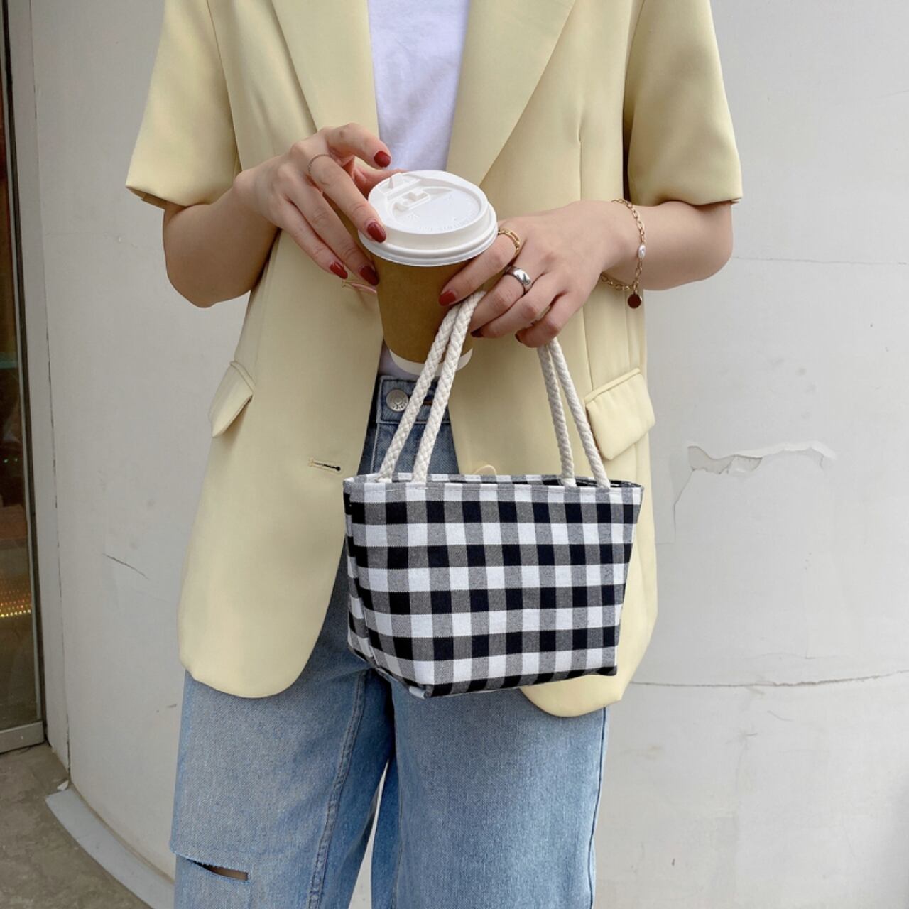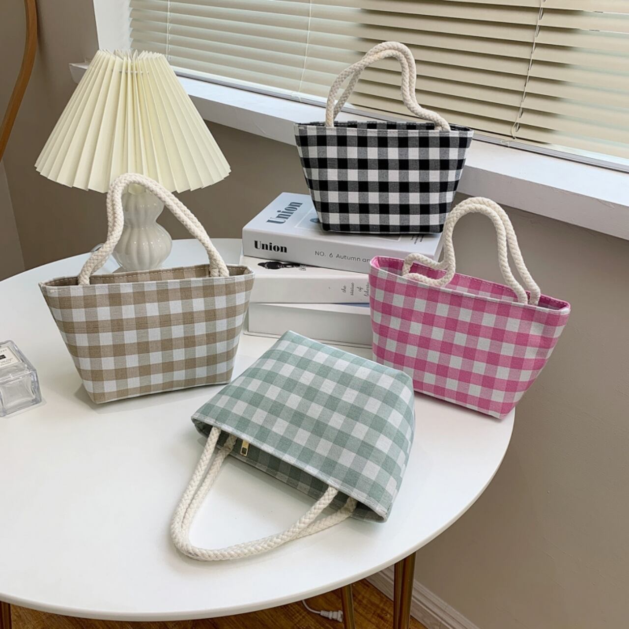 【送料無料】ハンドバッグ 4色展開 ブラック グリーン ピンク カーキ チェック柄 チェック ガーリー フェミニン コンパクト 小ぶり ミニハンドバッグ お出かけ