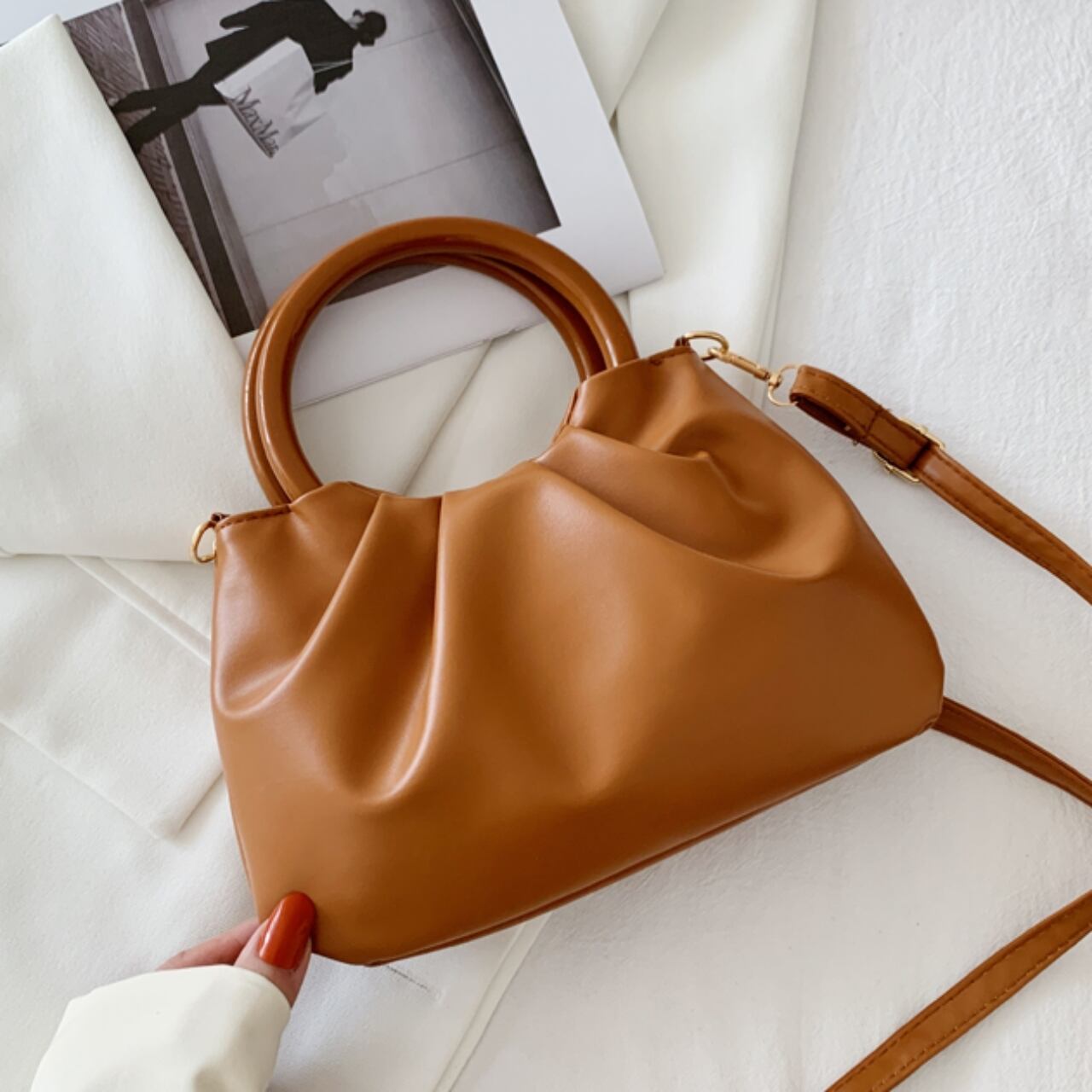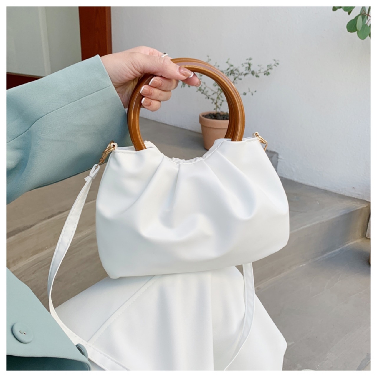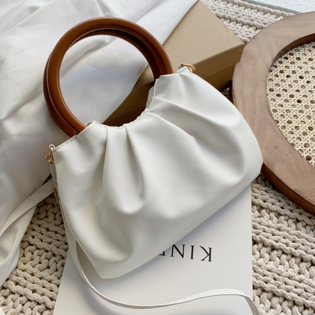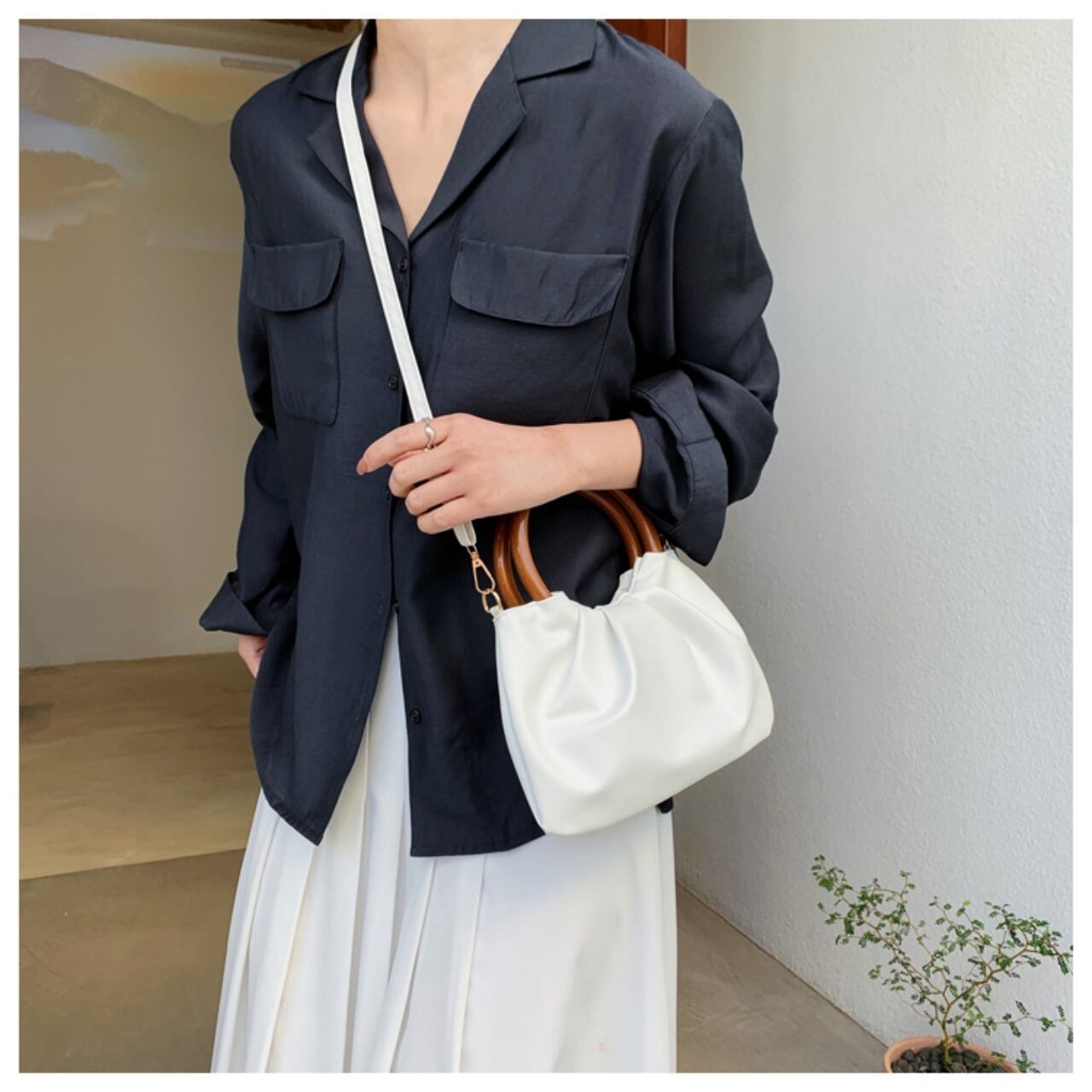 【送料無料】ハンドバッグ ショルダーバッグ 2way ホワイト カーキ ブラック ブラウン 4色展開 こなれ感 大人かわいい 上品 女子会 PU デート お出かけ 春 夏