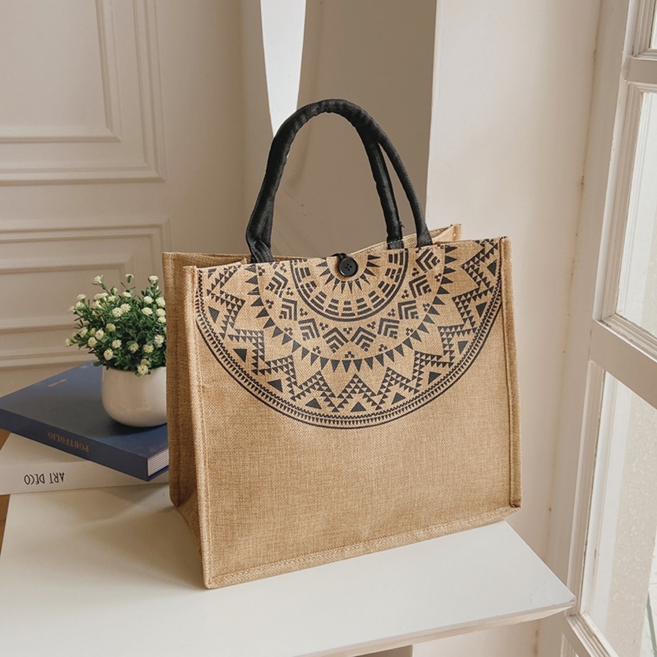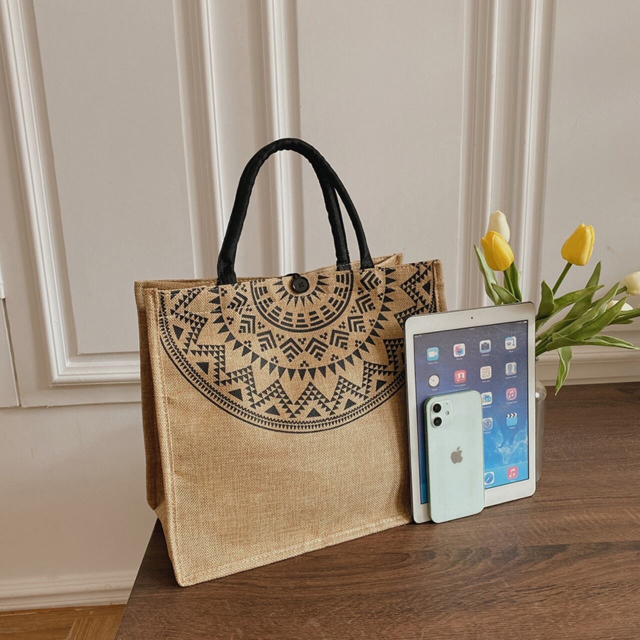 【送料無料】トートバッグ ナチュラル 麻 ボヘミアン 大人かわいい 個性的 シンプル カジュアル カレッジコーデ 大容量 通学スタイル 夏