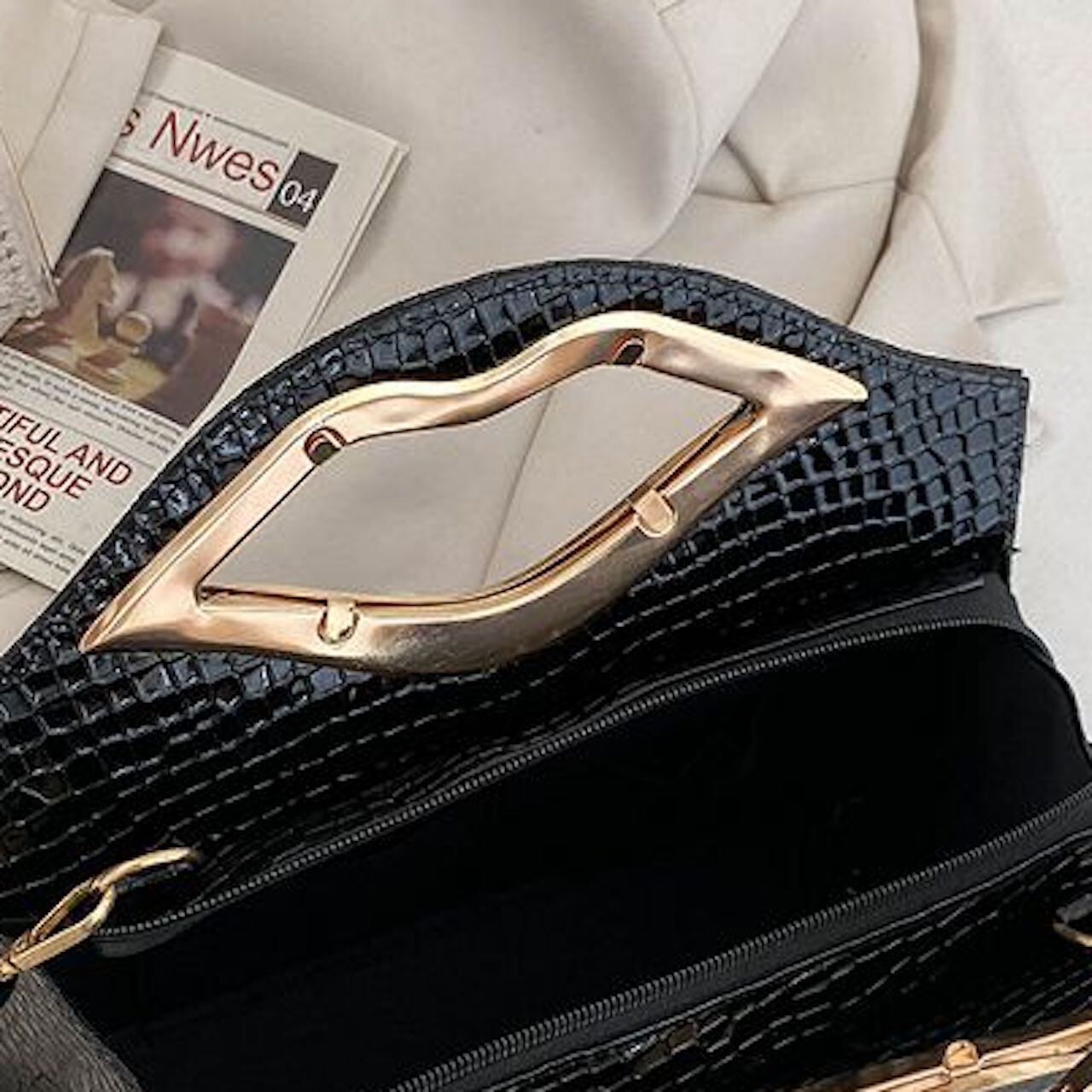 【送料無料】ハンドバッグ ショルダーバッグ 2way ブラック レッド ホワイト グレー ゴールド 5色展開 エレガント 大人女子 ゴージャス 20代 30代 デート お出かけ
