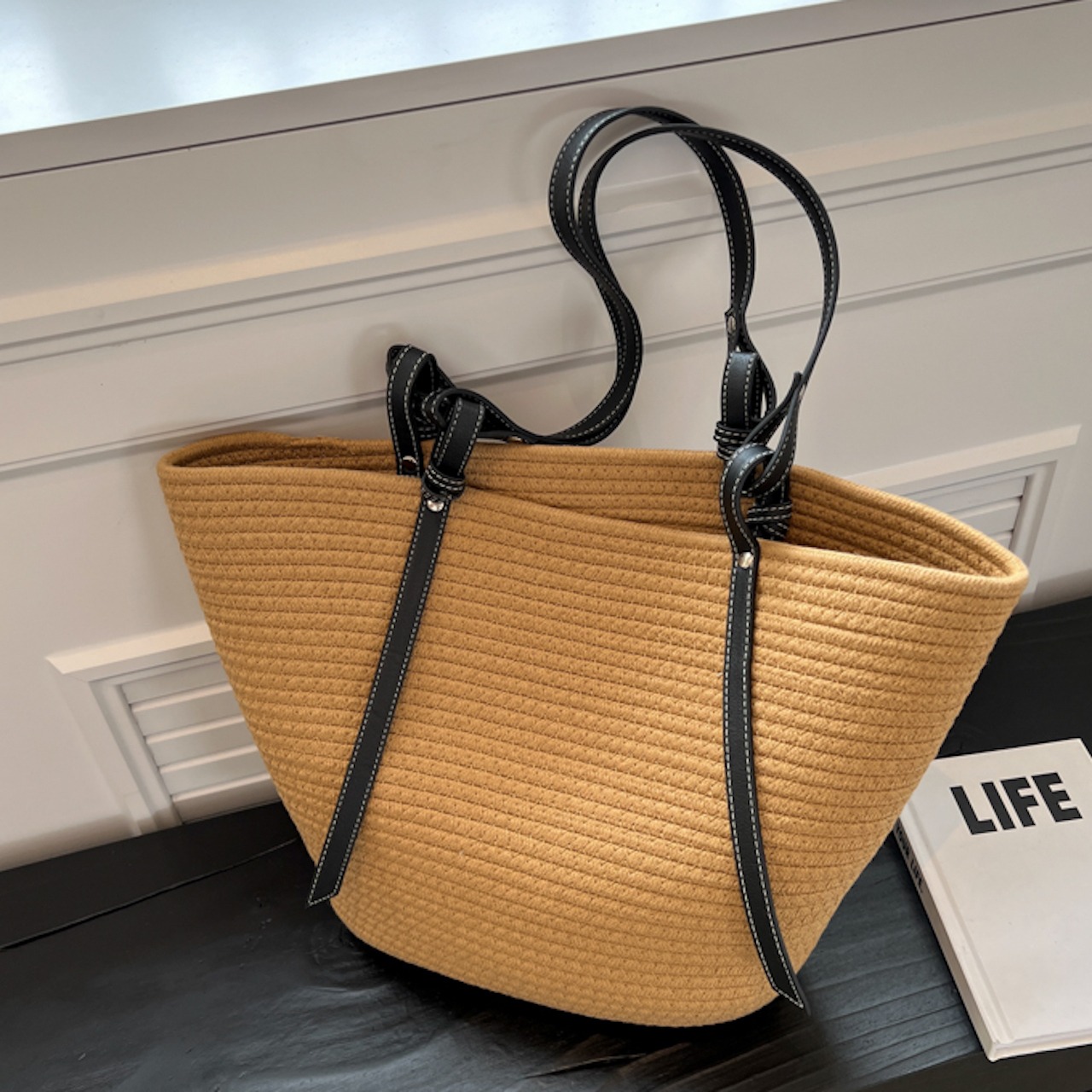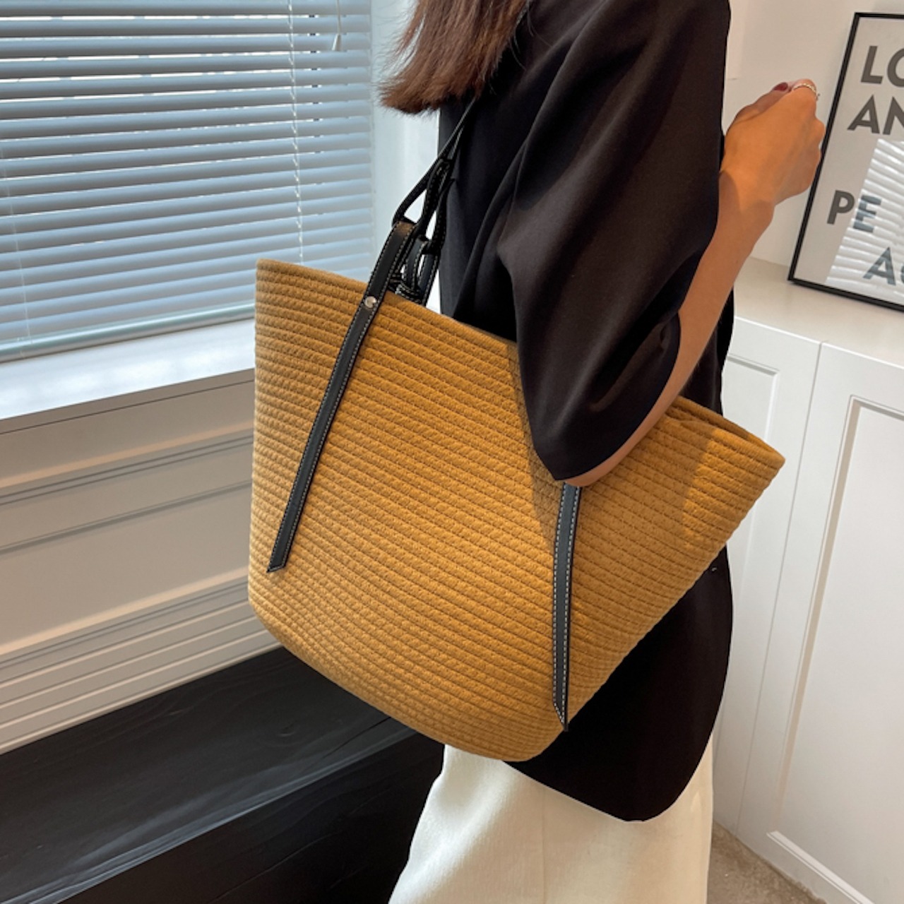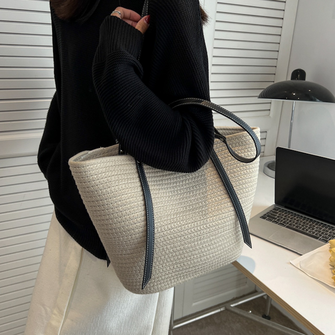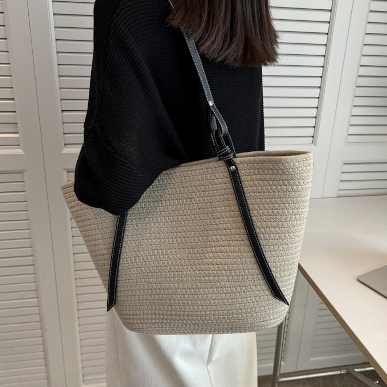 【送料無料】トートバッグ 2色展開 ベージュ カーキ 大容量 ナチュラル 肩掛け 通勤 通学 20代 30代 シンプル お出かけ 夏