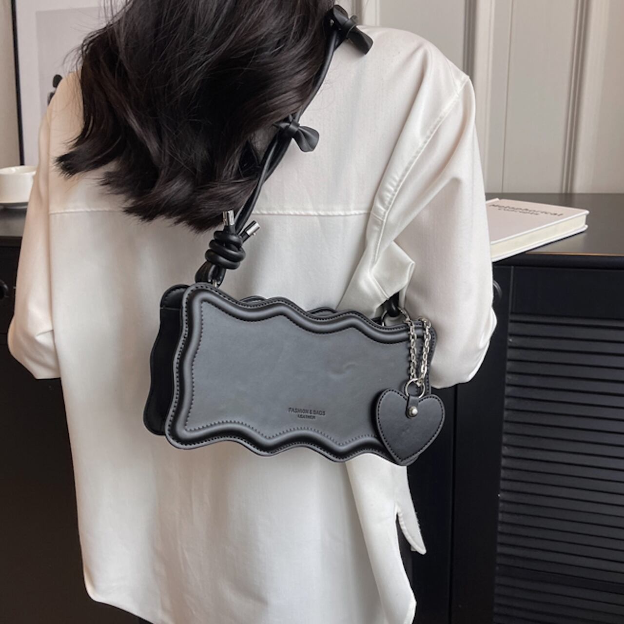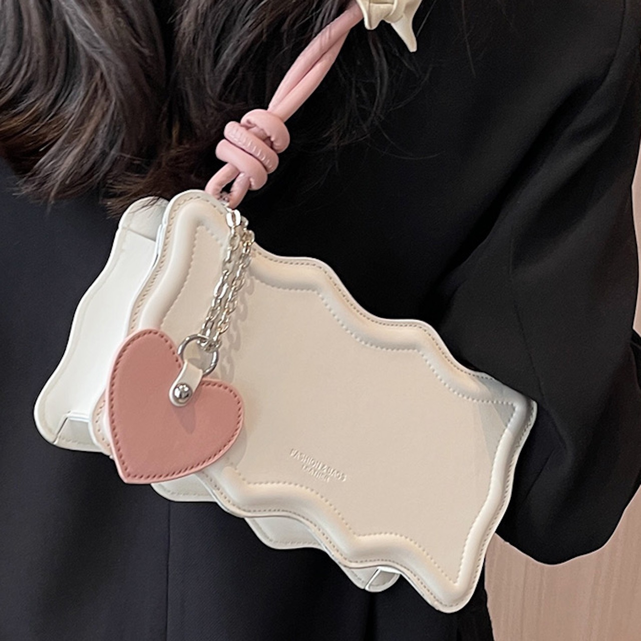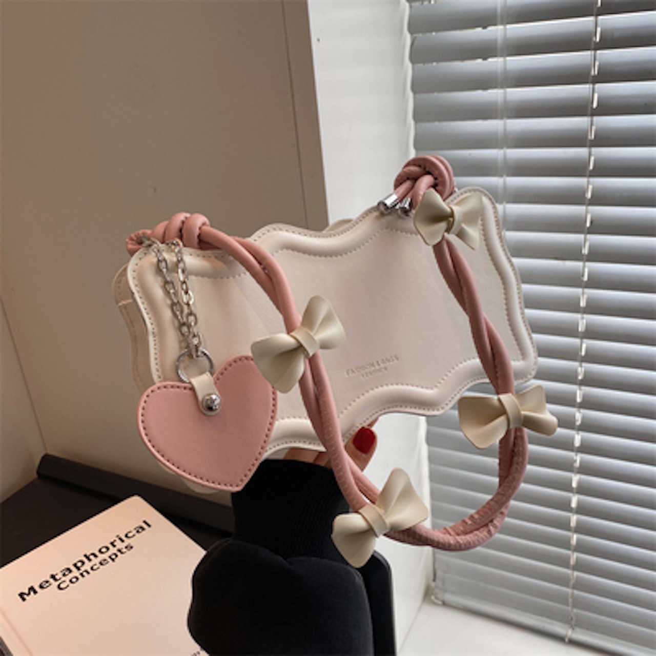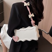 【送料無料】ショルダーバッグ ピンク ブラック カーキ ガーリー フェミニン ハート リボン 10代 20代 スウィート 甘め お呼ばれ デート お出かけ 女子会