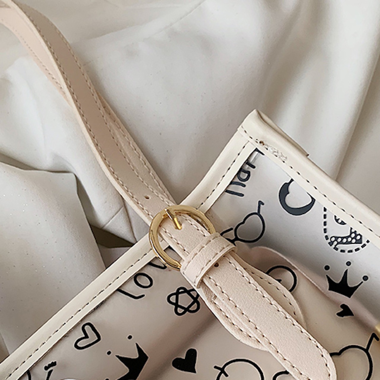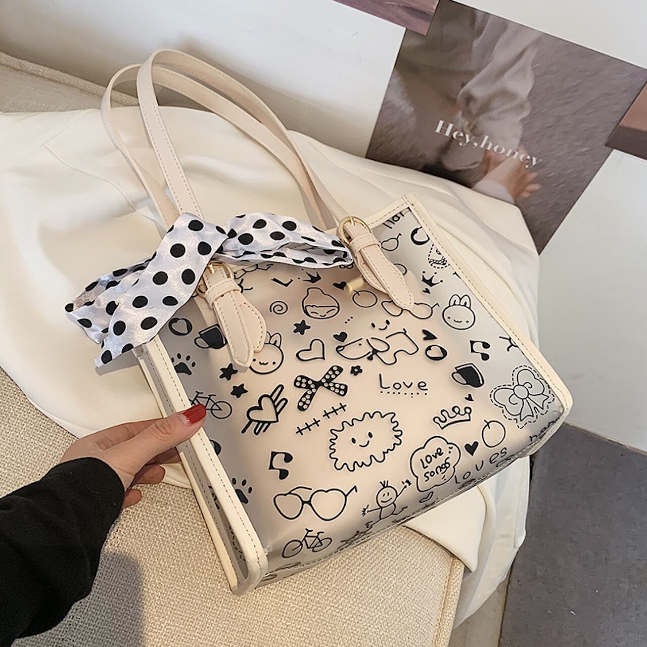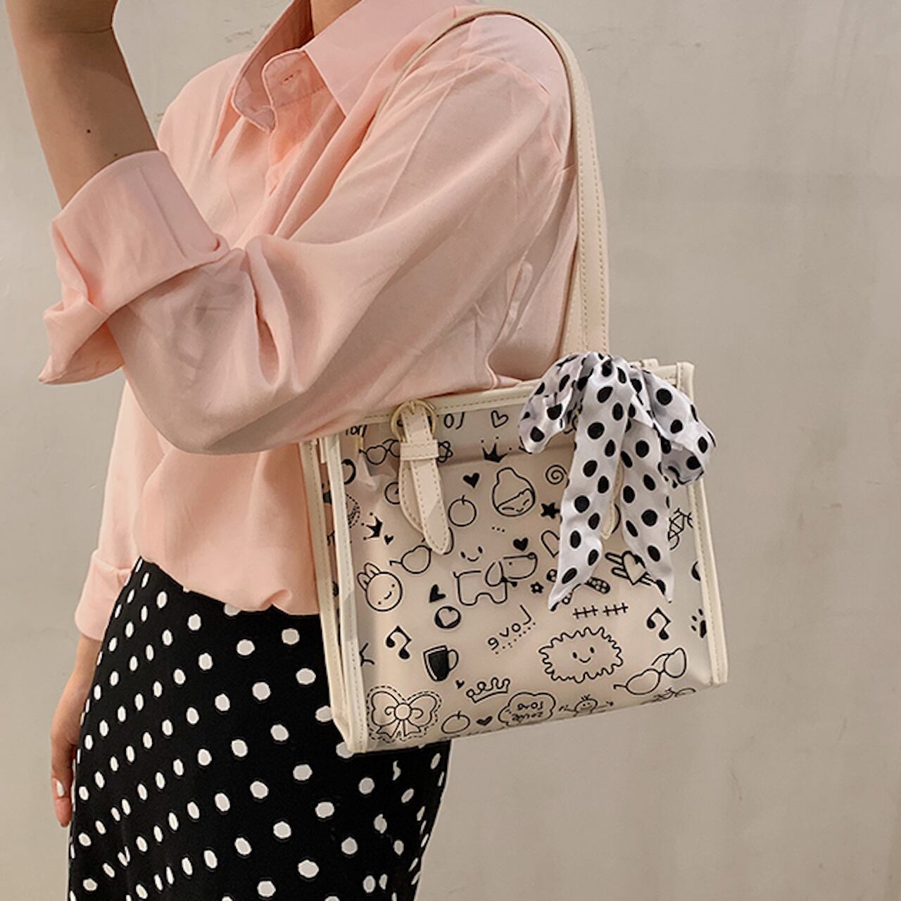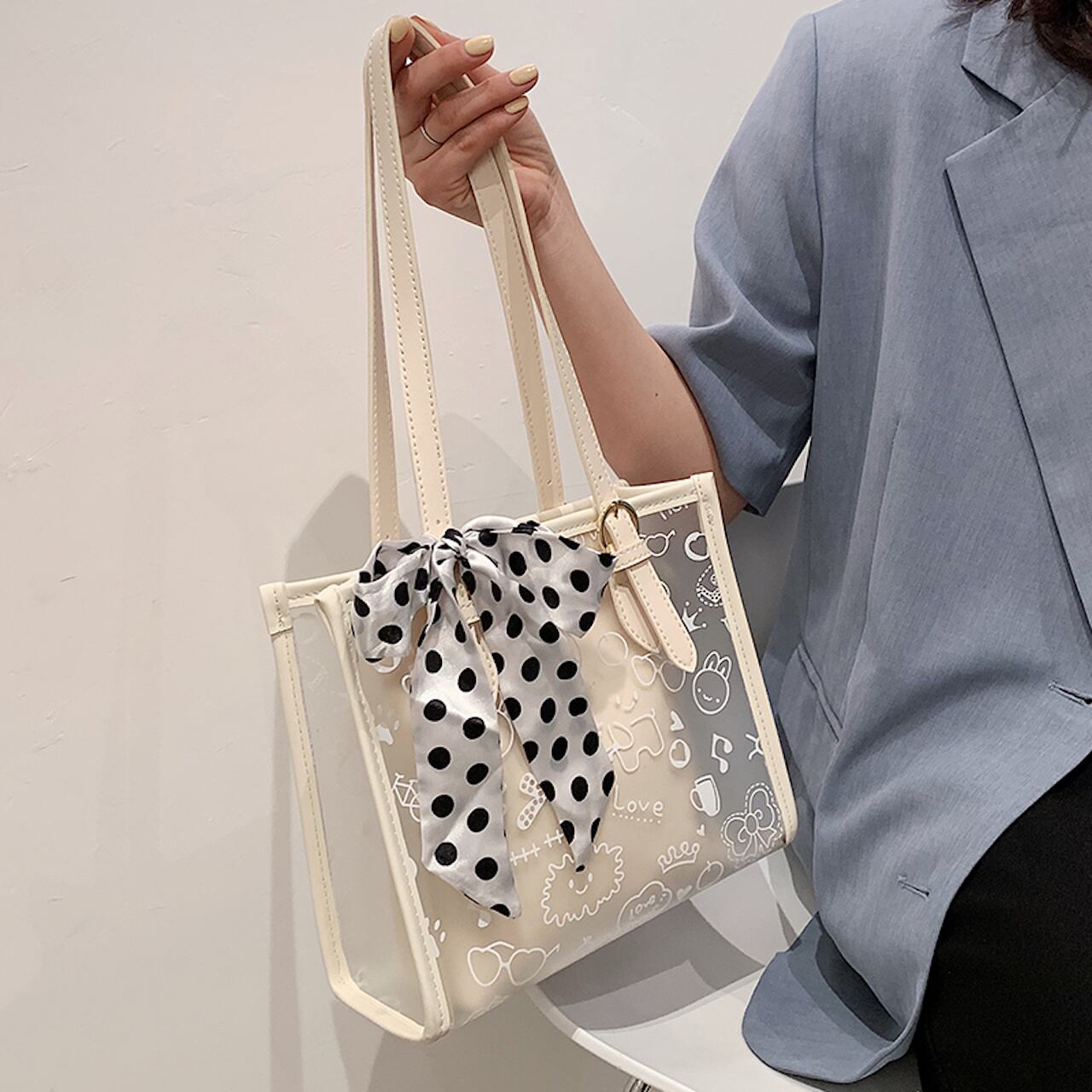 【送料無料】トートバッグ 2色展開 フェミニン ガーリー クリアバッグ イラスト 水玉 ドット 肩掛け 10代 20代 デート お出かけ 春夏